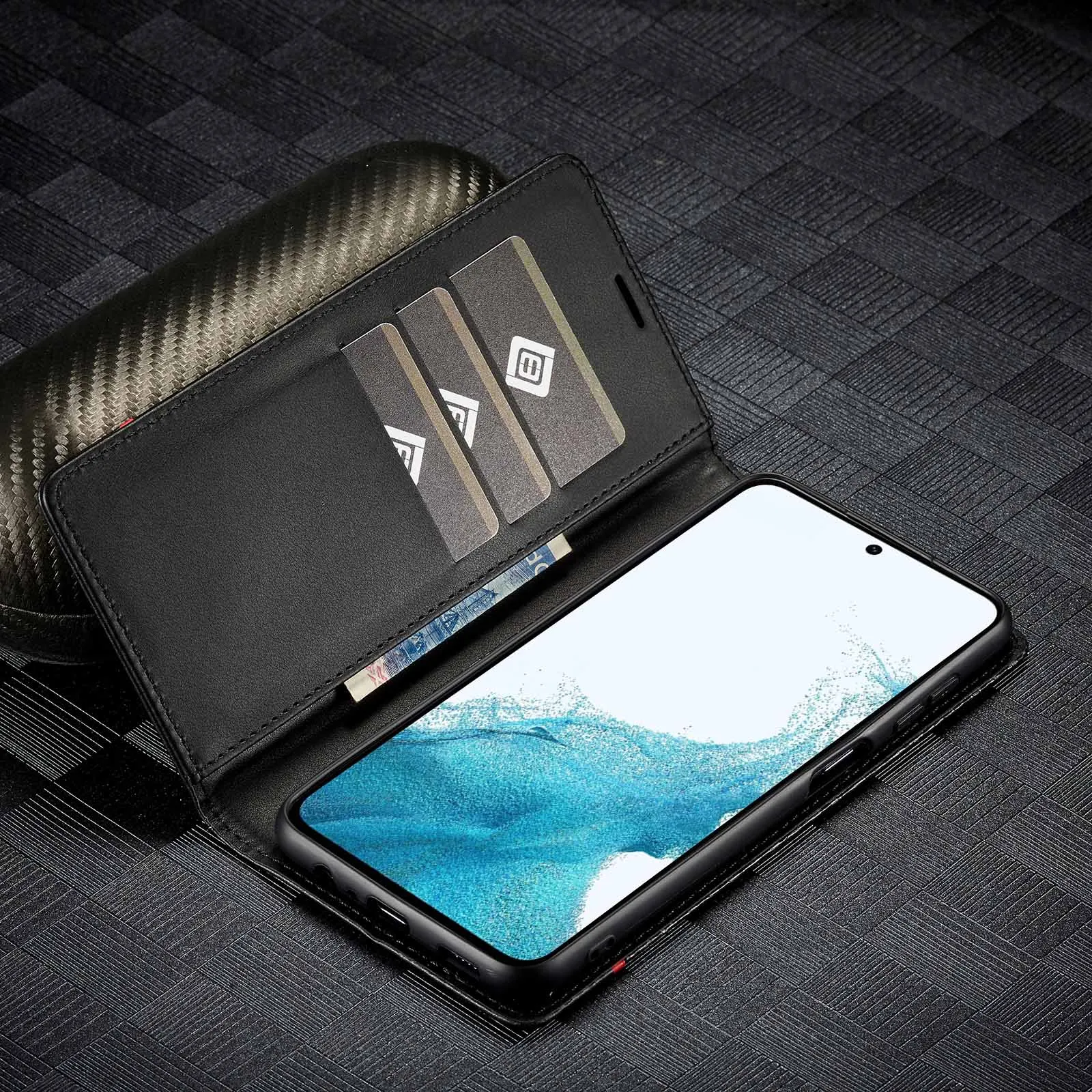 Comprar Funda Solt con tarjetas magnéticas de fibra de carbono para Samsung A14 A34 A54 A13 A52 A23 A53 S23 Ultra S22 Plus S21 FE, funda con soporte
