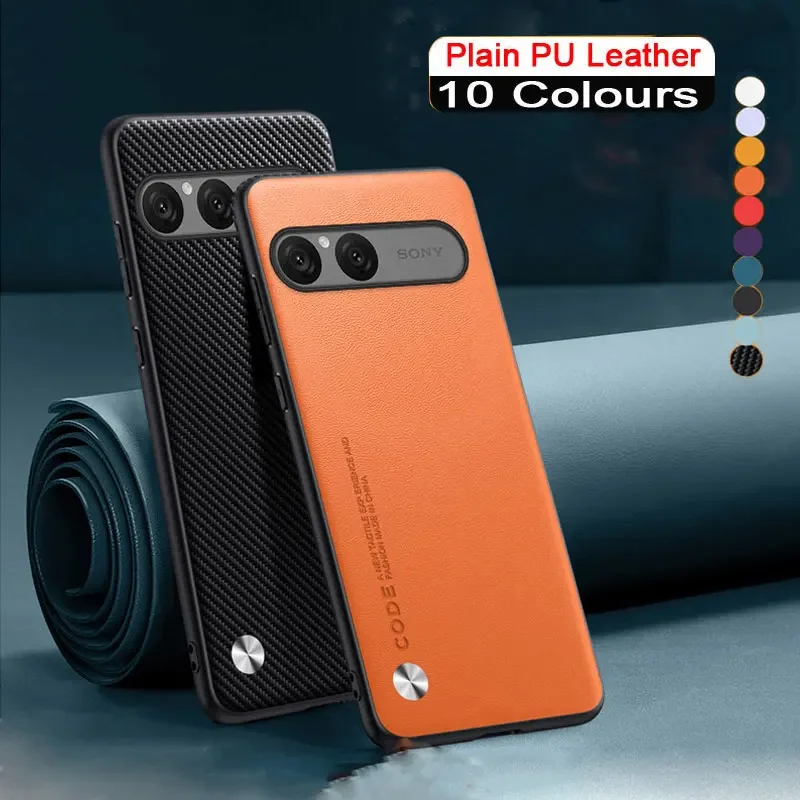 Funda para Sony Xperia 10 VII, Funda de cuero PU de fibra de carbono para Sony 10 V II, carcasa de marco suave de silicona lisa antigolpes mate