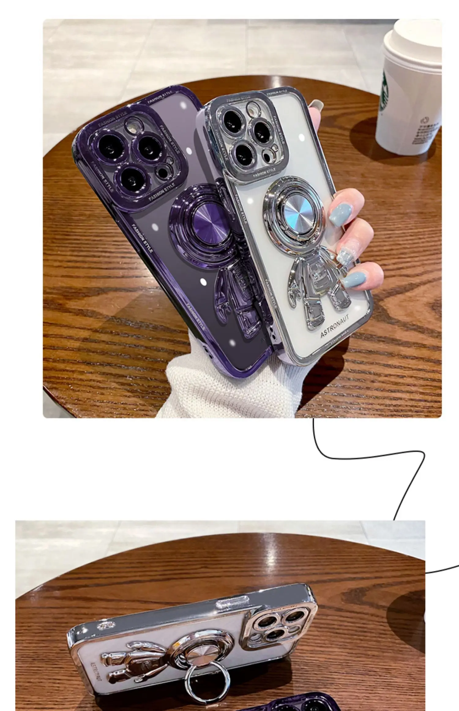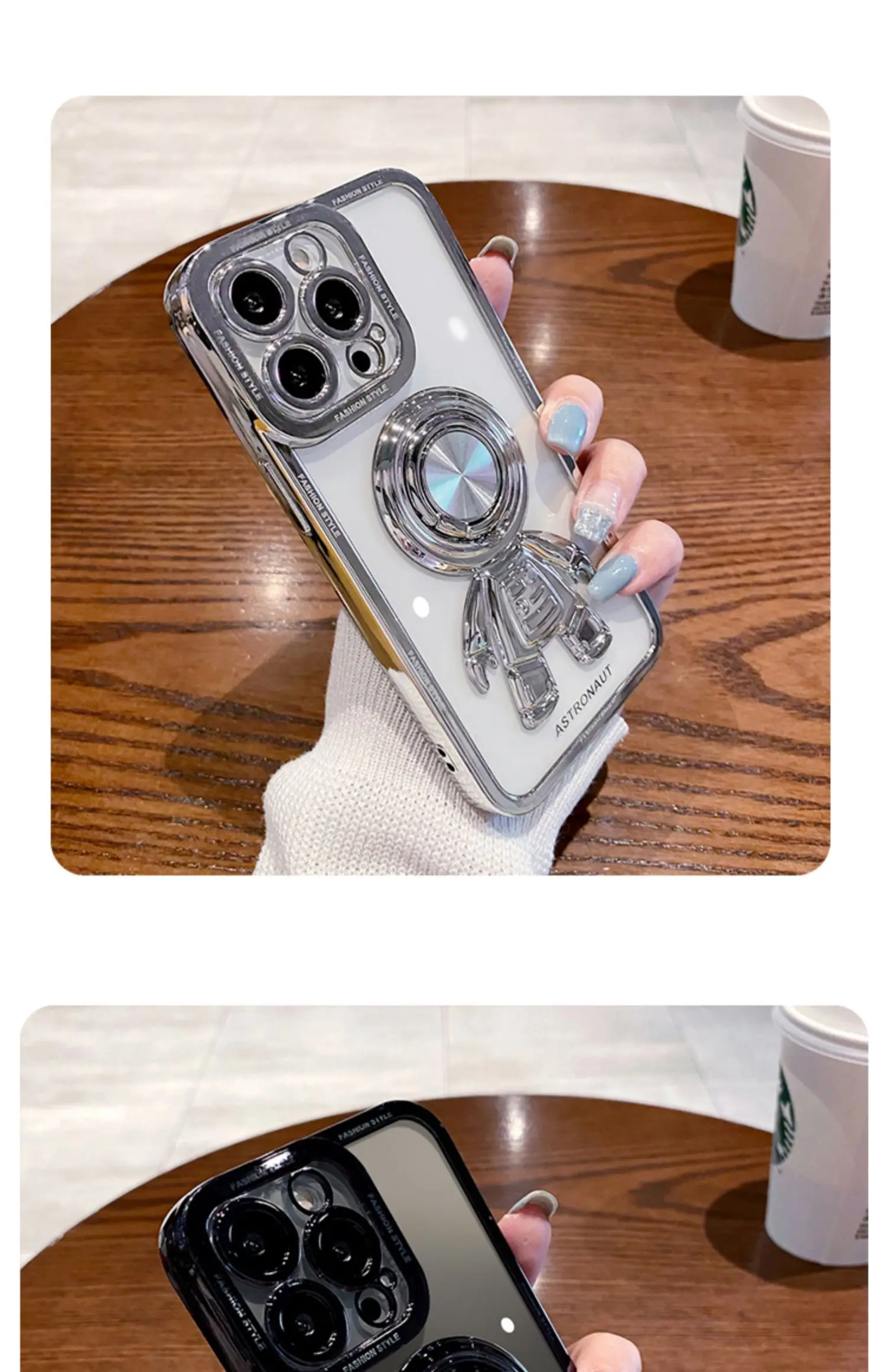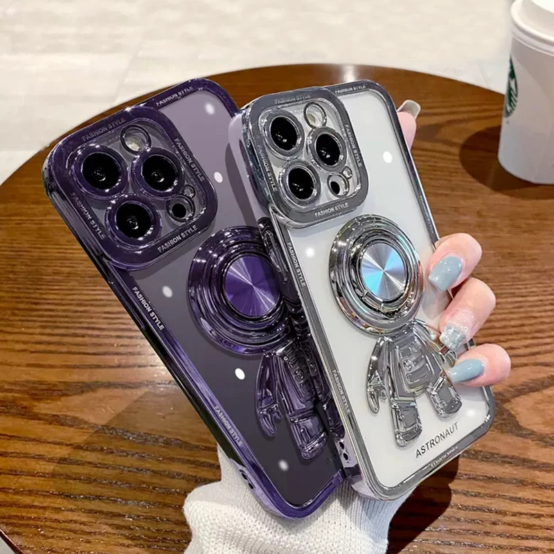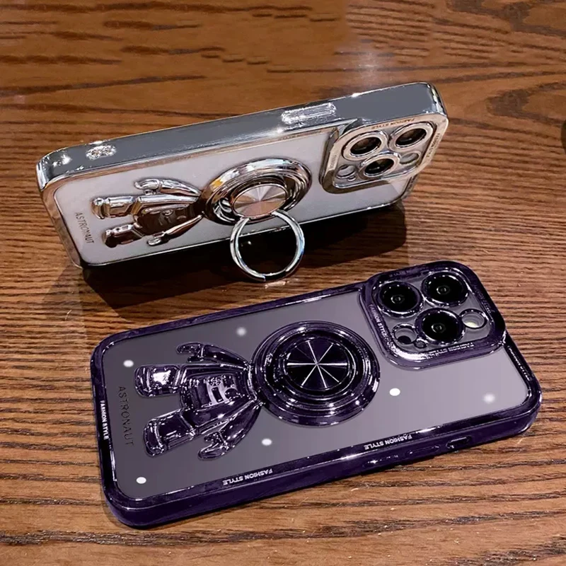Comprar Funda con soporte de anillo magnético de astronauta lindo para iPhone 15 Pro Max 14 13 12 11 XR XS Max X 7 8 Plus, cubierta suave transparente chapada