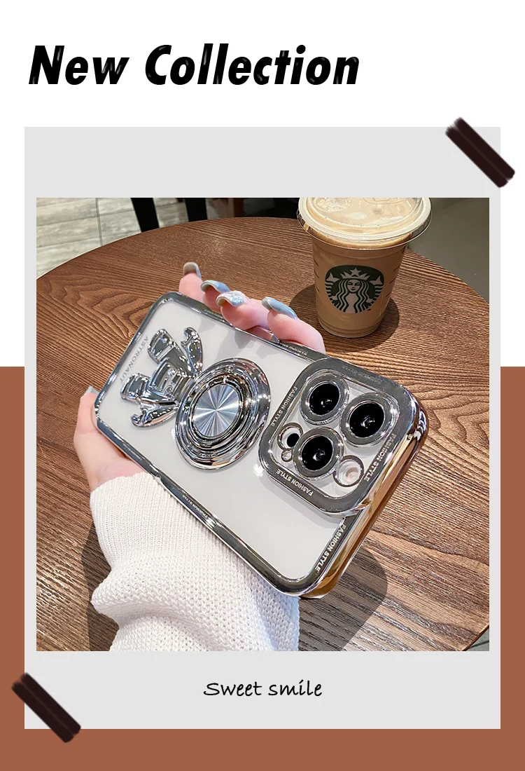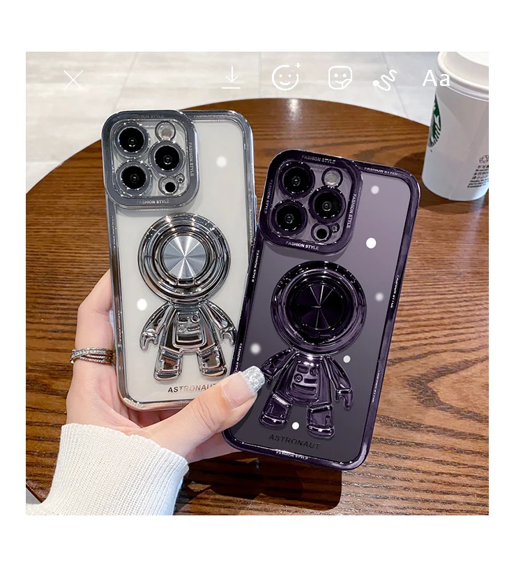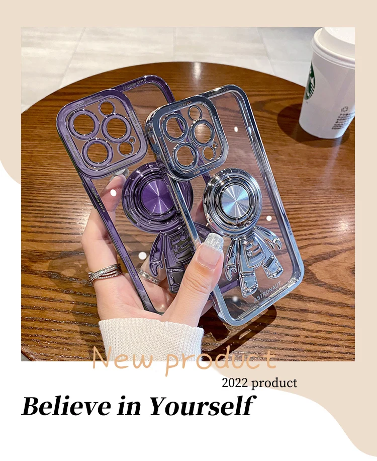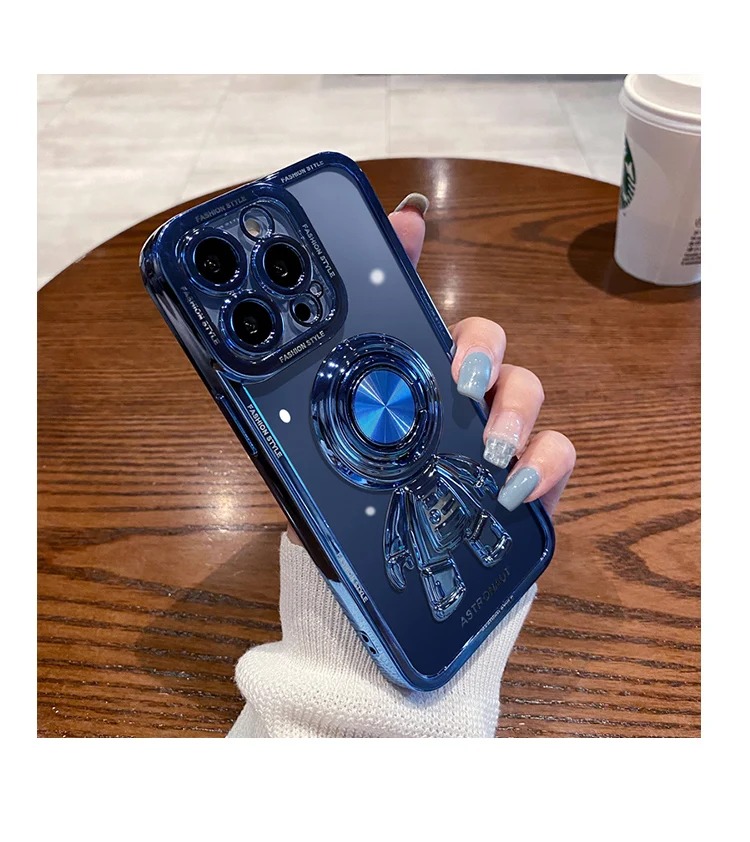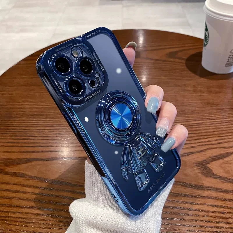 Comprar Funda con soporte de anillo magnético de astronauta lindo para iPhone 15 Pro Max 14 13 12 11 XR XS Max X 7 8 Plus, cubierta suave transparente chapada