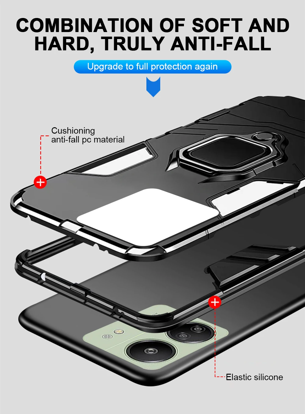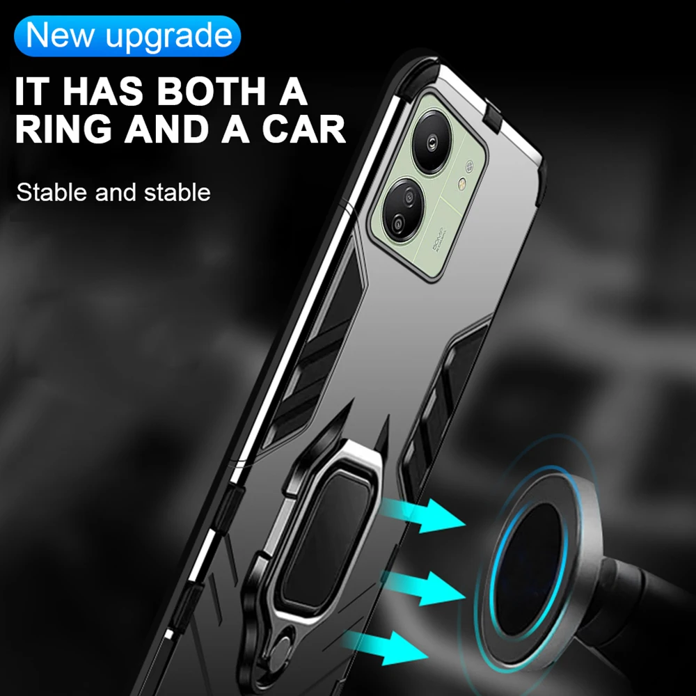 Para Xiaomi Poco C65 funda con soporte de anillo magnético para coche Xaomi Pofo Poko Poxo C 65 65C PocoC65 4G Armor Camera Fundas a prueba de golpes