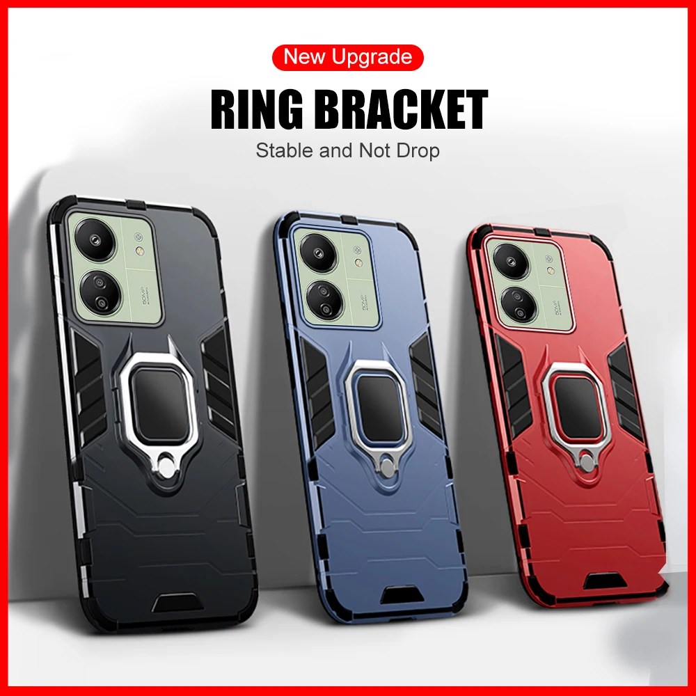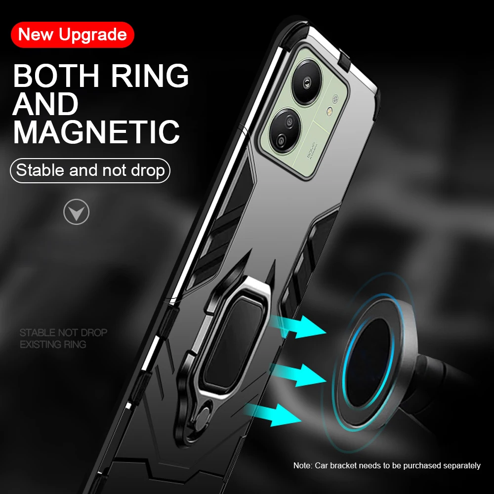 Para Xiaomi Poco C65 funda con soporte de anillo magnético para coche Xaomi Pofo Poko Poxo C 65 65C PocoC65 4G Armor Camera Fundas a prueba de golpes