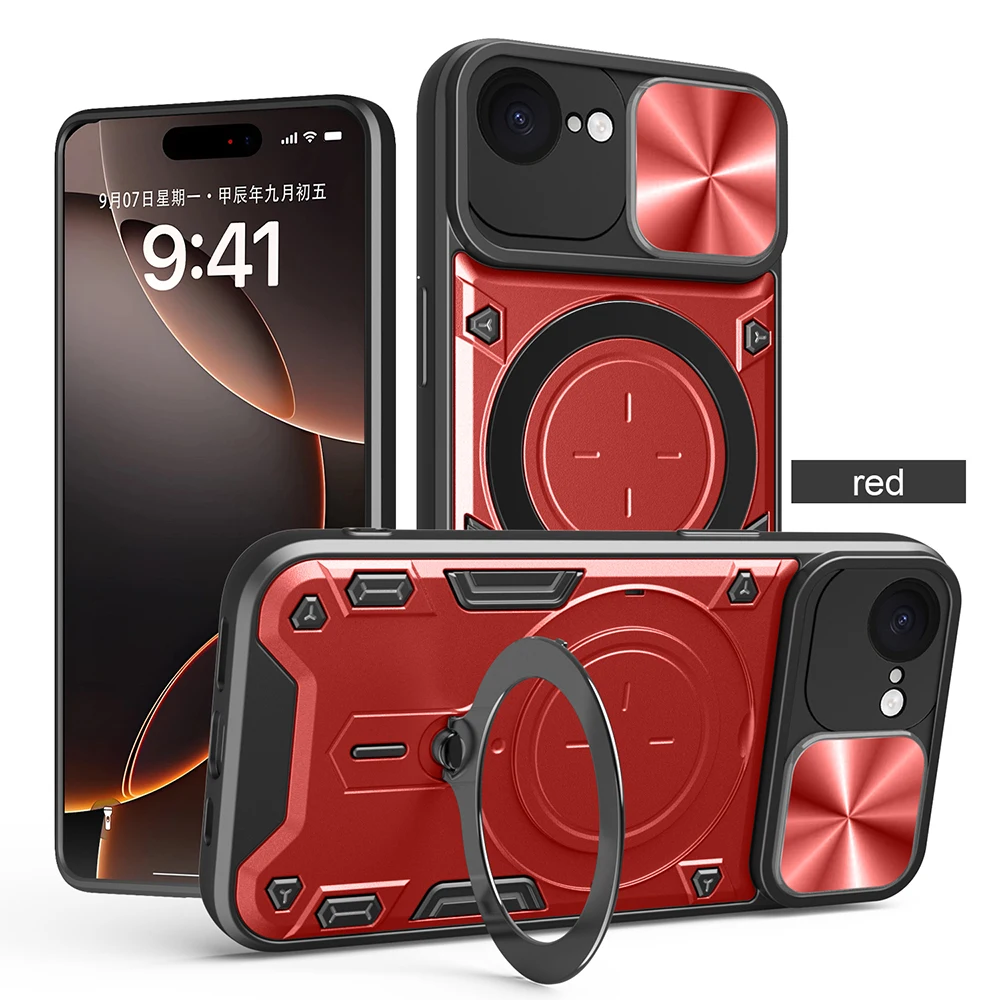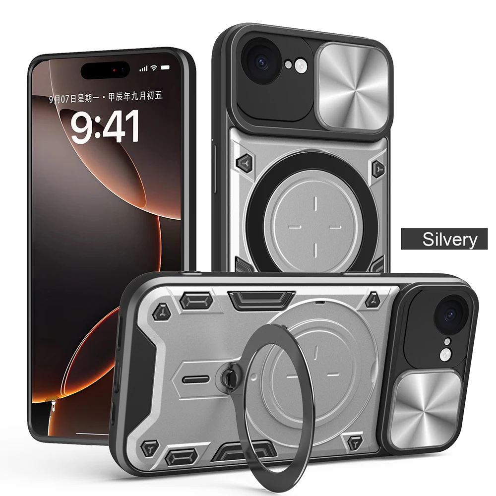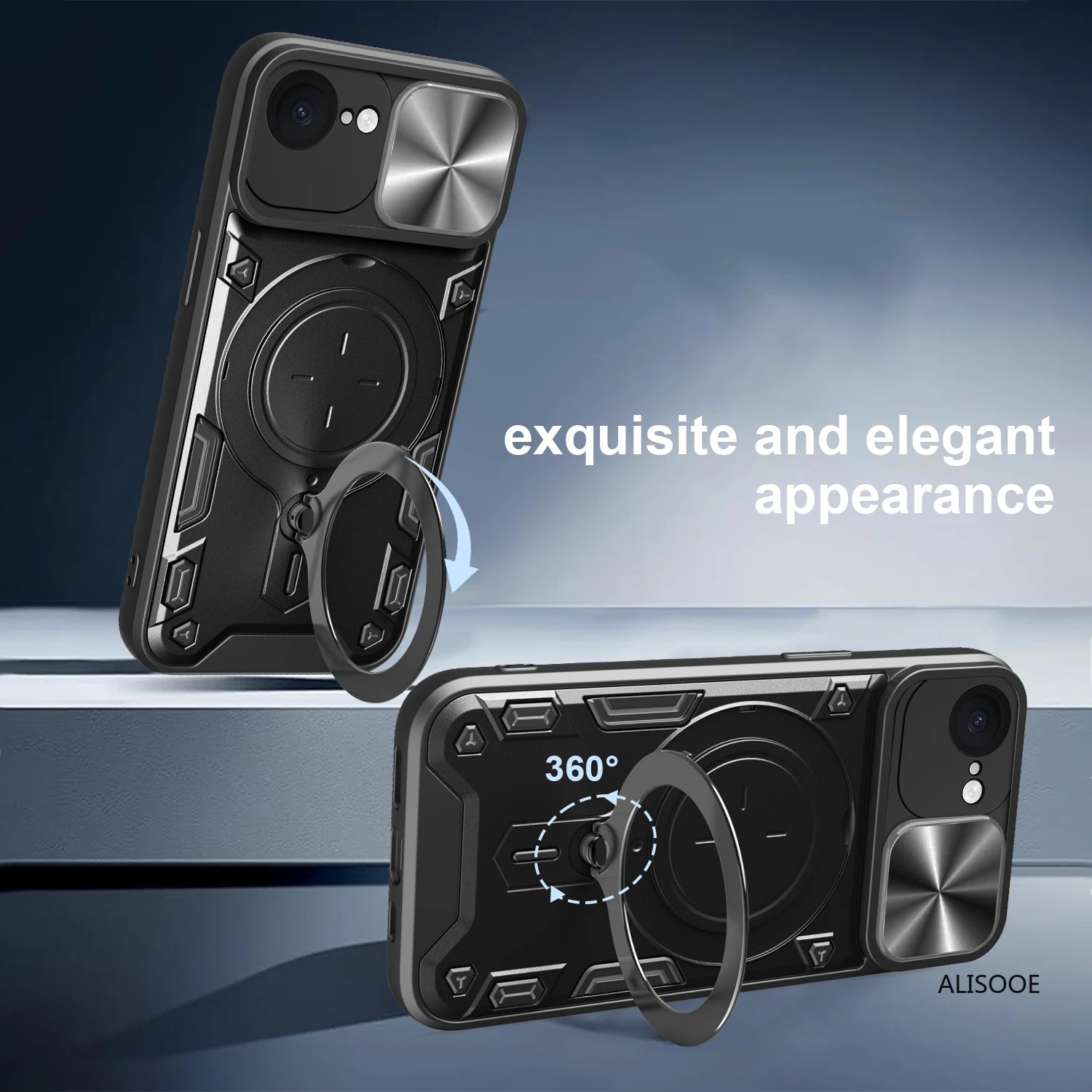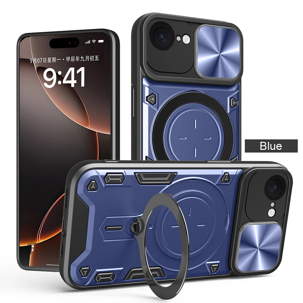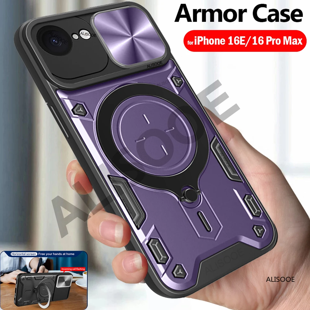 Comprar Funda con soporte de anillo magnético para iPhone 16E 16 Pro Max, Funda protectora para cámara deslizante, Capa para iPhone 15 14 Plus 13 Pro