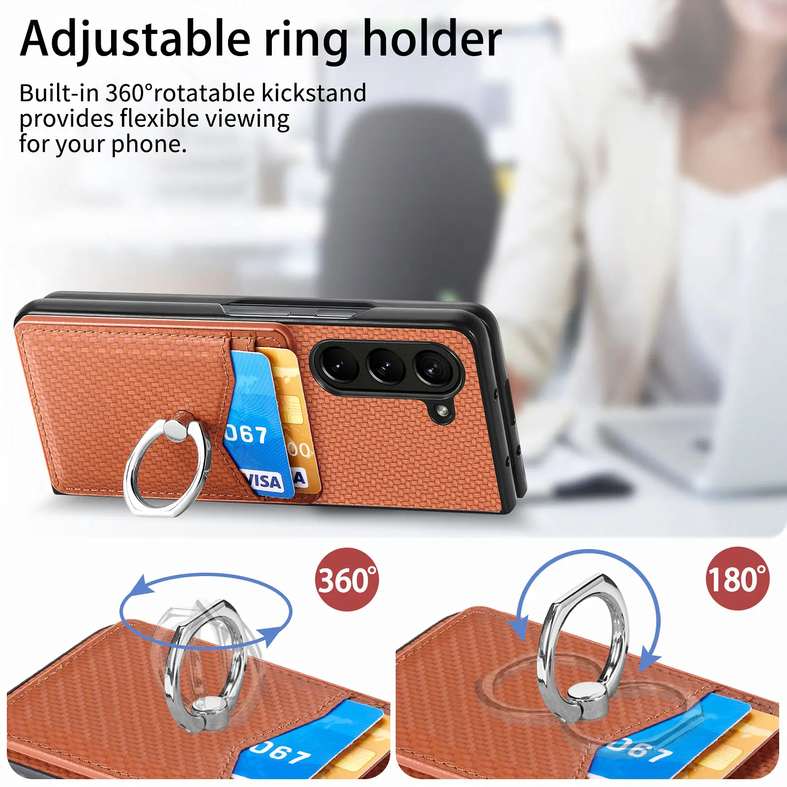 Comprar Funda con soporte de anillo magnético para Samsung Galaxy Z, cartera plegable de fibra de carbono, funda de bolsillo, 6, 5, 4, 3, 5G, Fold4, Fold5