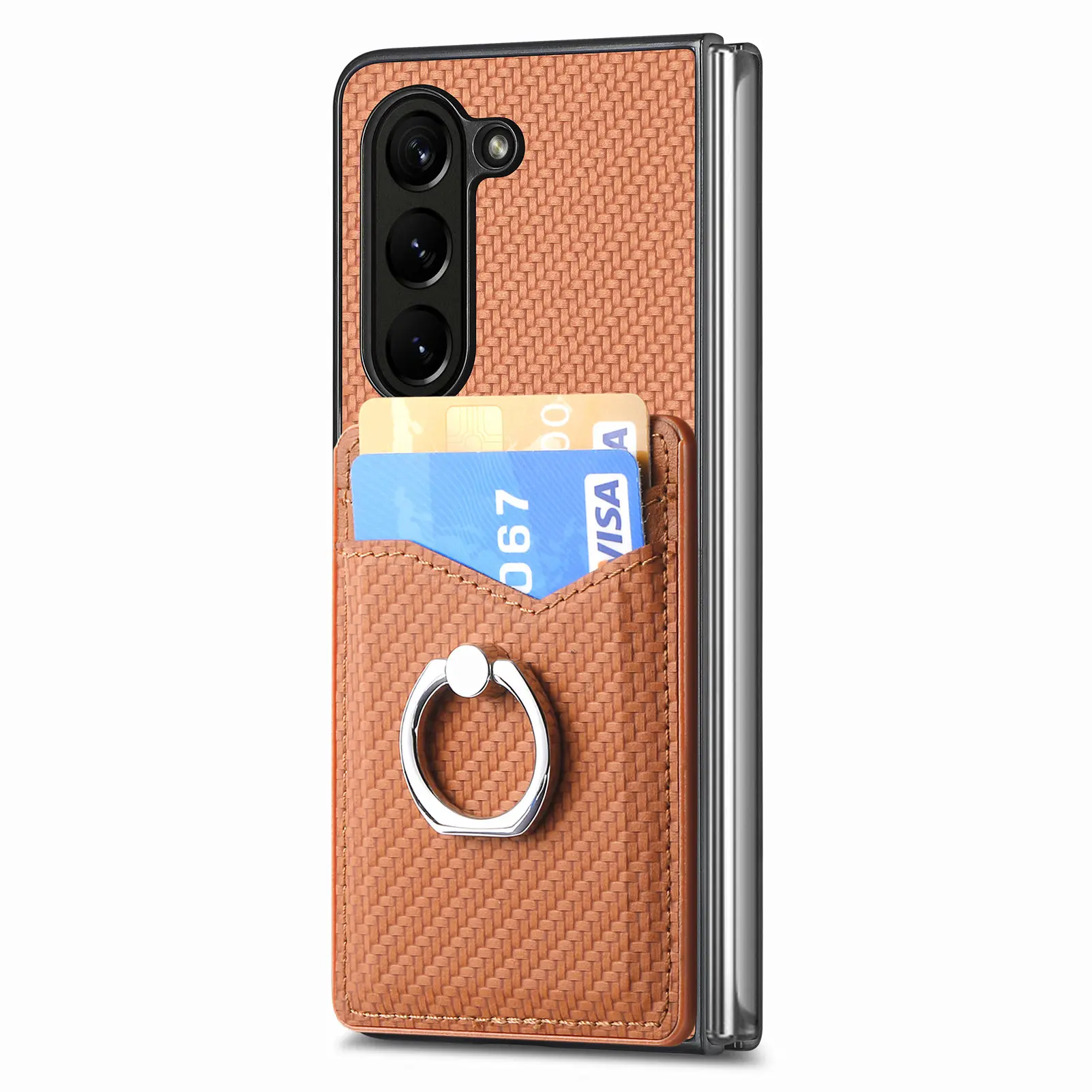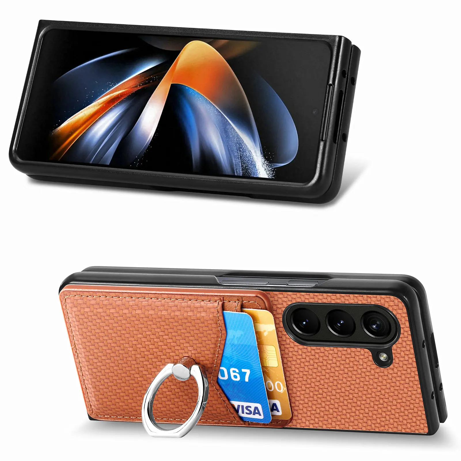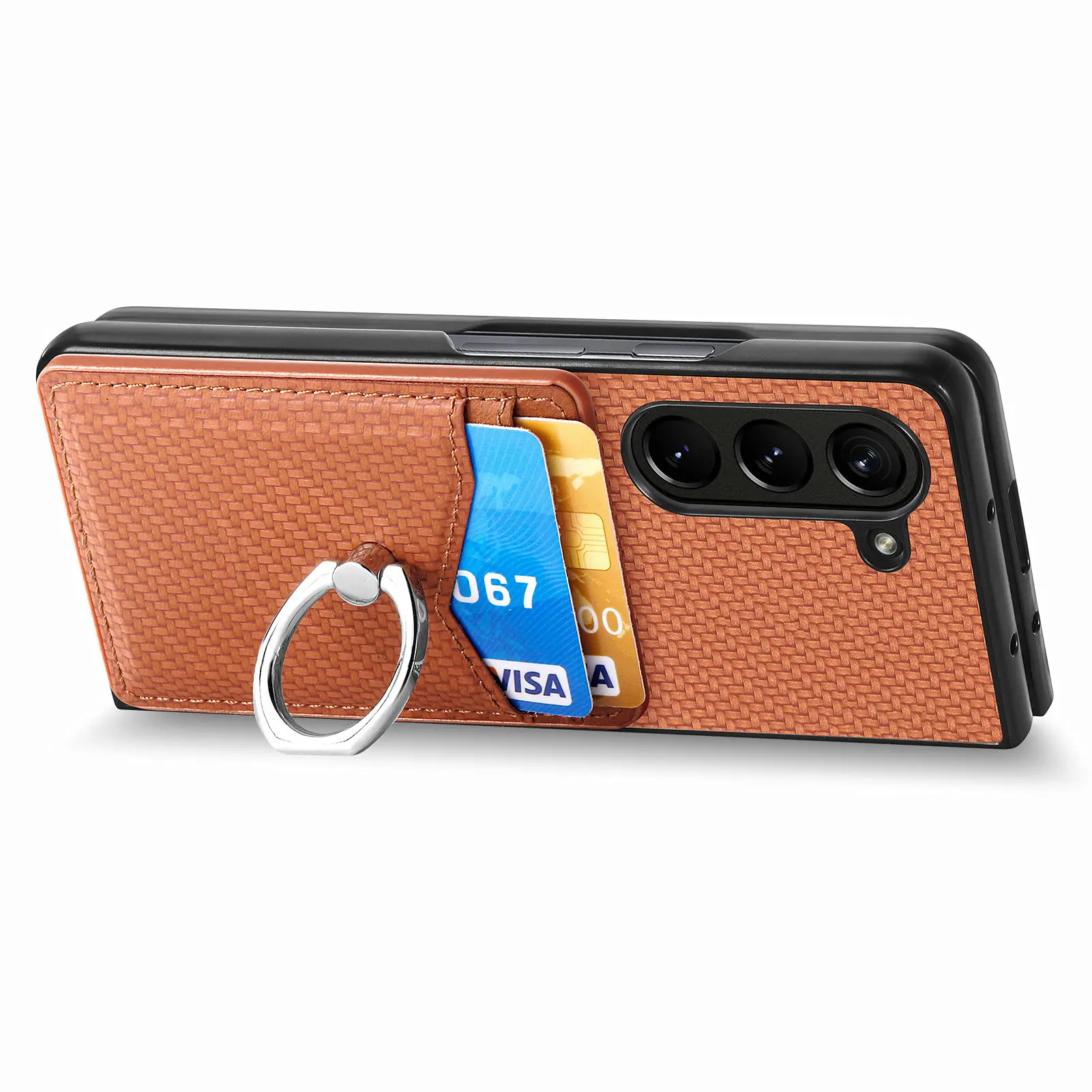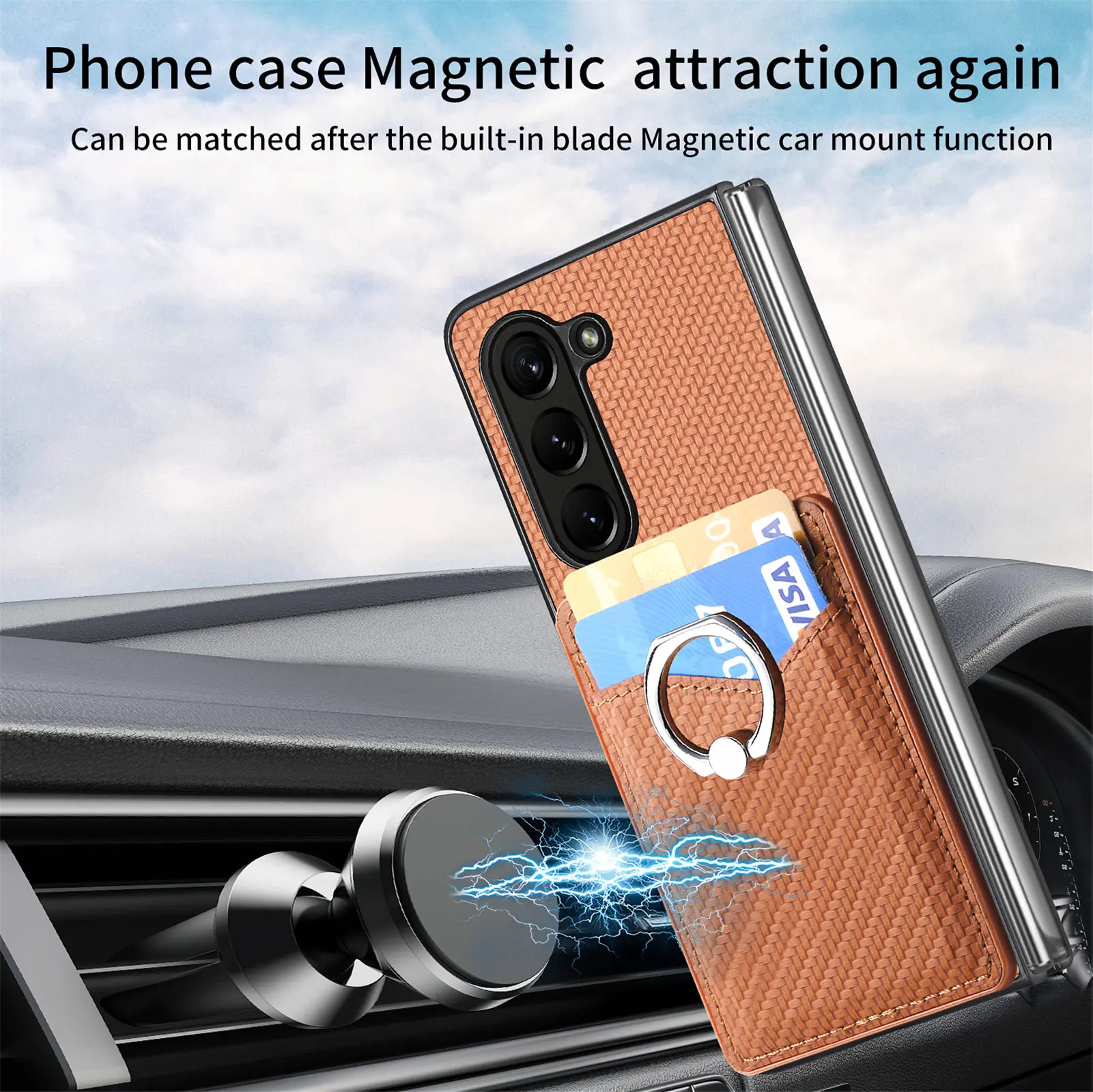 Soporte de anillo magnético Tarjetas Solt Wallet Case para Samsung Galaxy Z Fold 6 5 4 3 5G Fold4 Fold5 stand Bolsa de fibra de carbono Funda de bolsillo