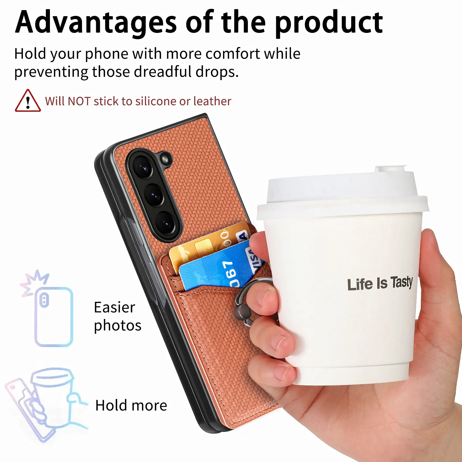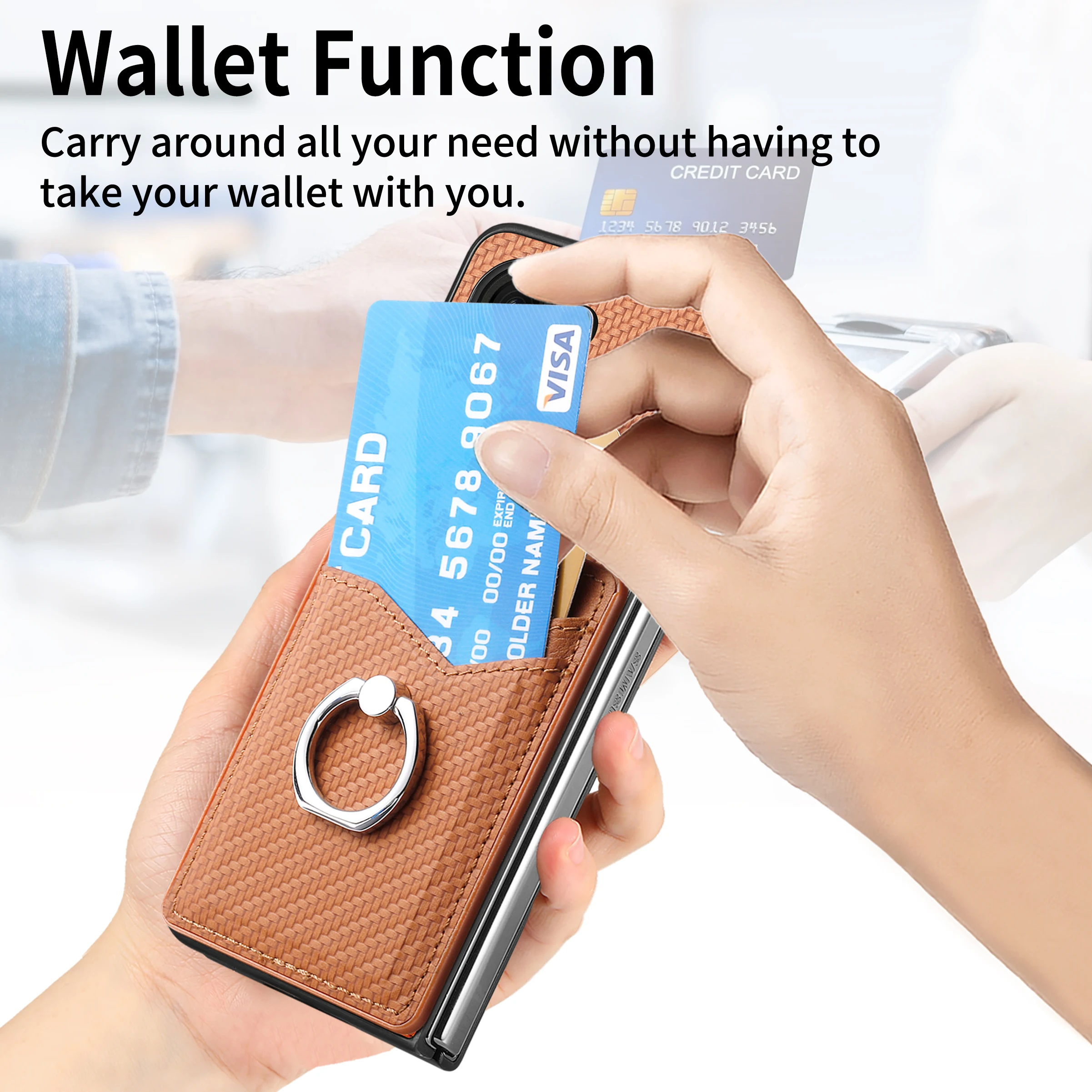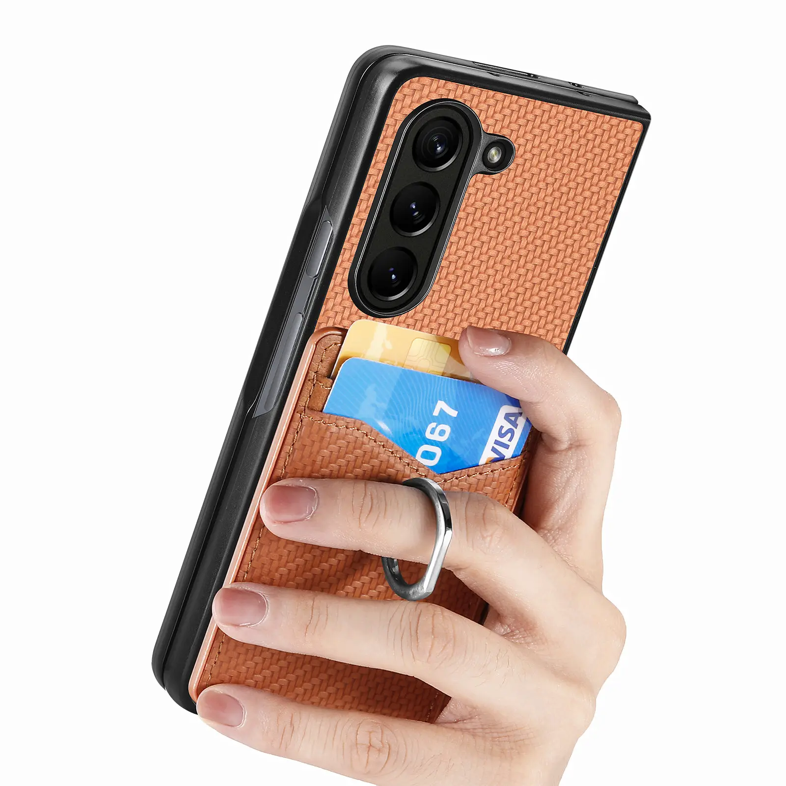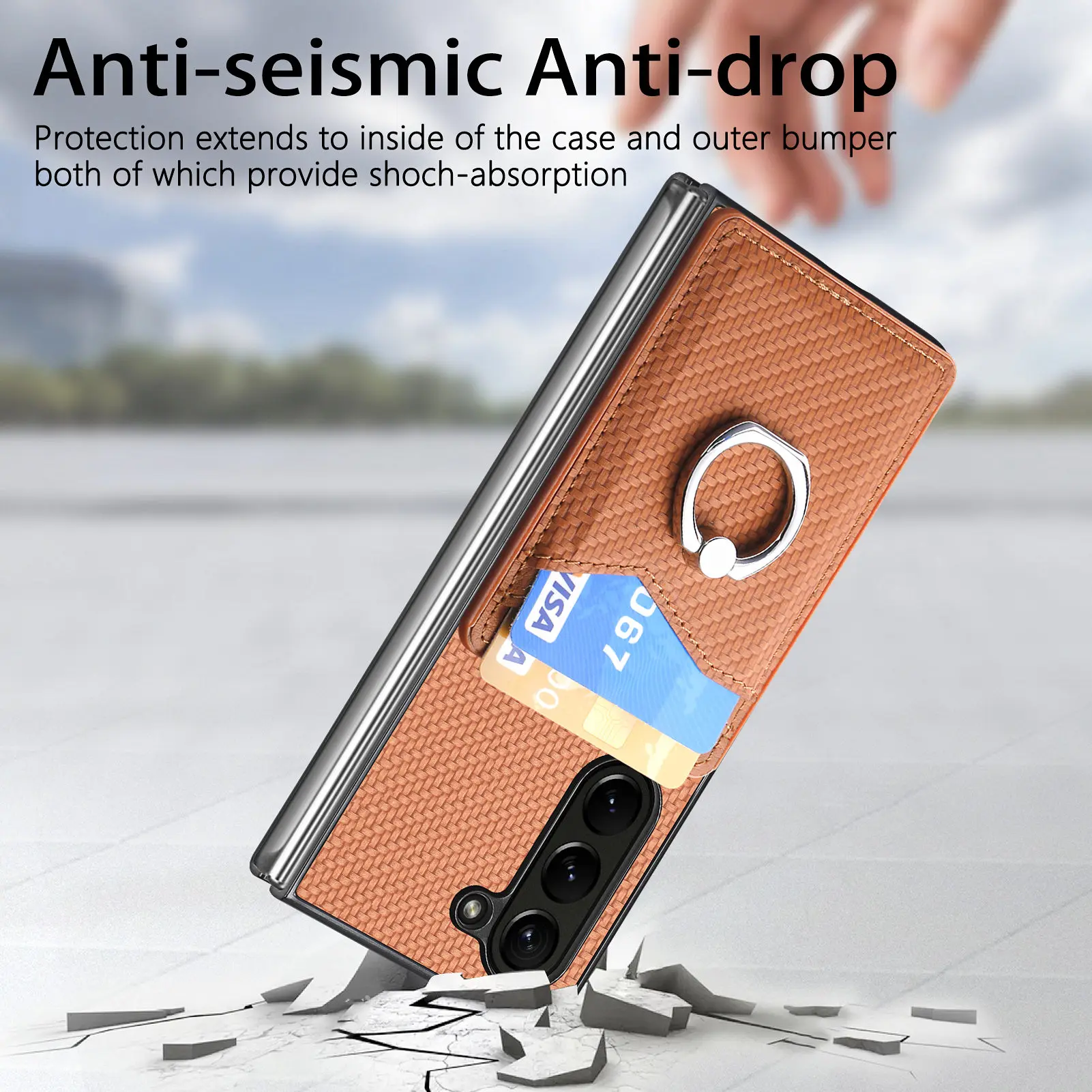 Soporte de anillo magnético Tarjetas Solt Wallet Case para Samsung Galaxy Z Fold 6 5 4 3 5G Fold4 Fold5 stand Bolsa de fibra de carbono Funda de bolsillo