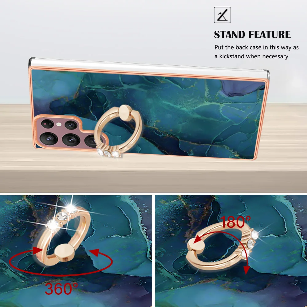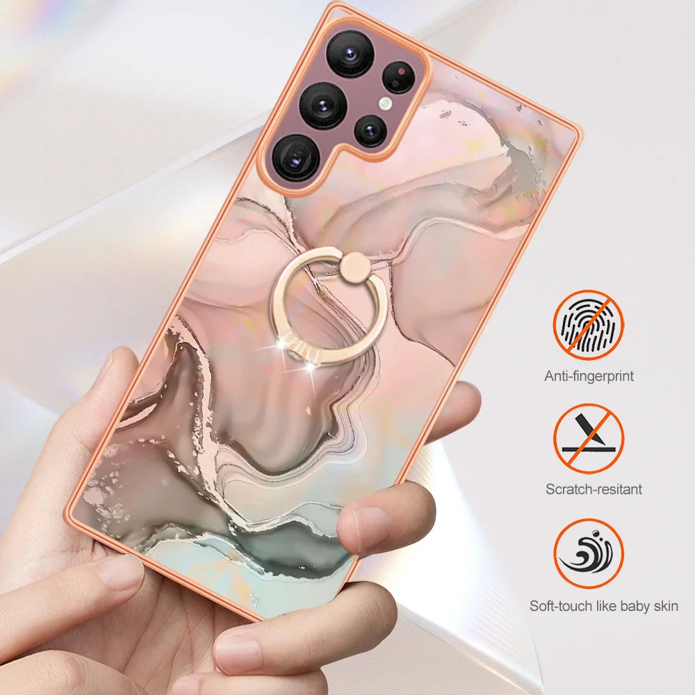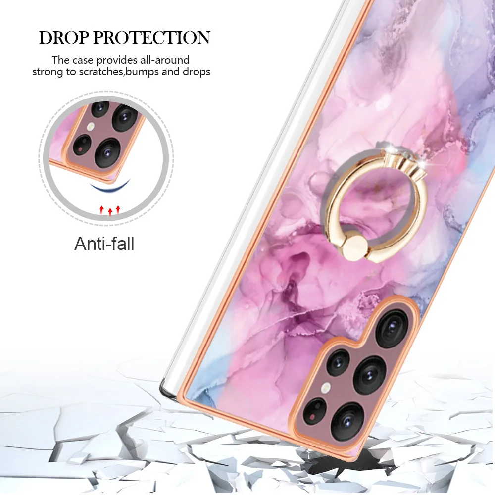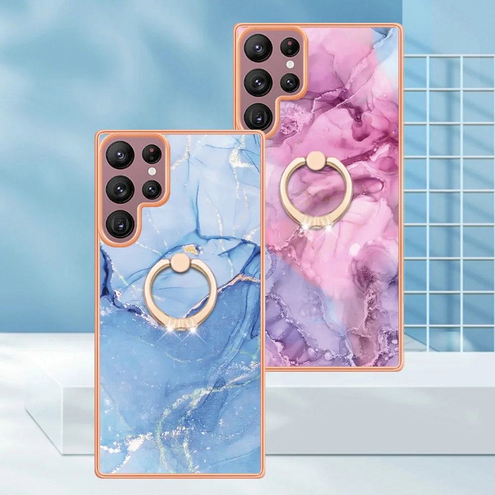 Funda con soporte de anillo de mármol para Samsung S23 Ultra S22 Plus S21 S20 FE A04E A14 A24 A34 A54 A13 A23 A33 A53 A73 A72 A52