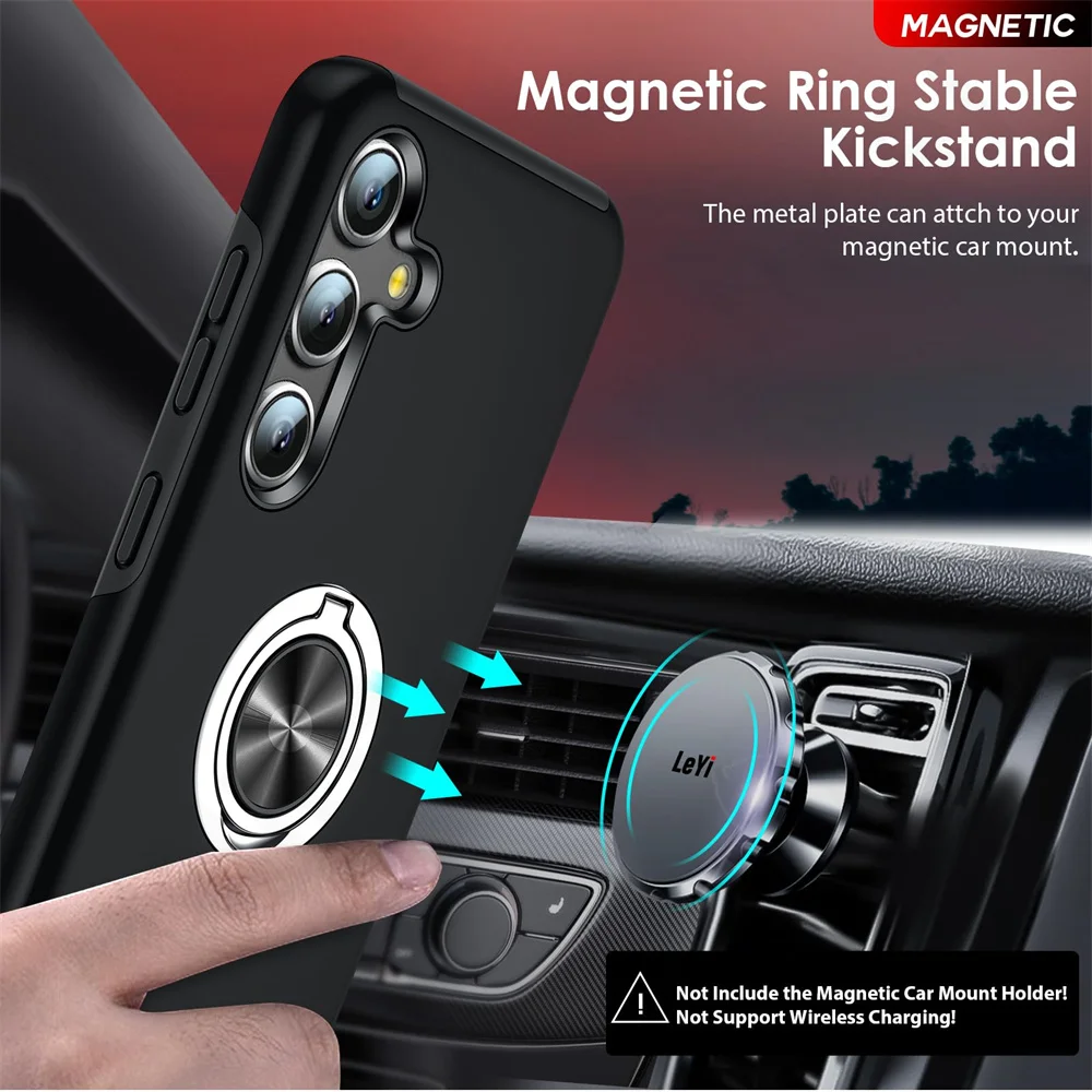 ��[Compatibilidad]: Compatible con Samsung Galaxy.⭐ No se admite la carga inalámbrica cuando se utiliza la funda del teléfono. ��[Protección de pantalla y cámara]: el corte preciso garantiza un fácil acceso a todas las funciones y labios elevados para proteger la pantalla y la cámara. 【Adsorción magnética】: Anillo giratorio mejorado de 360 grados, se puede sostener selfies.Soporte cómodo, experiencia de visualización manos libres, el anillo del soporte está hecho de metal, se puede atraer al soporte magnético (sin incluir el soporte magnético del automóvil), sin pasos de instalación complicados, adsorción directa. [Materiales de calidad]: diseño clásico militar, efecto pintado.La doble carcasa (PC + TPU) protege contra arañazos, golpes y caídas. � � [Garantía de satisfacción]: Si tiene alguna pregunta o sugerencia, no dude en contactarnos. Responderemos a su correo electrónico dentro de las 24 horas. Haremos todo lo posible para brindar el mejor servicio. ⭐