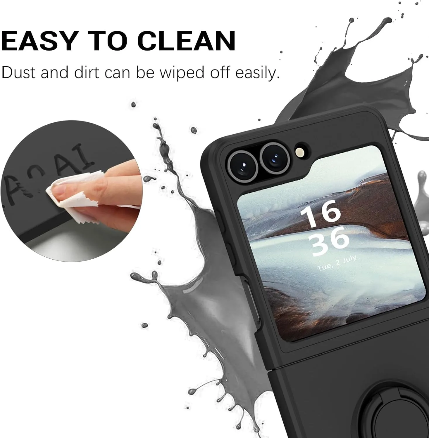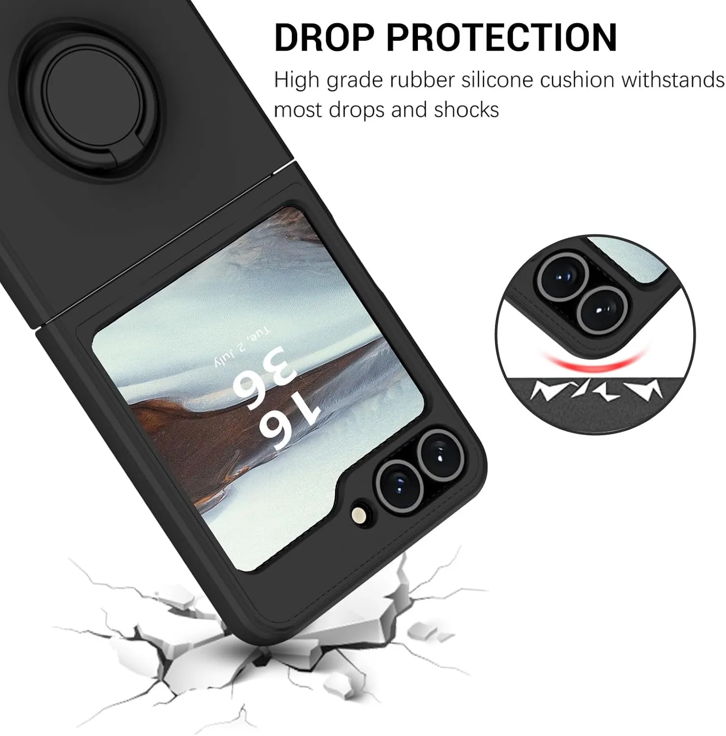 Comprar Funda con soporte de anillo para Samsung Z Flip 6, funda de silicona líquida a la moda para Samsung Galaxy Z Flip 3 4 5 6 ZFlip6 Flip5