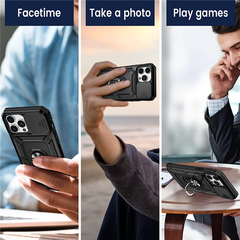 Funda con soporte de armadura de grado militar para IPhone 16, 15, 14, 13, 12, 11 Pro Max Plus, 15Pro, i15, soporte magnético para coche con cubierta deslizante para cámara