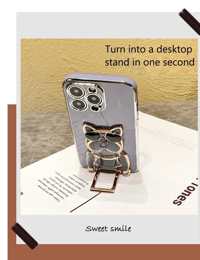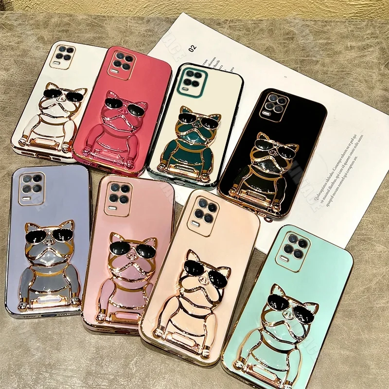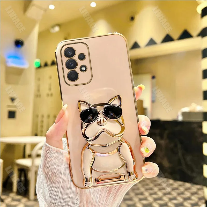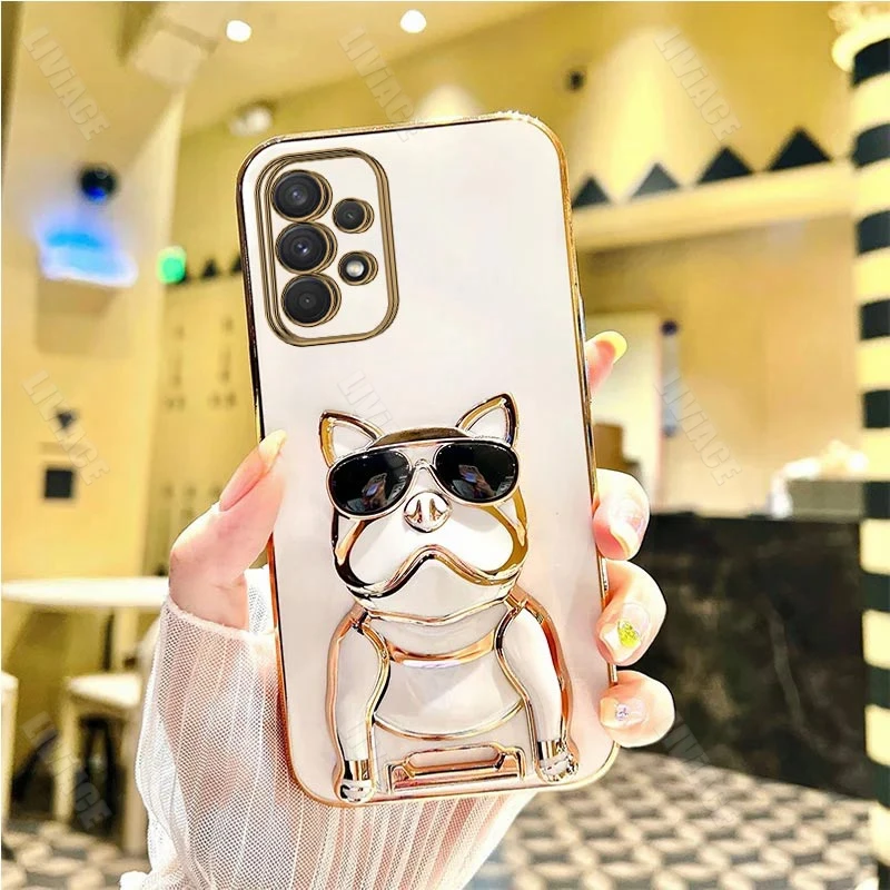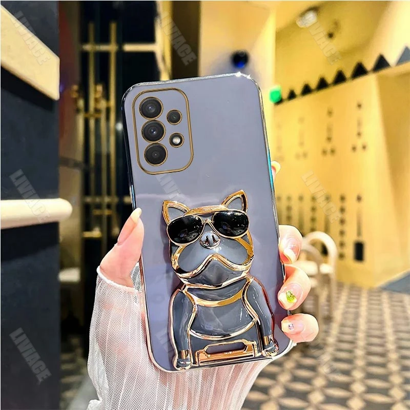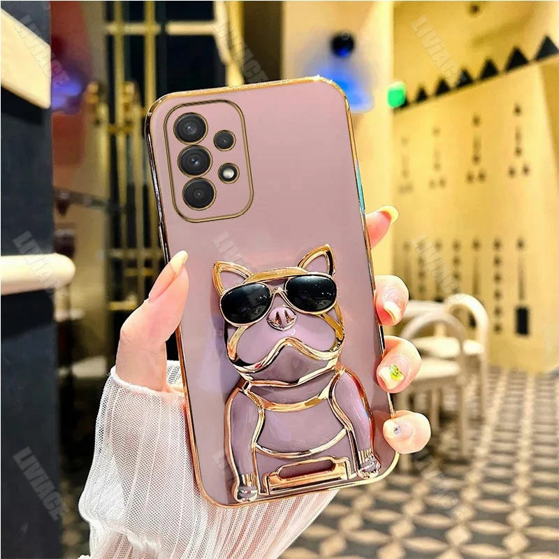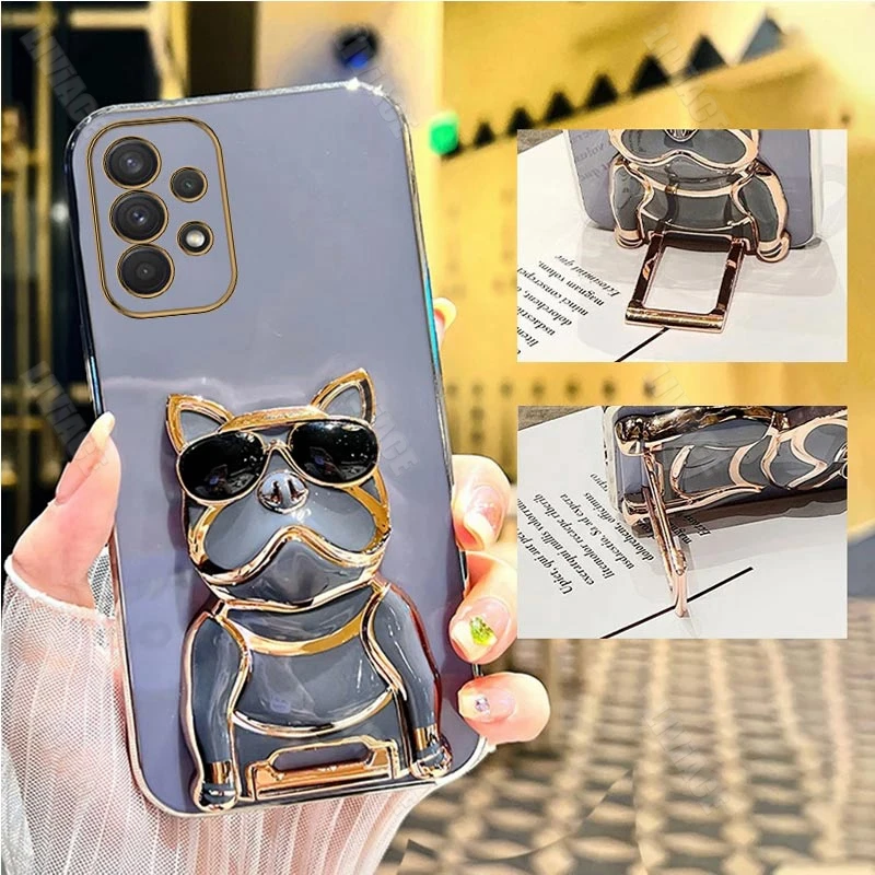 Gafas de sol Bulldog chapado soporte caso para Samsung Galaxy A53 A73 A33 A52 A52s A72 A32 4G 5G A51 A71 A12 A50 A70 A50S A31 cubierta