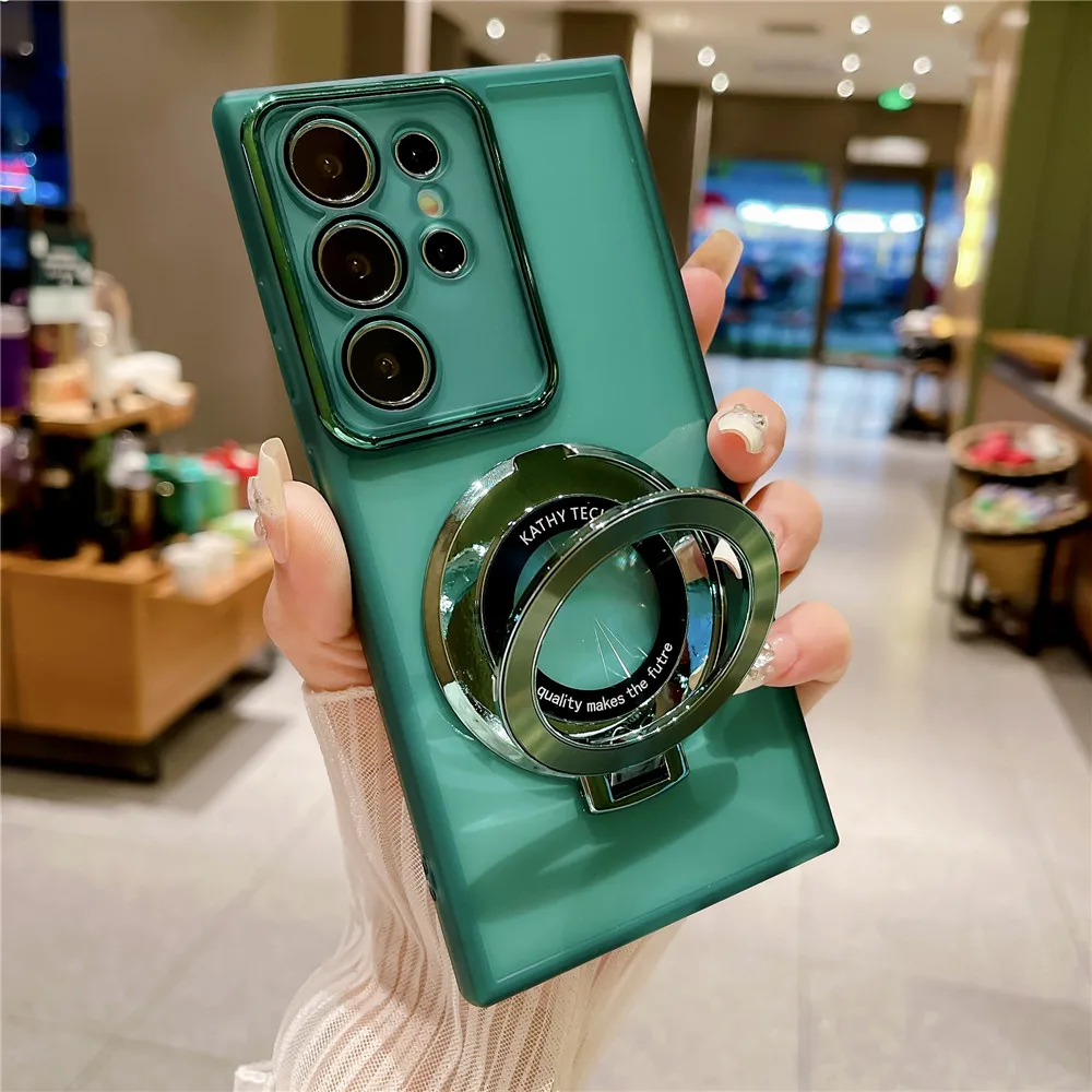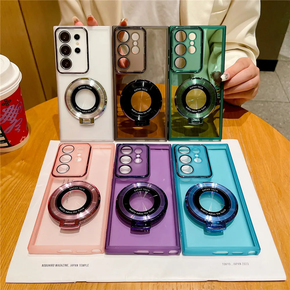 Funda con soporte de chapado de lujo para Samsung Galaxy S24 S23 S22 Plus Ultra S23FE S21FE S20FE M13 M33 M14 M54, funda transparente suave con soporte
