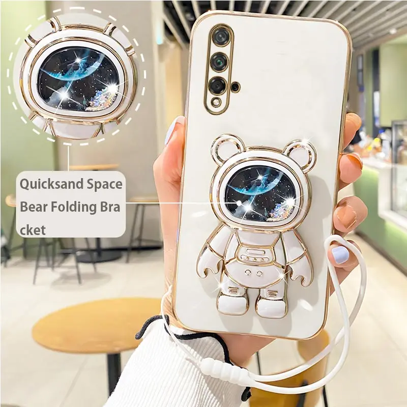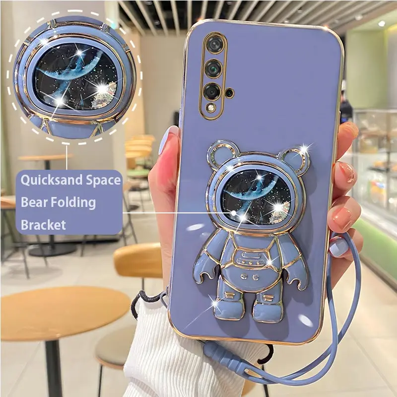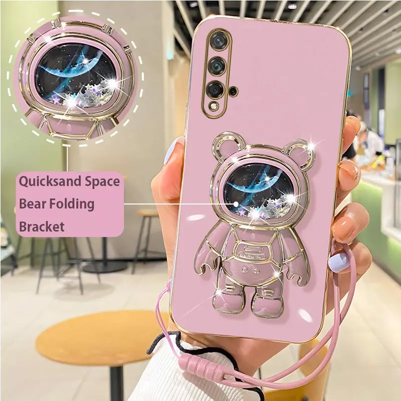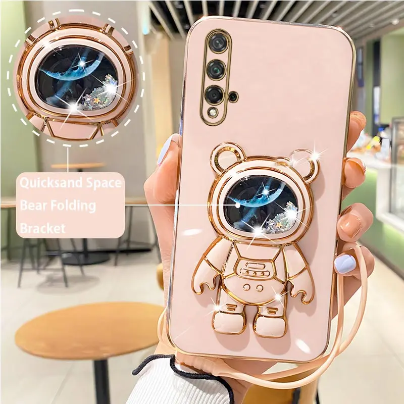 Funda con soporte para correa de astronauta de arena movediza para Huawei Honor 10 20 Lite 30s Play 3 4 5T 4t 6t 8X Max X8 X9 9X Pro Stand Fundas