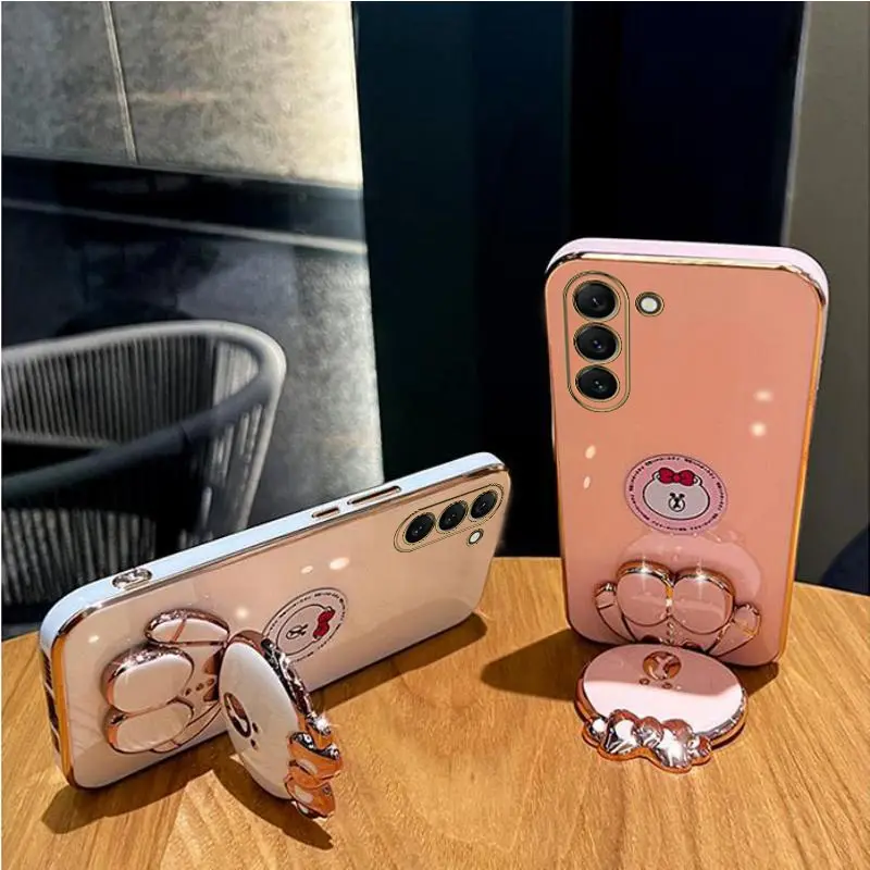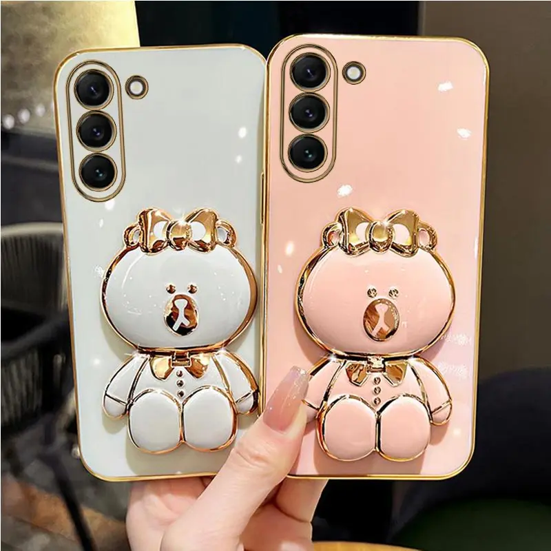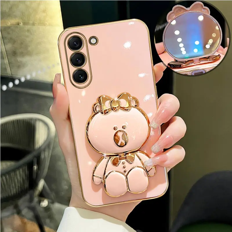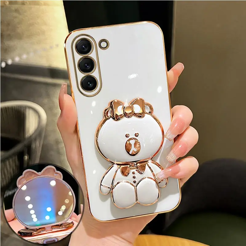 Funda con soporte Chapado en oso espejo para Samsung Galaxy S21 S20 S22 S23 S10 S9 S8 Note 10 20 Plus Ultra FE S23 S21 S20