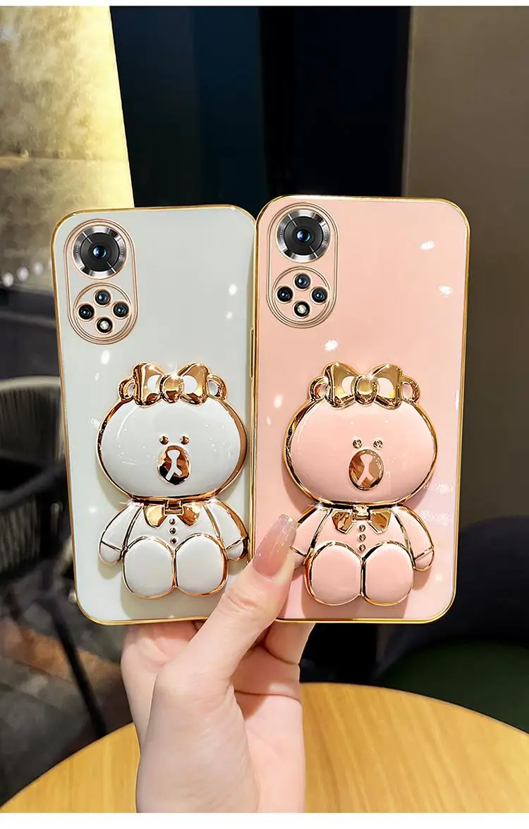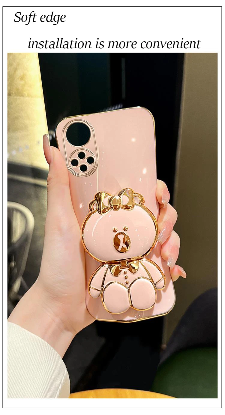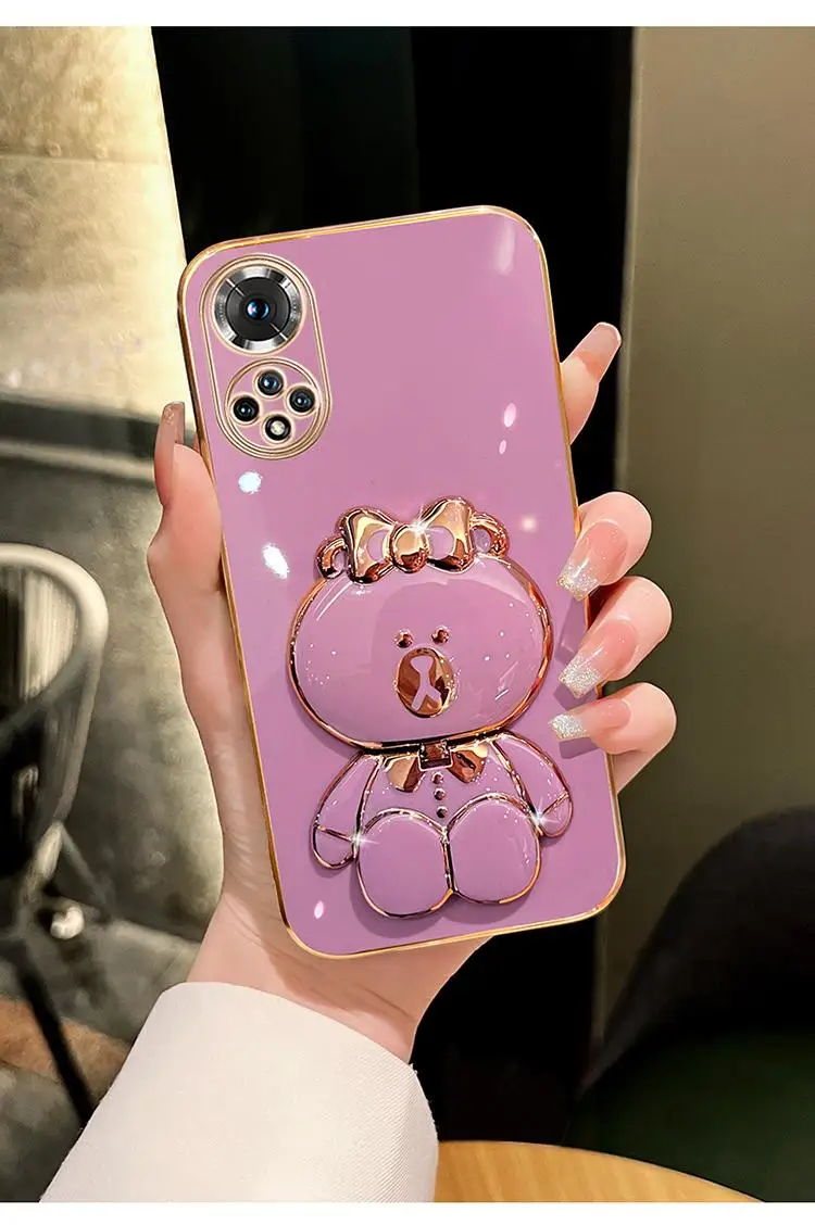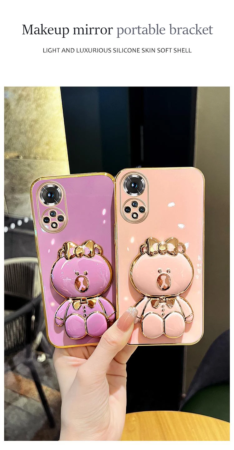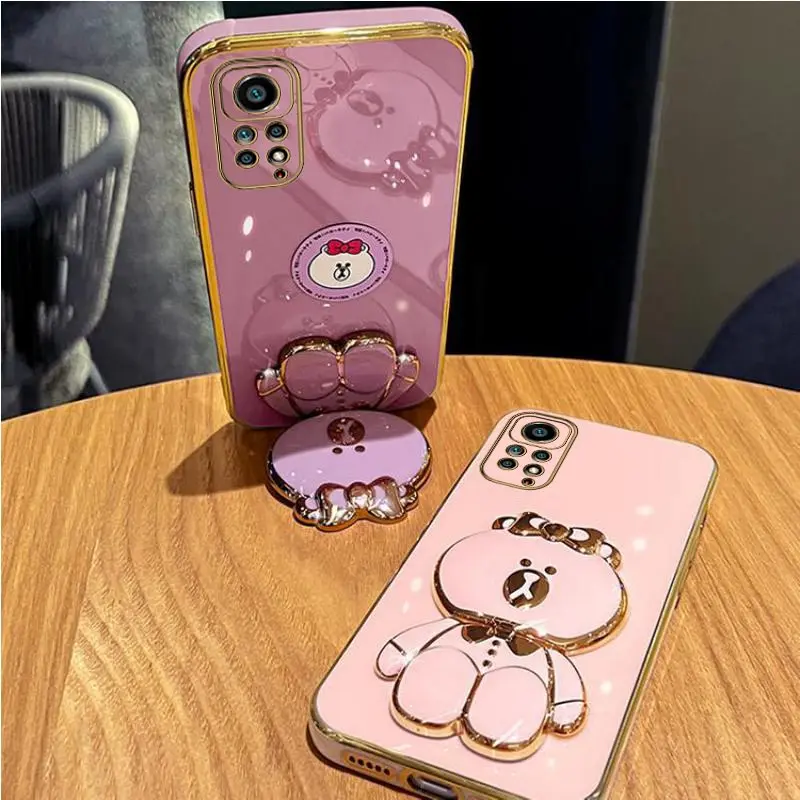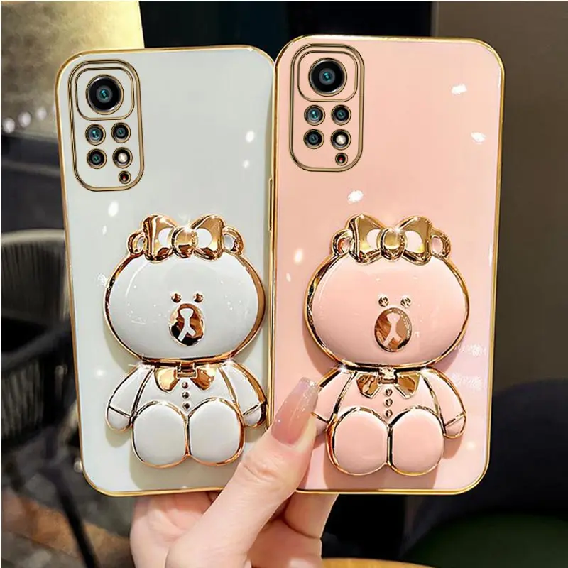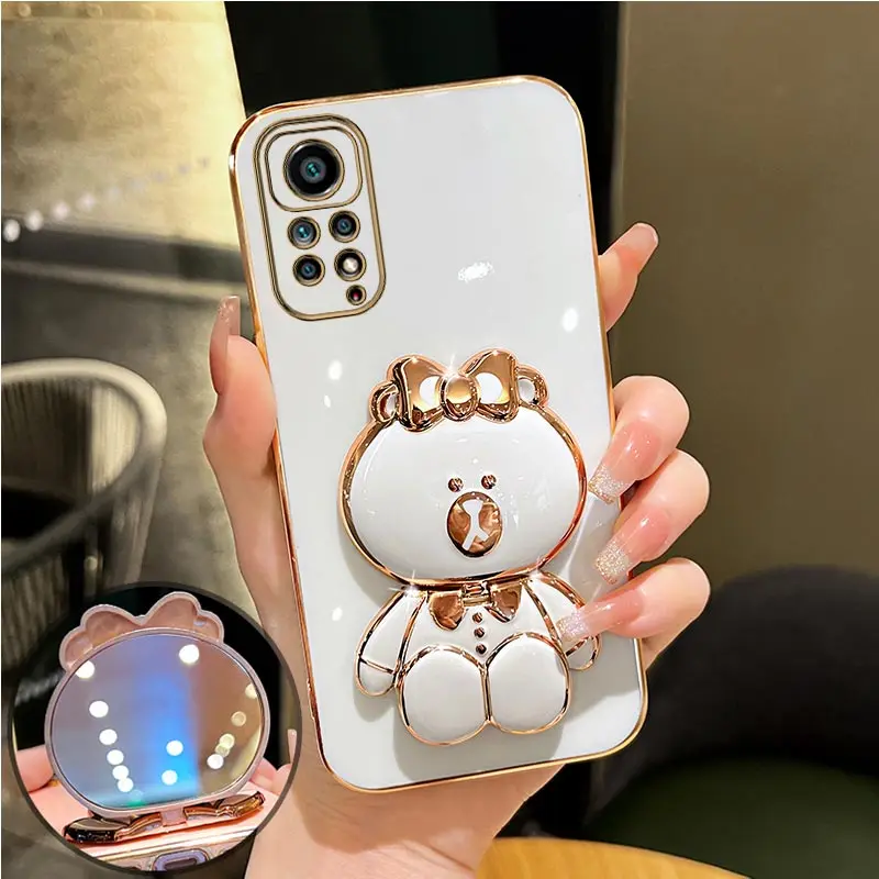 Funda con soporte Chapado en oso espejo para Xiaomi Redmi Note 11 8 12 10 9 Pro Max 10 12 10s 11s 9A 9T 9C Nfc