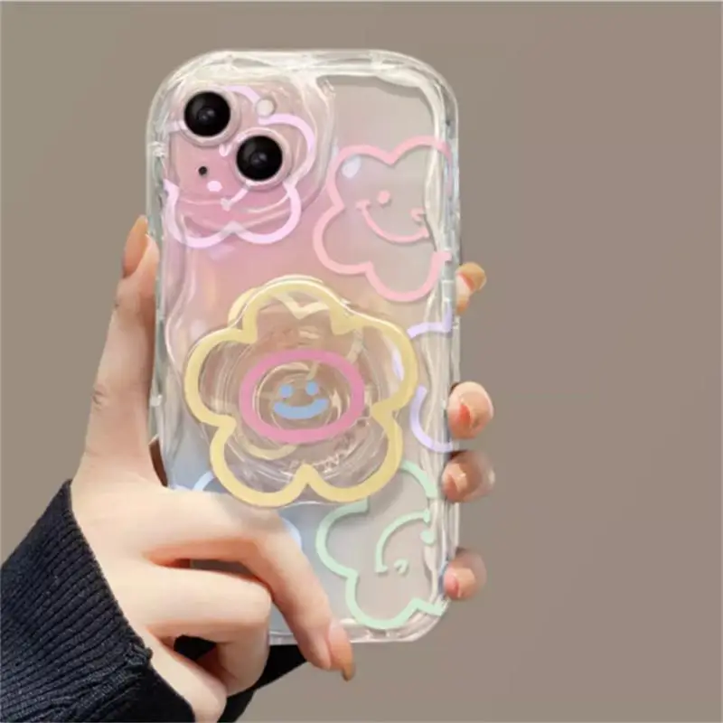 Comprar Funda con soporte de flores sonriente para Samsung Galaxy S24 S23 Ultra S20 FE S21 Plus A54 A34 A52 A53 A14 A23 A24 A32 A31 A03 A05 A05S