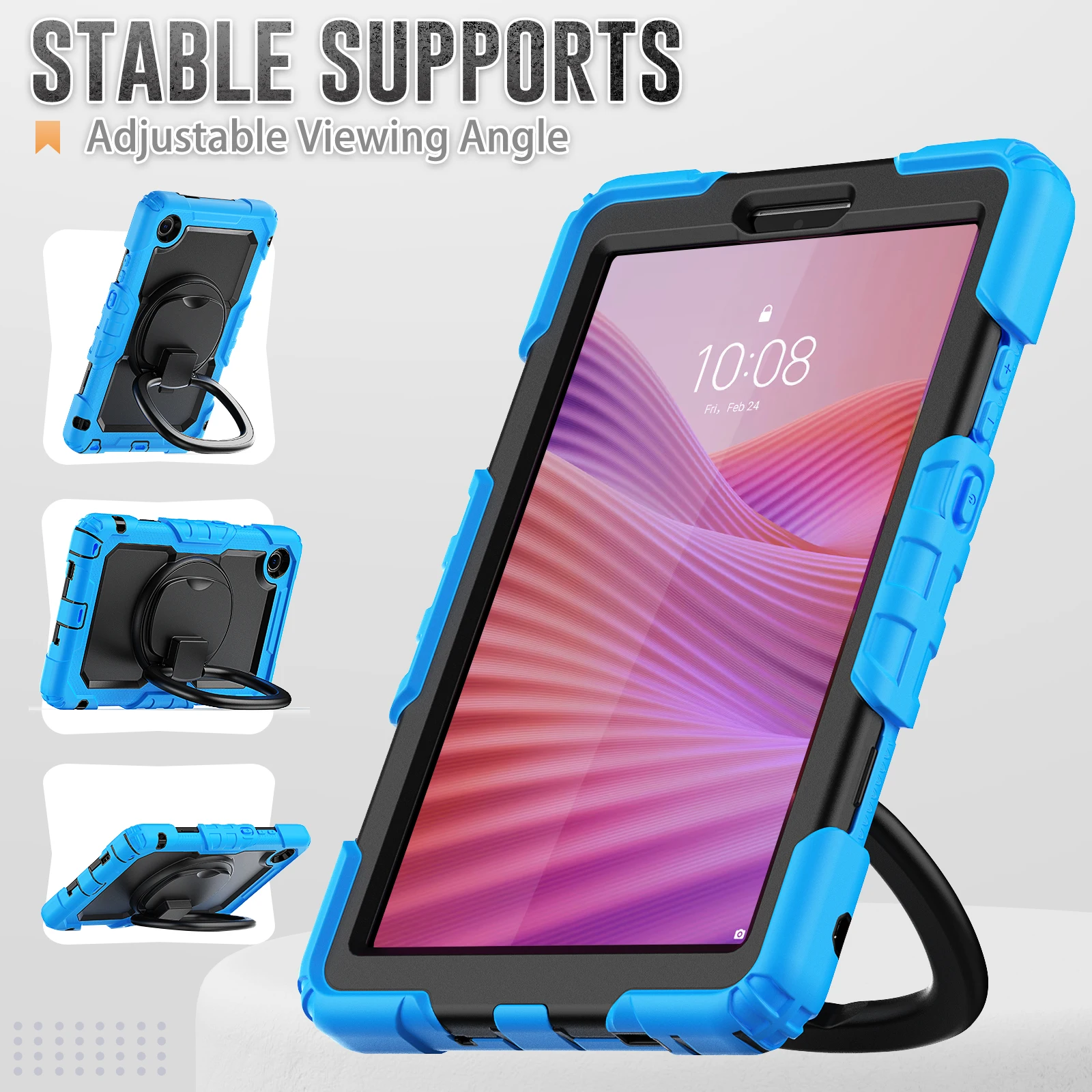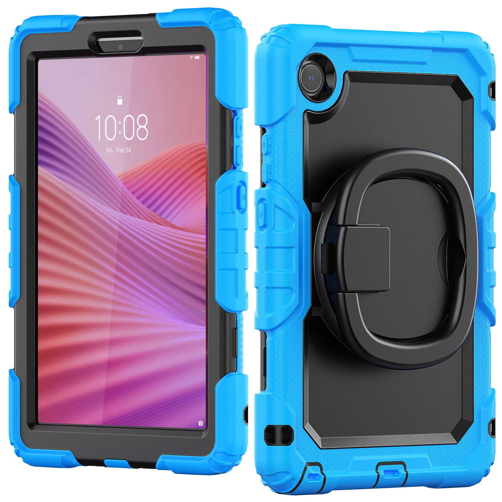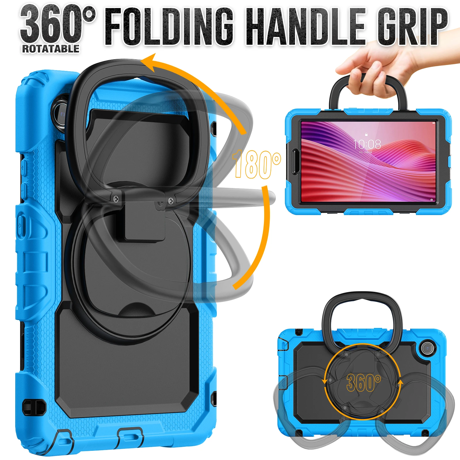 Funda con soporte giratorio 360 para Lenovo Tab One (K9) 2025 8,7 pulgadas TB305FU, cubierta de armadura híbrida con asa plegable y correa para el hombro