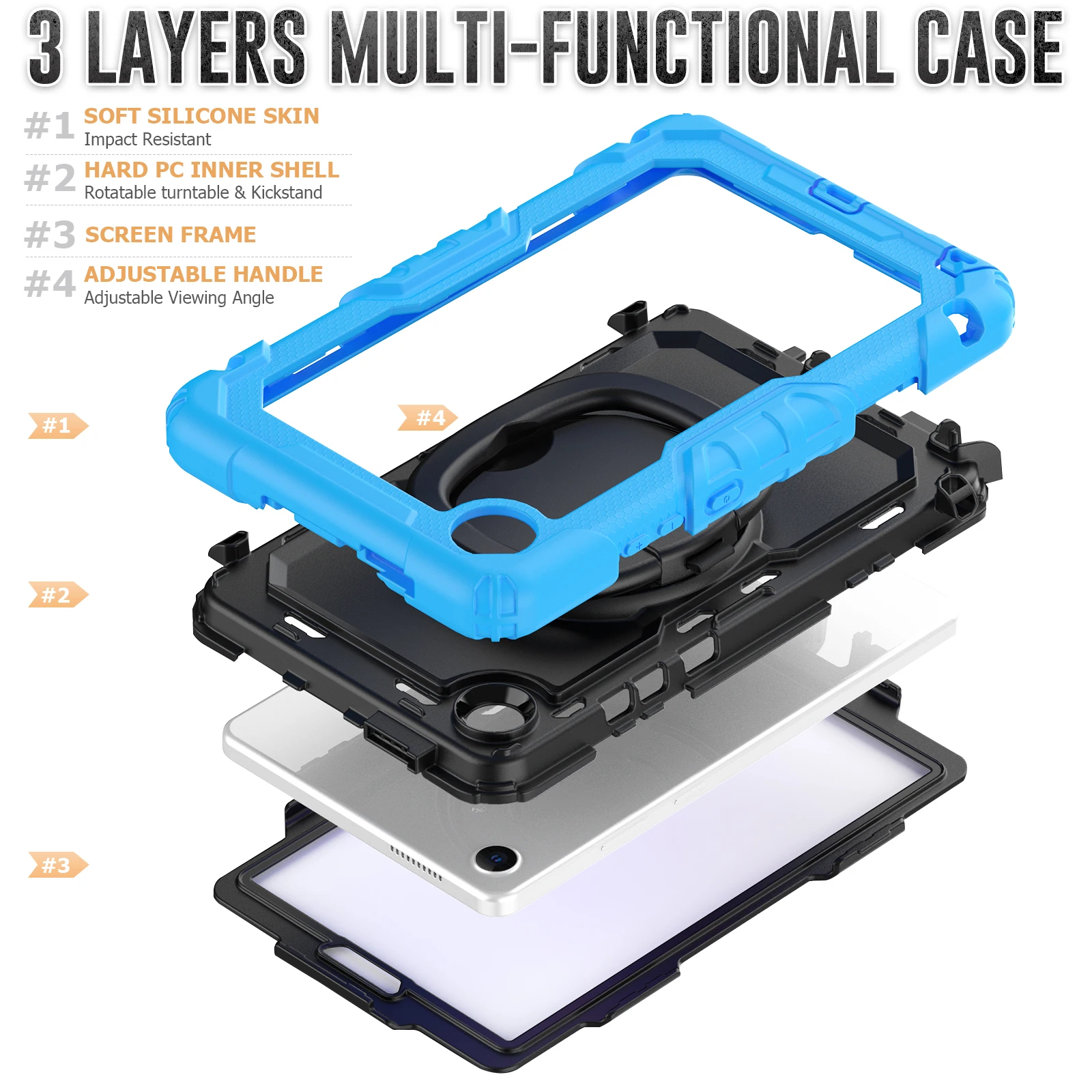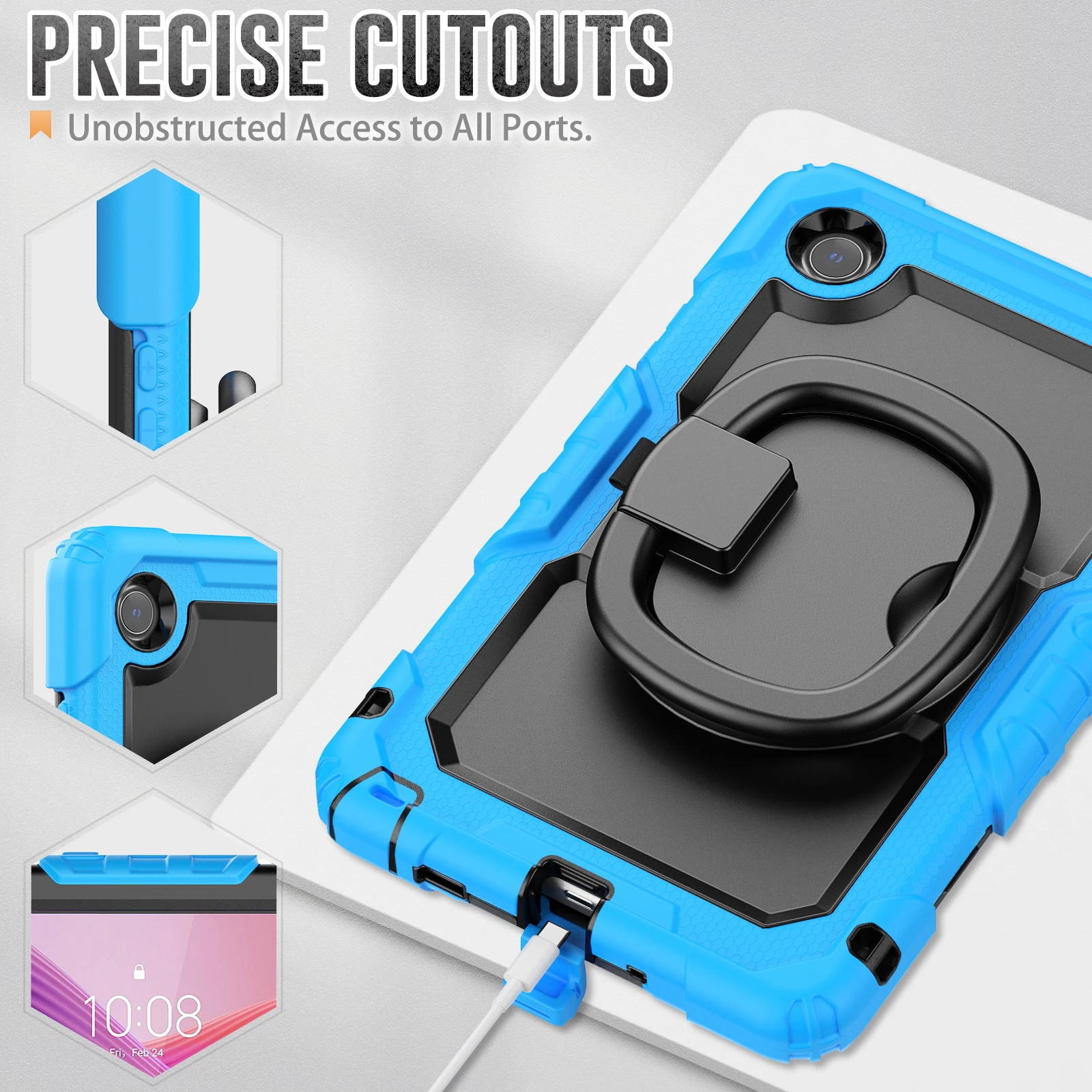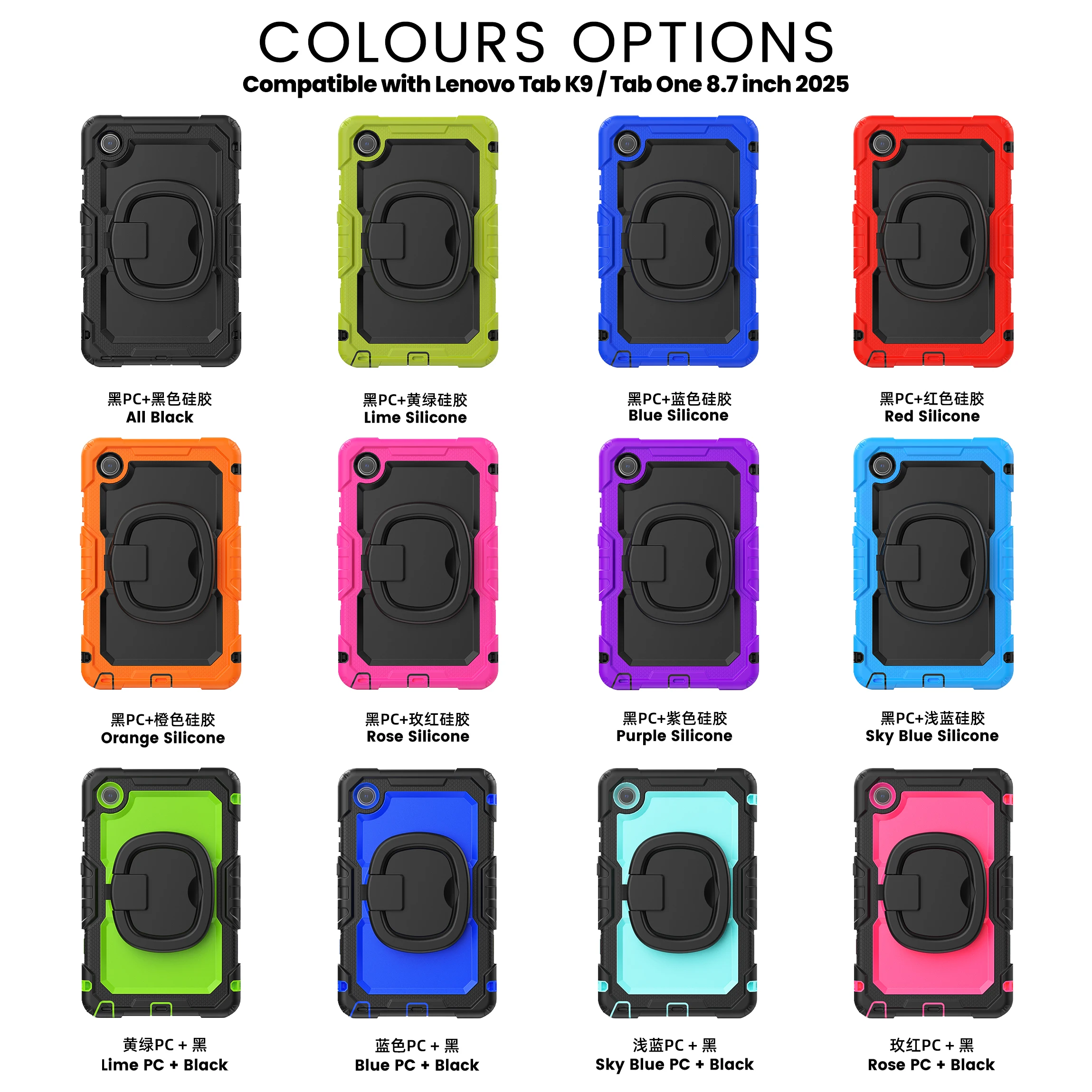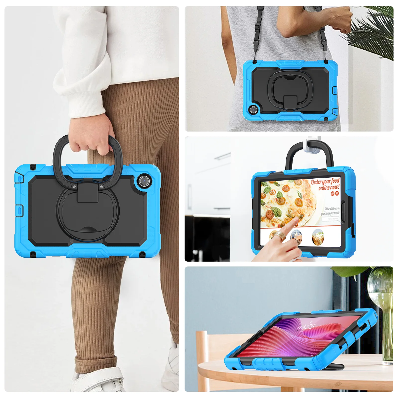 Funda con soporte giratorio 360 para Lenovo Tab One (K9) 2025 8,7 pulgadas TB305FU, cubierta de armadura híbrida con asa plegable y correa para el hombro