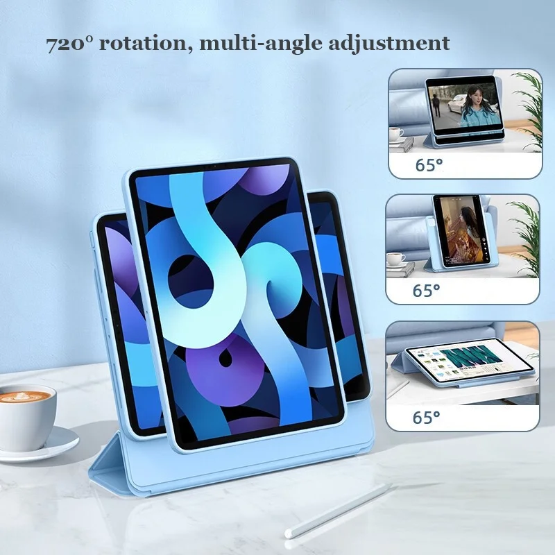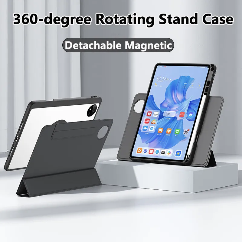 【Cubierta protectora giratoria de 720 grados】Una funda protectora que consiste en una cubierta protectora de PU y una carcasa acrílica transparente. La funda de acrílico transparente tiene una función de giro que convierte la funda en un soporte de visualización y un soporte para teclado.