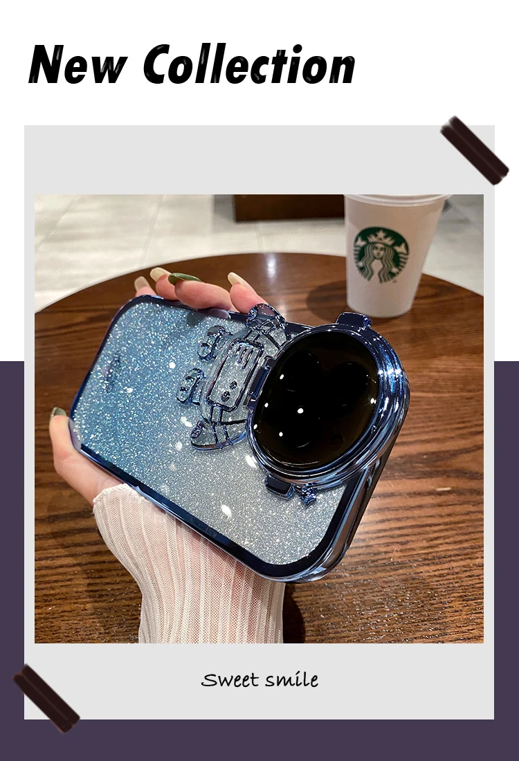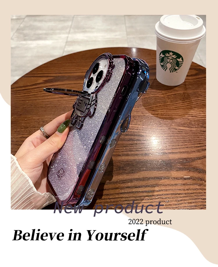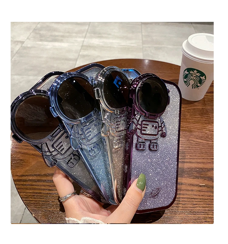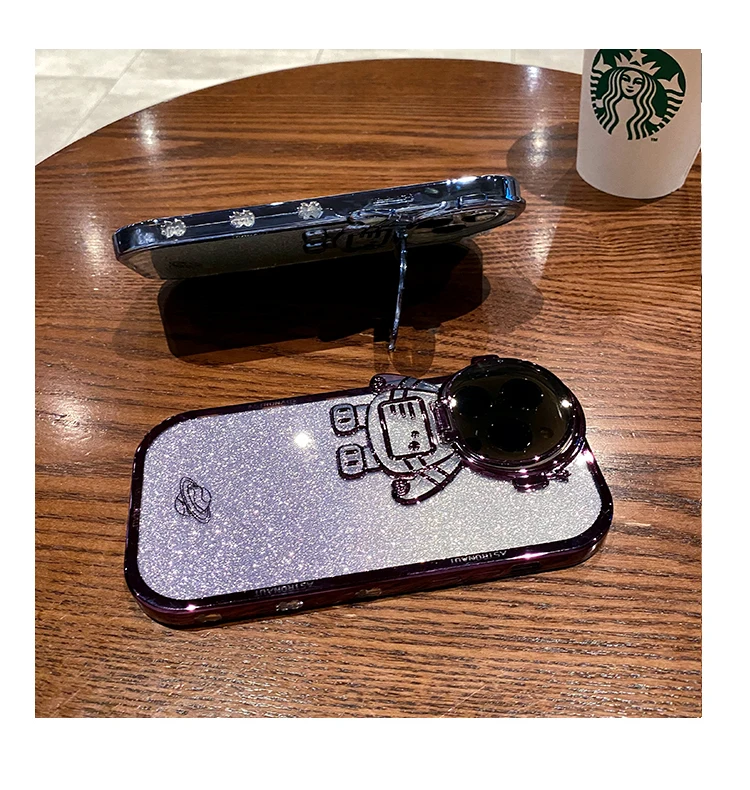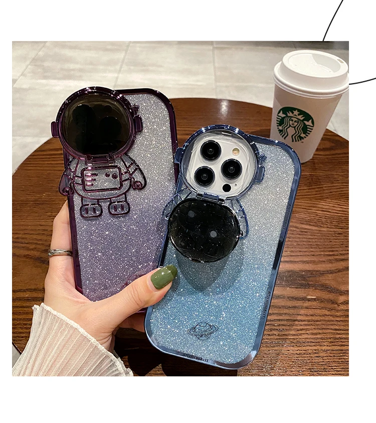 Comprar Funda con soporte de lente de astronauta abatible para iPhone 15, 13, 12, 11 Pro Max, XR, cubierta de silicona suave con brillo transparente