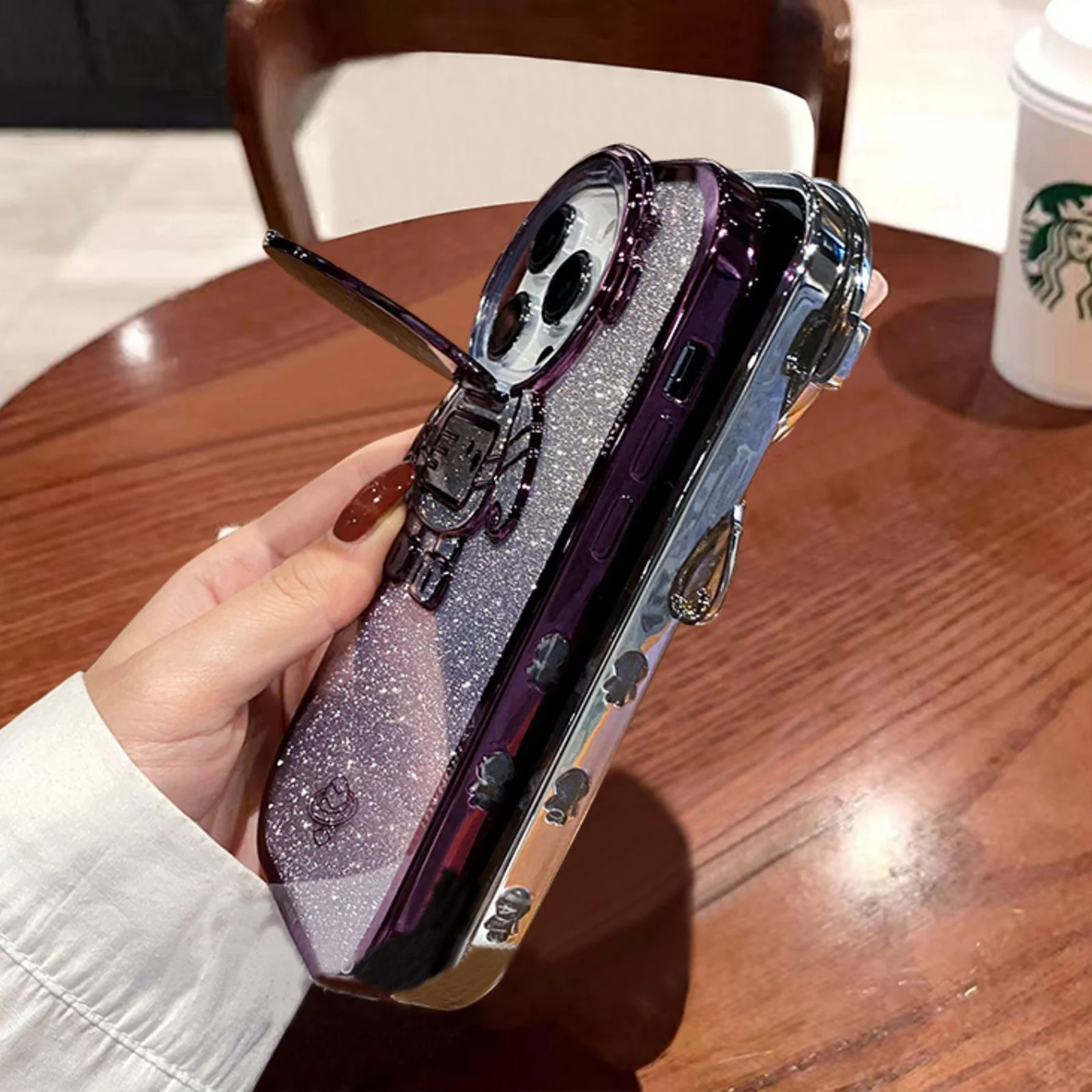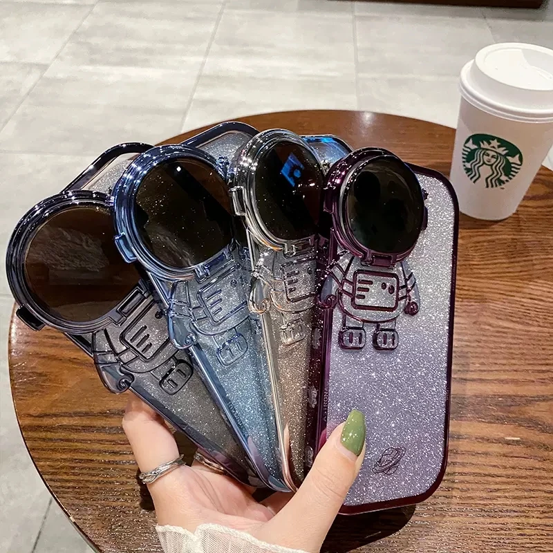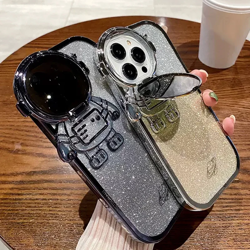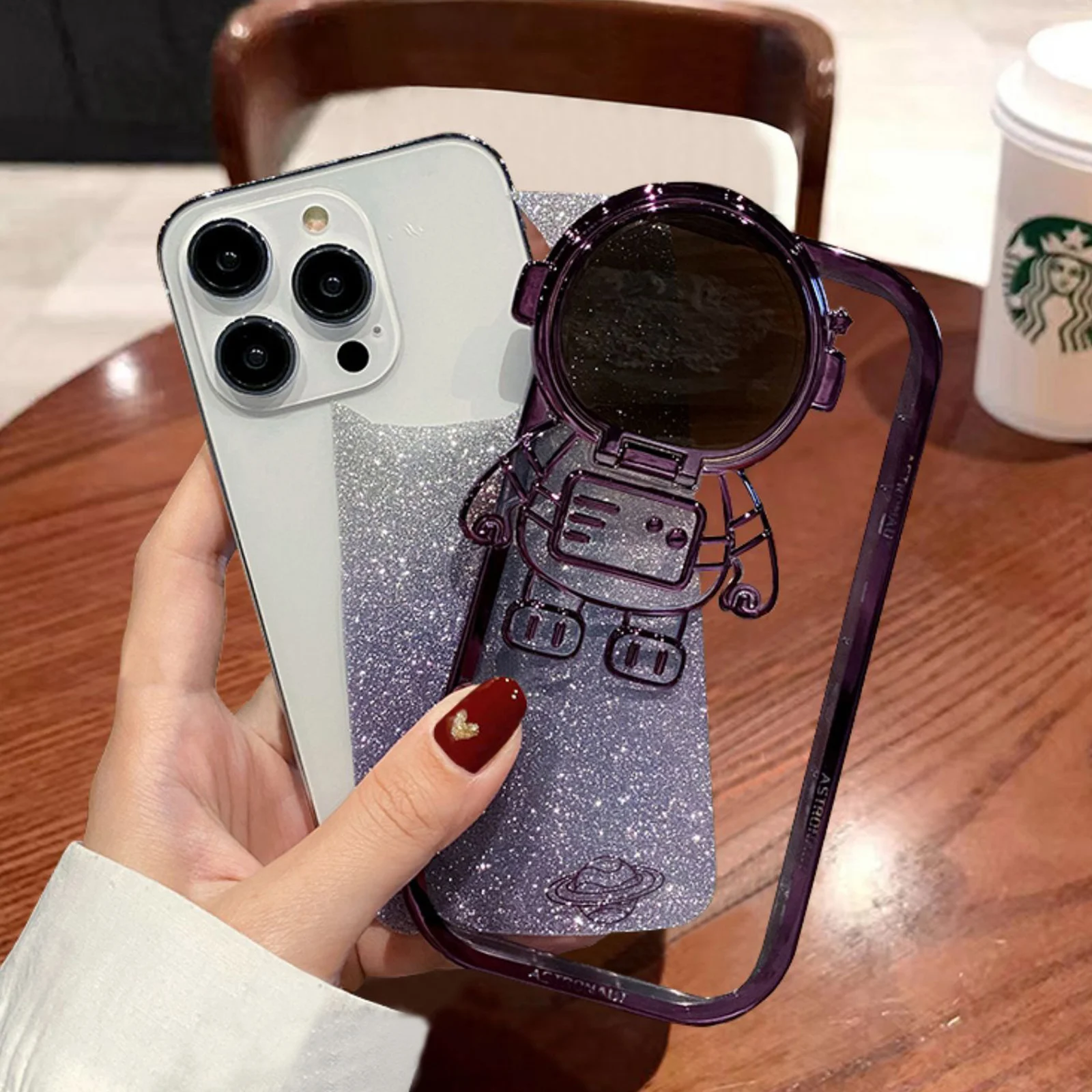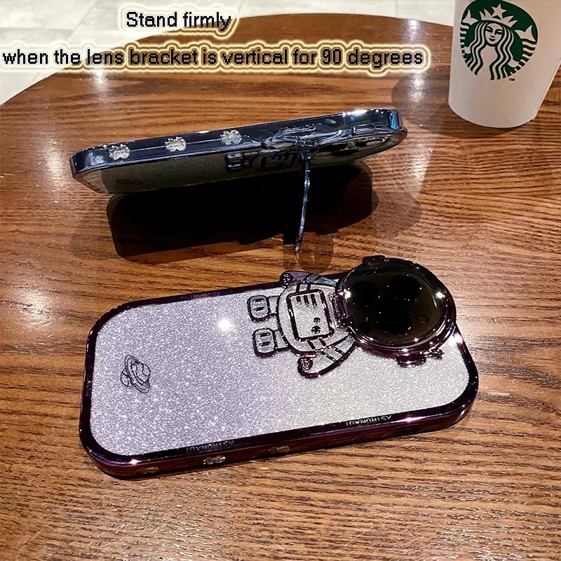 Comprar Funda con soporte de lente de astronauta abatible para iPhone 15, 13, 12, 11 Pro Max, XR, cubierta de silicona suave con brillo transparente