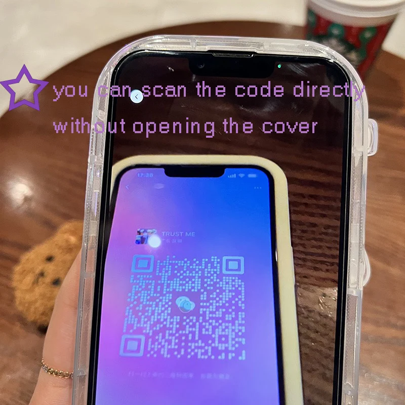 2.This lens protector is clear, you can scan QR code or take pictures freely without taking this foldable lens cover off
