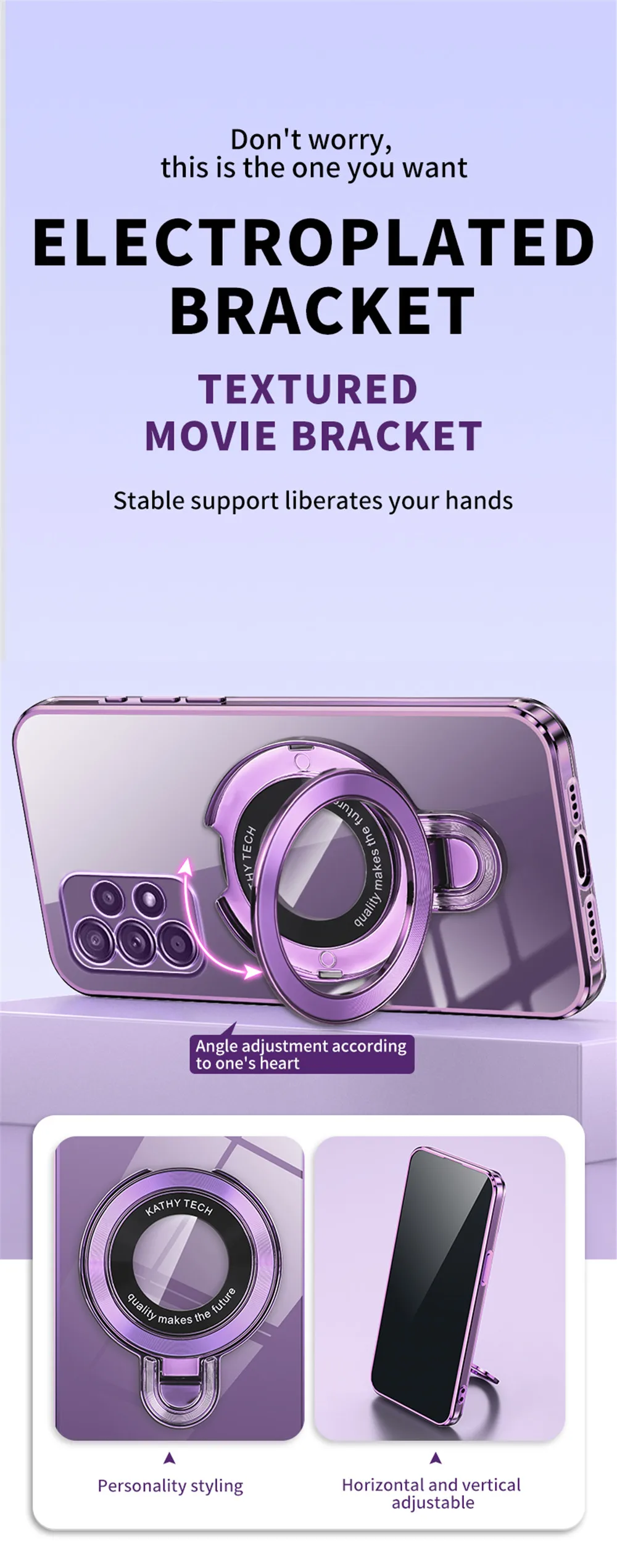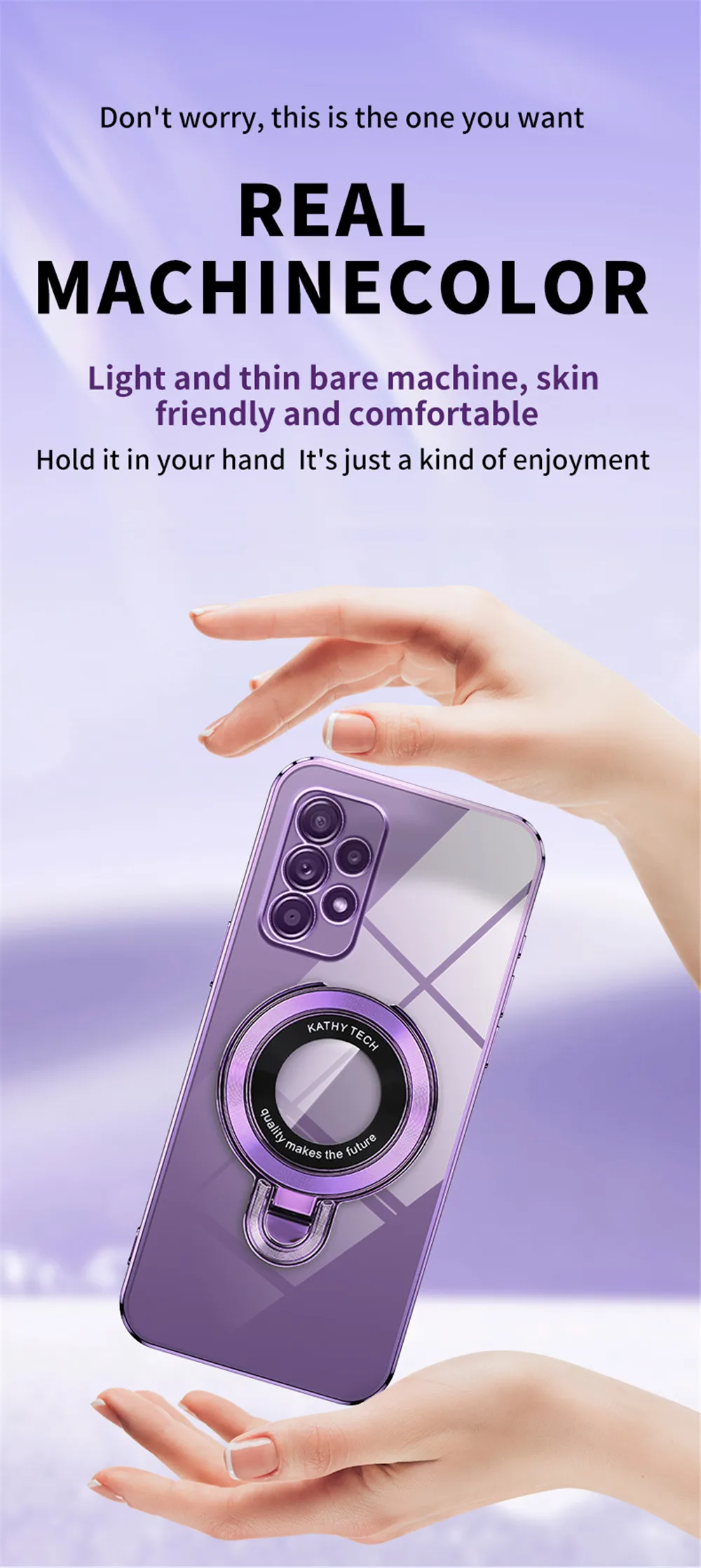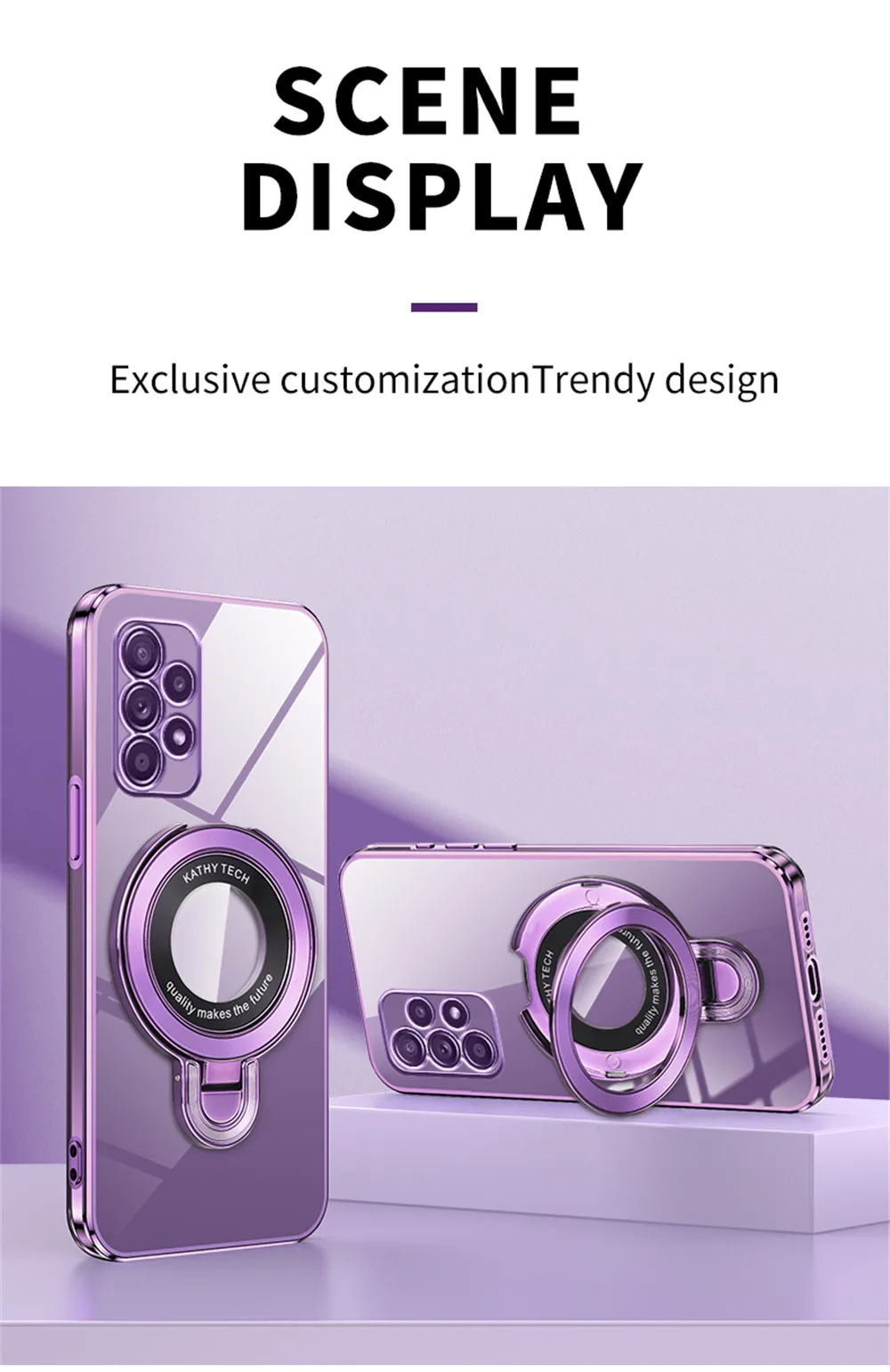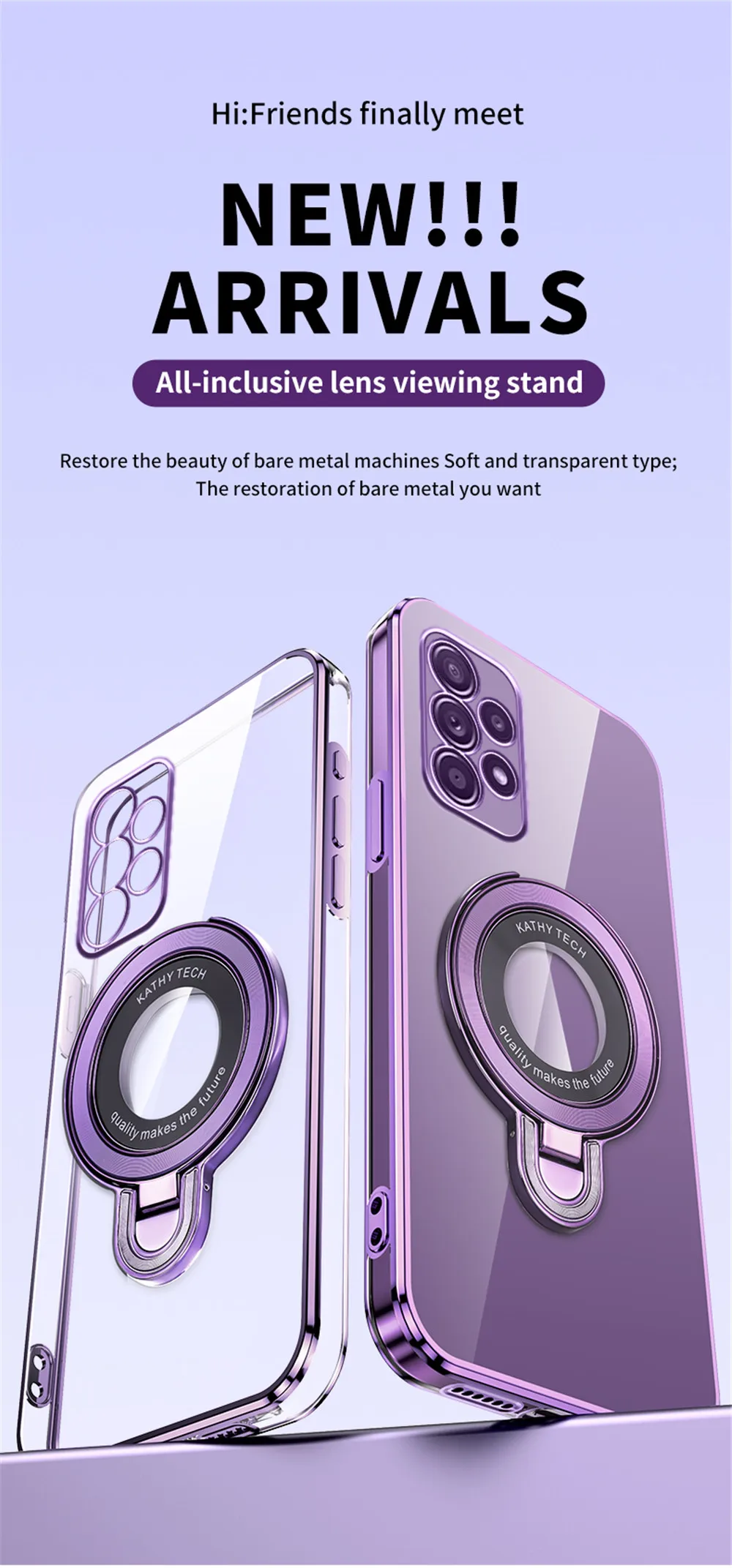 Comprar Funda con soporte magnético chapado transparente de lujo para Samsung A53 A13 A23 A33 A52 A32 A22 A12 A72 A73 4G 5G