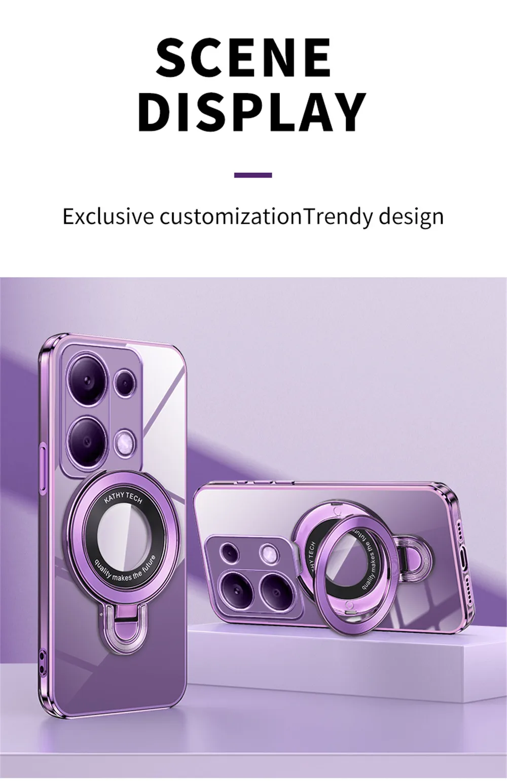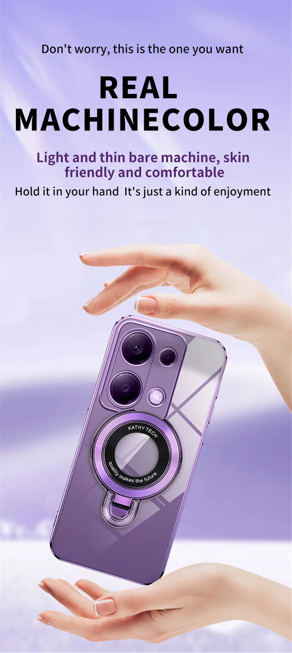 Funda con soporte magnético chapado transparente de lujo para Xiaomi Poco X6 Pro X3 NFC X5 F6 M6 Pro C65 C75 F3 F4 funda con soporte de silicona