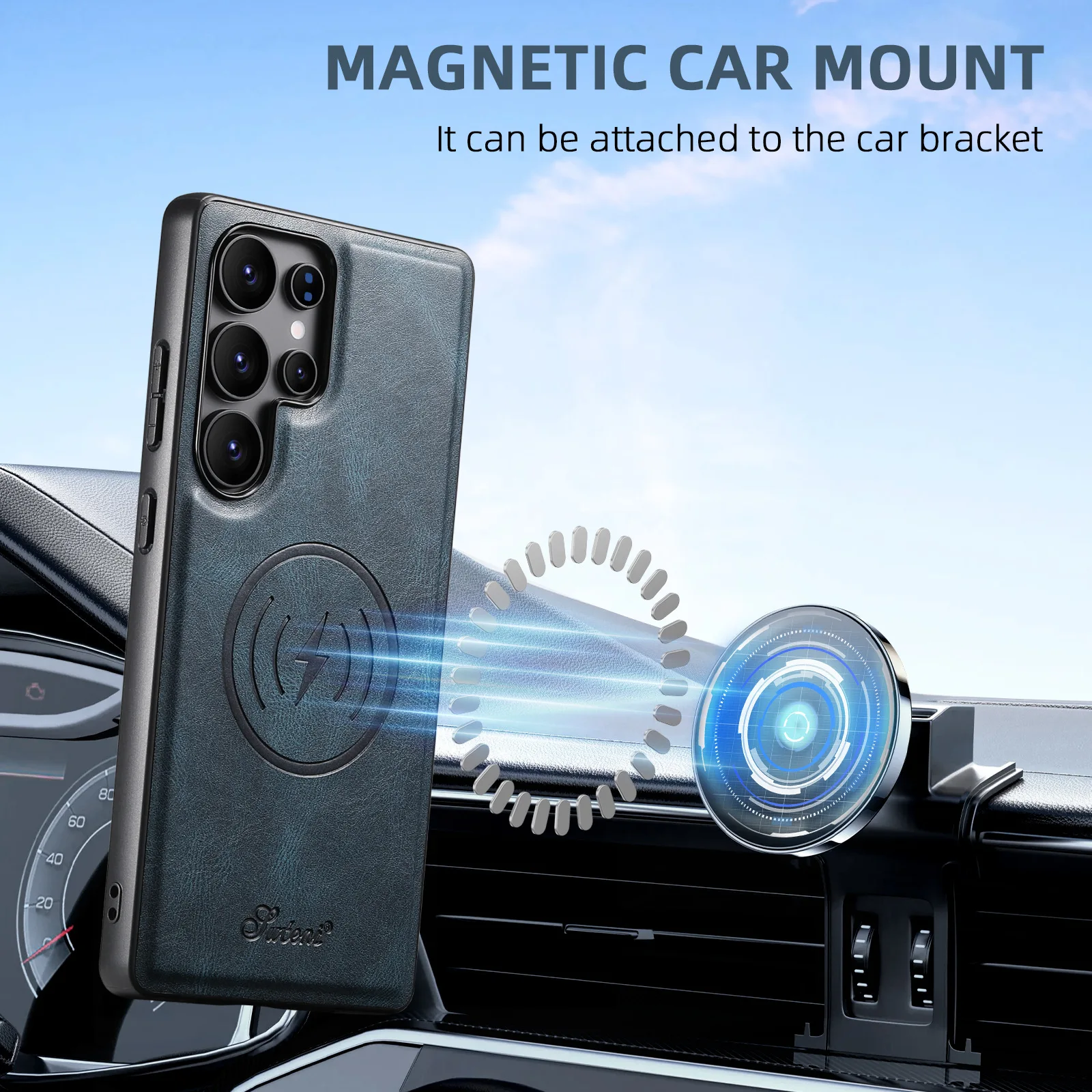 Funda con soporte magnético desmontable para Samsung Galaxy S25 S24 S23 S22 Ultra Plus, funda de cuero tipo billetera, Fundas de carga inalámbrica