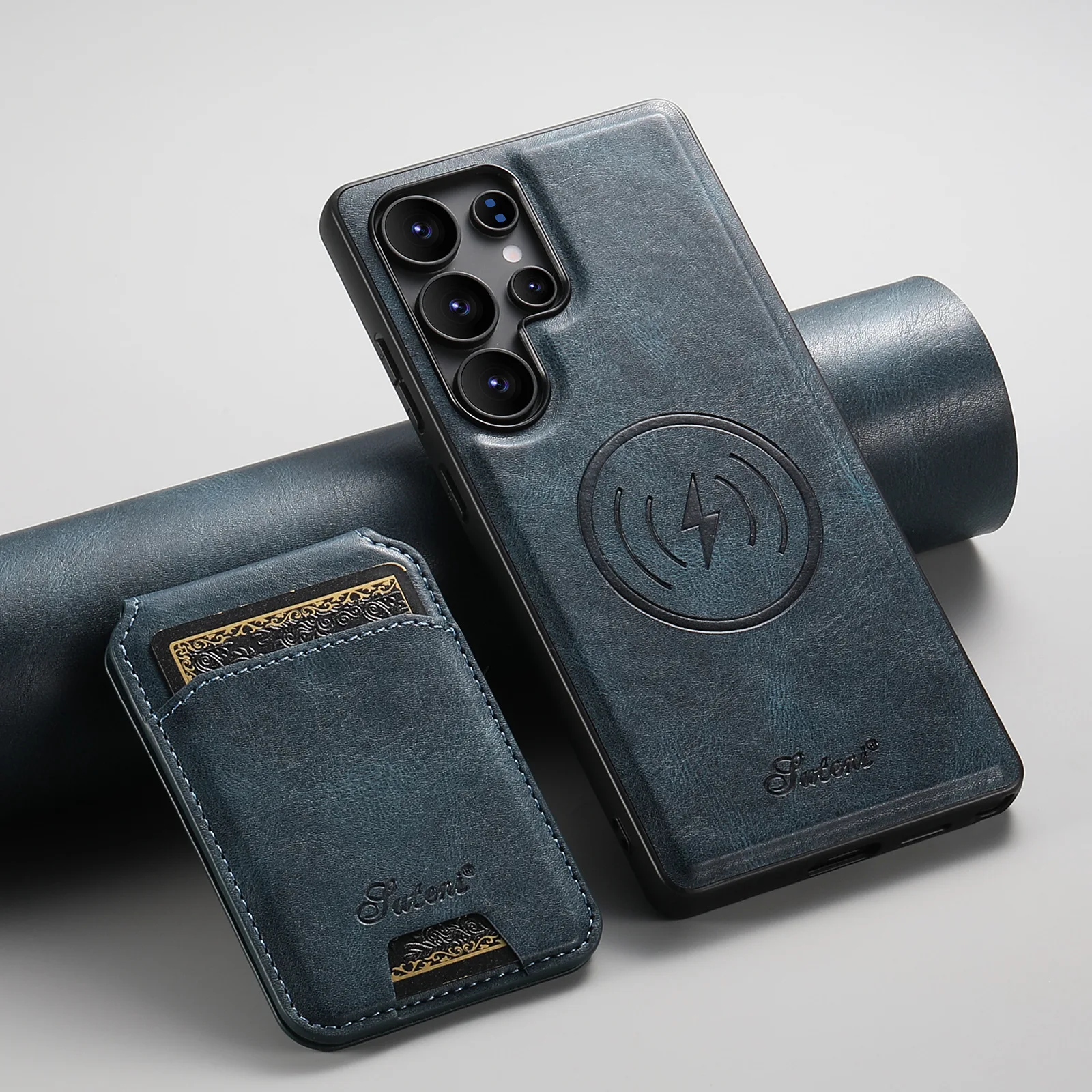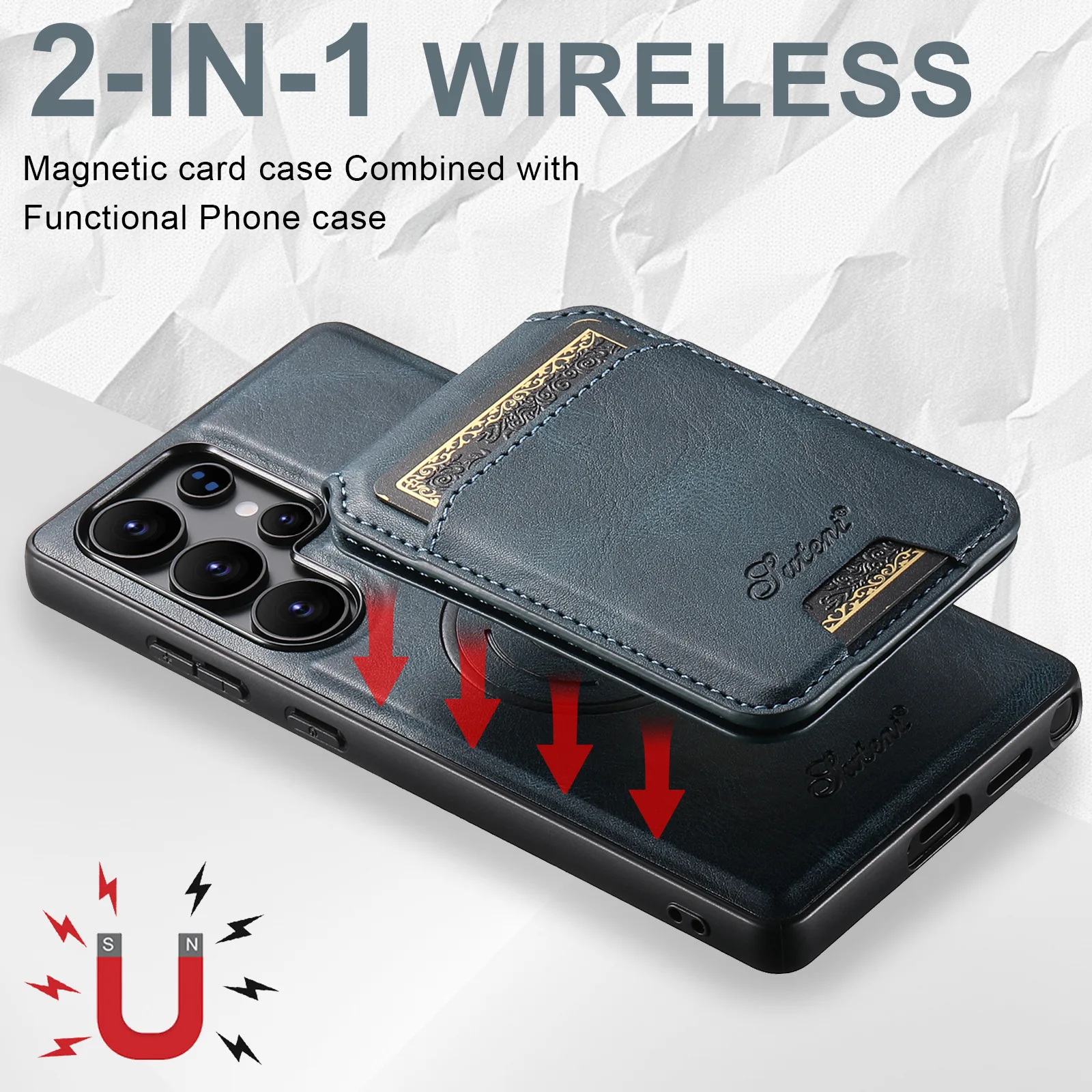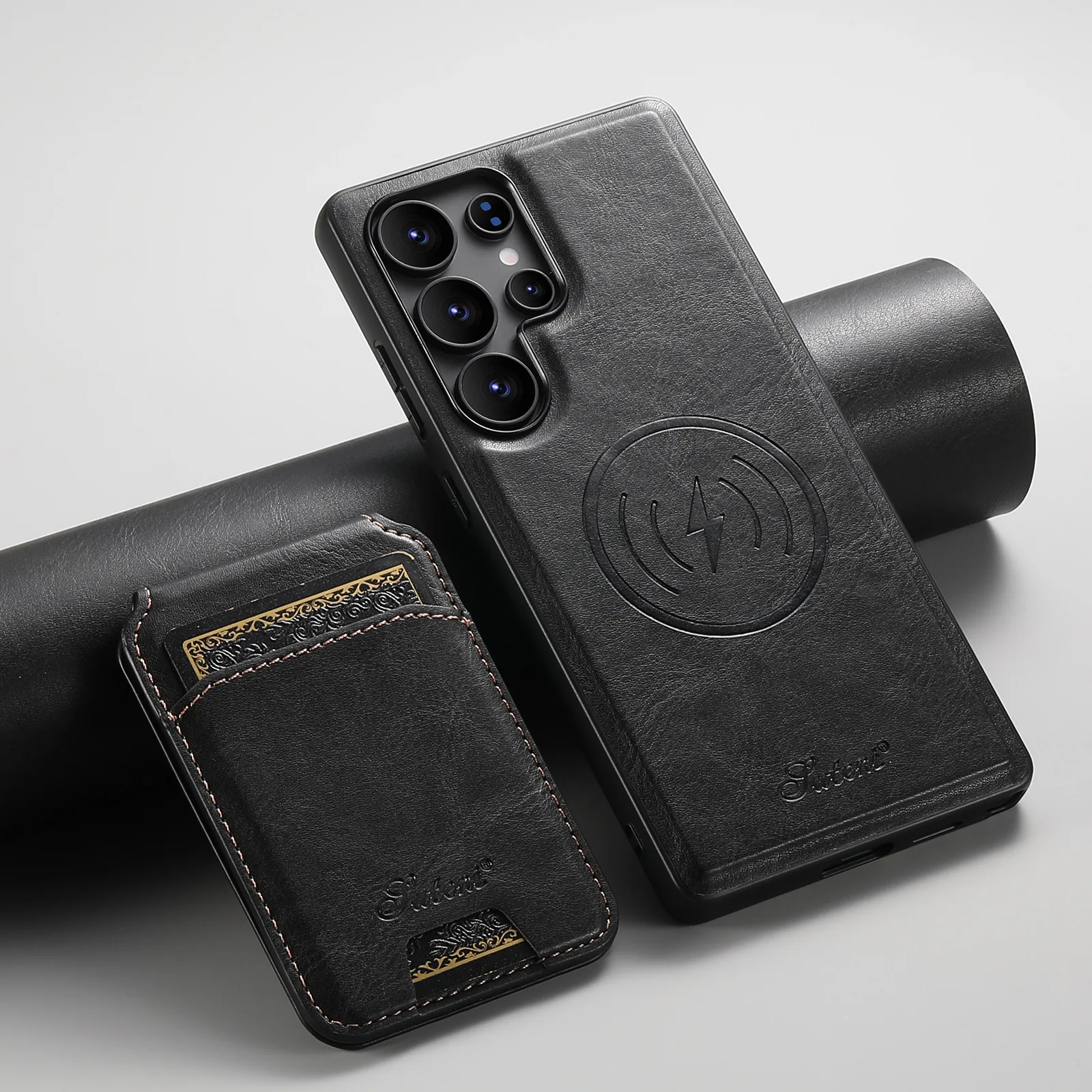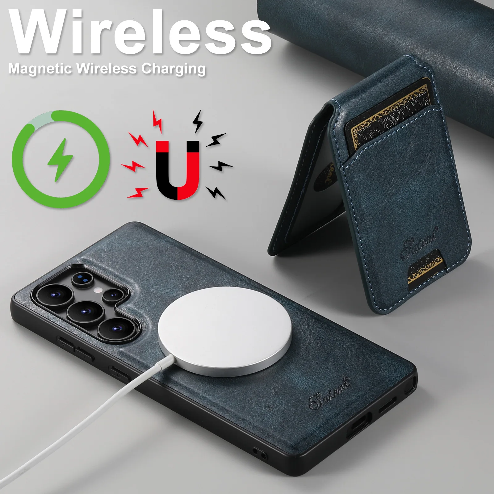 Funda con soporte magnético desmontable para Samsung Galaxy S25 S24 S23 S22 Ultra Plus, funda tipo billetera de cuero, Fundas con carga inalámbrica