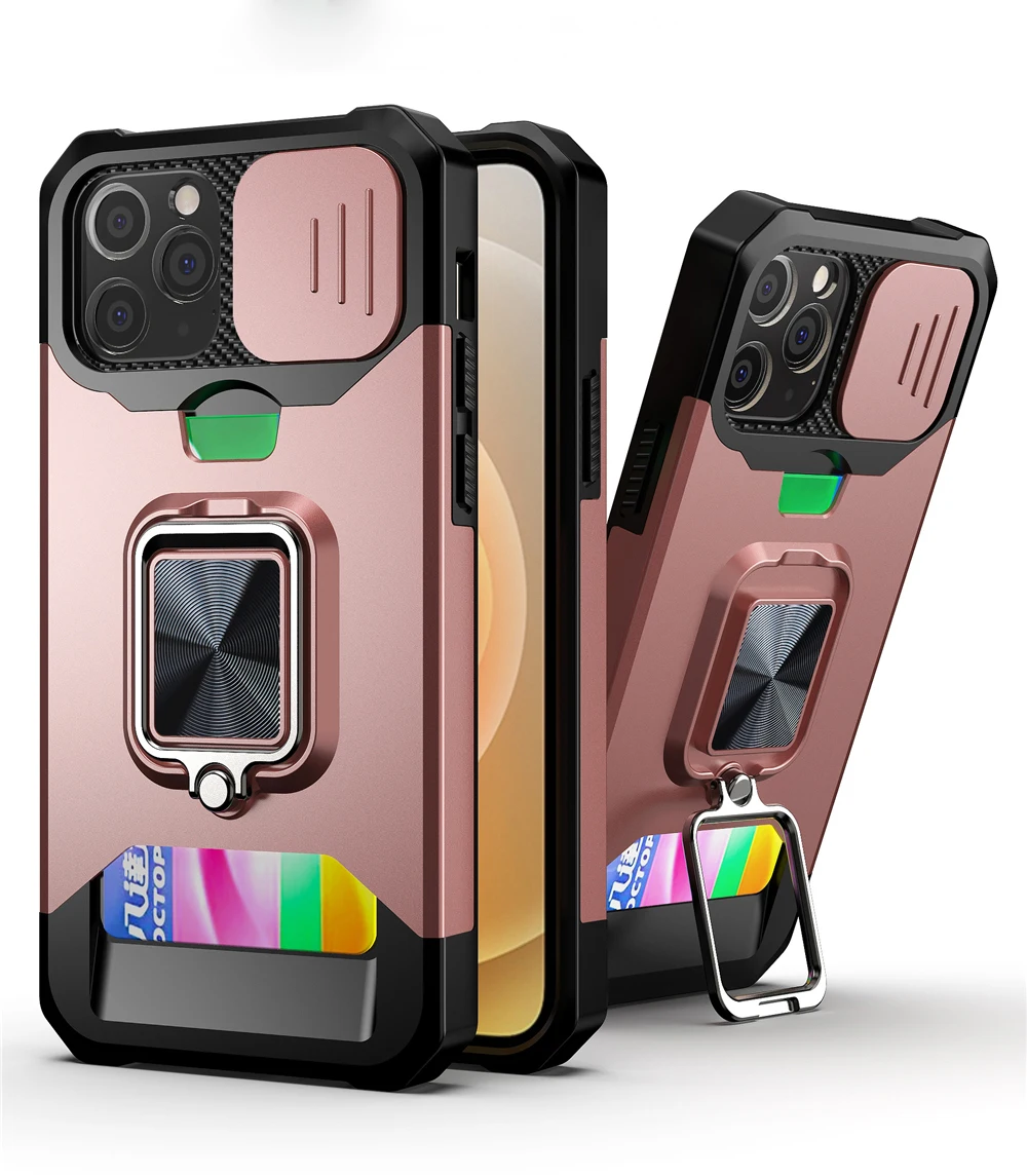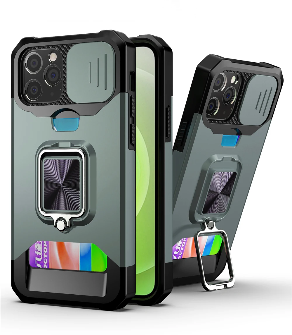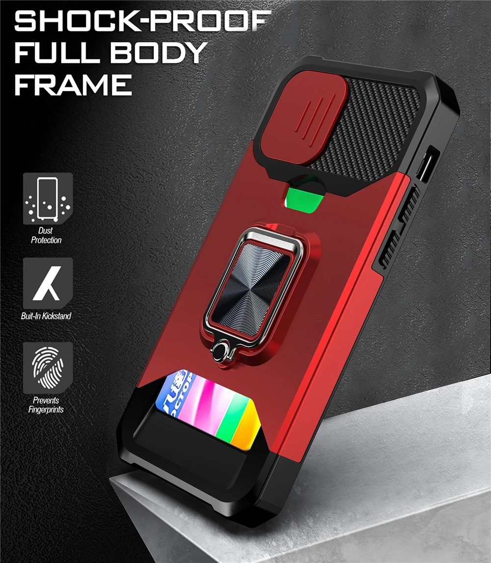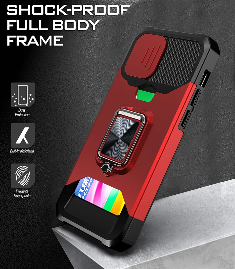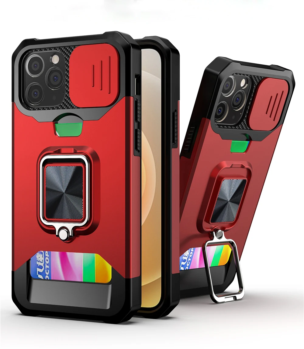 Comprar Funda con soporte magnético para móvil, carcasa con ranura para tarjeta a prueba de golpes para iPhone 14, 11, 13, 12 Pro Max, XR, X, XS Max, 7, 8 Plus, SE20