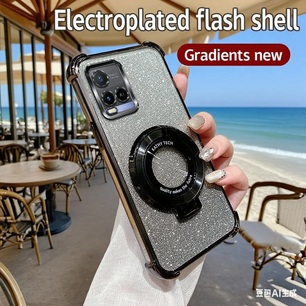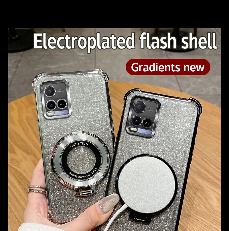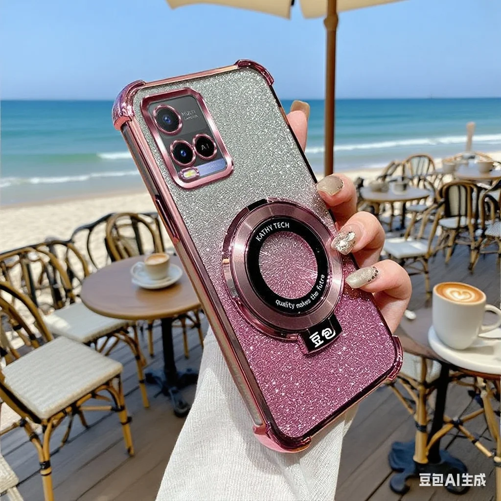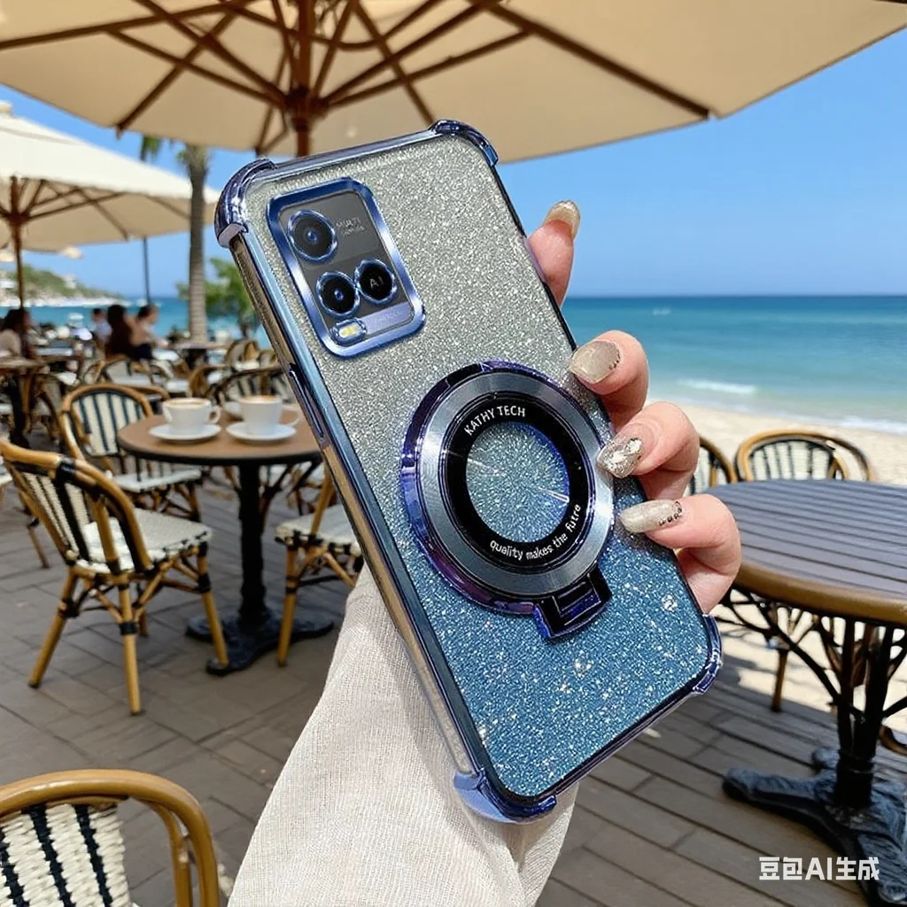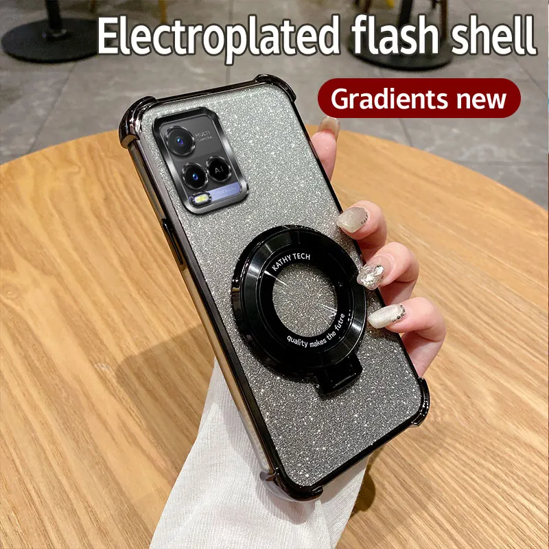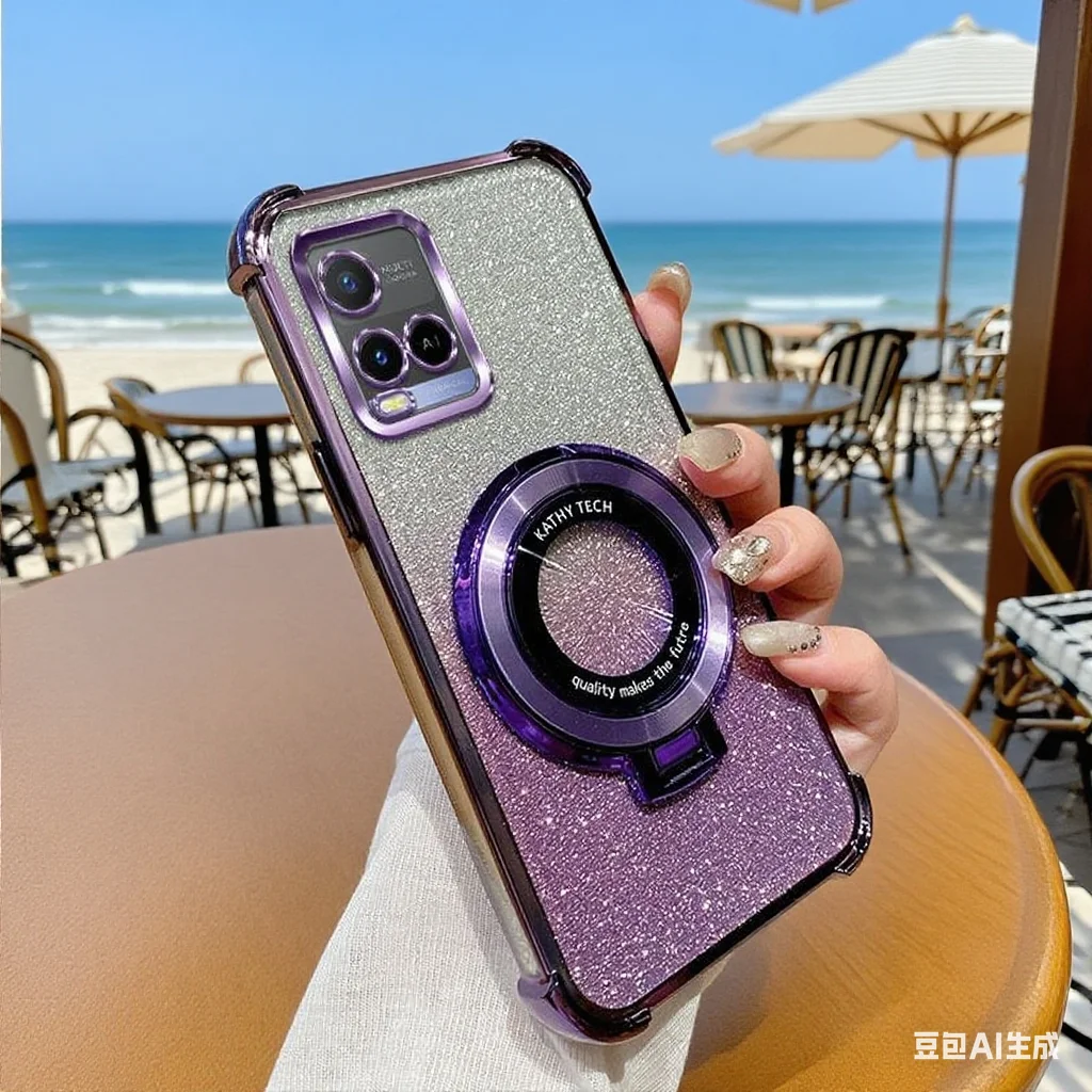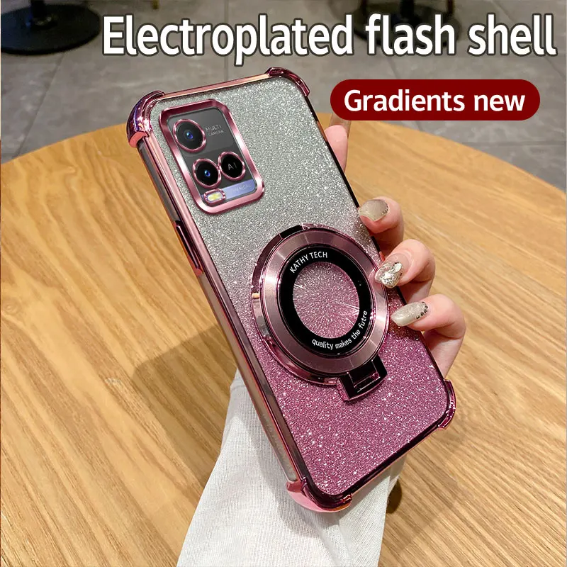 Comprar Funda con soporte magnético de purpurina de lujo para vivo Y21 2021 Y21A Y21S Y21T Y33T Y33S 4G T1X 4G cubierta de silicona a prueba de golpes