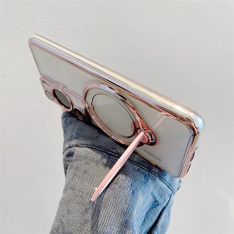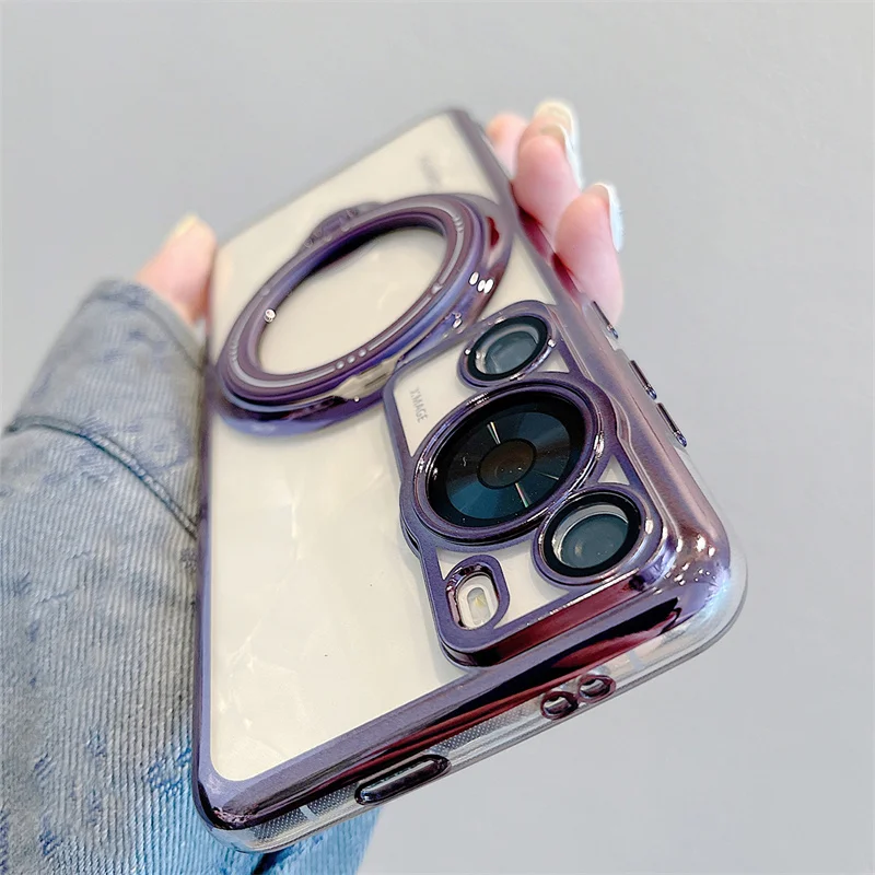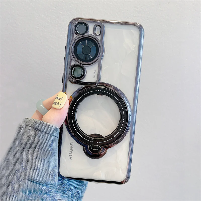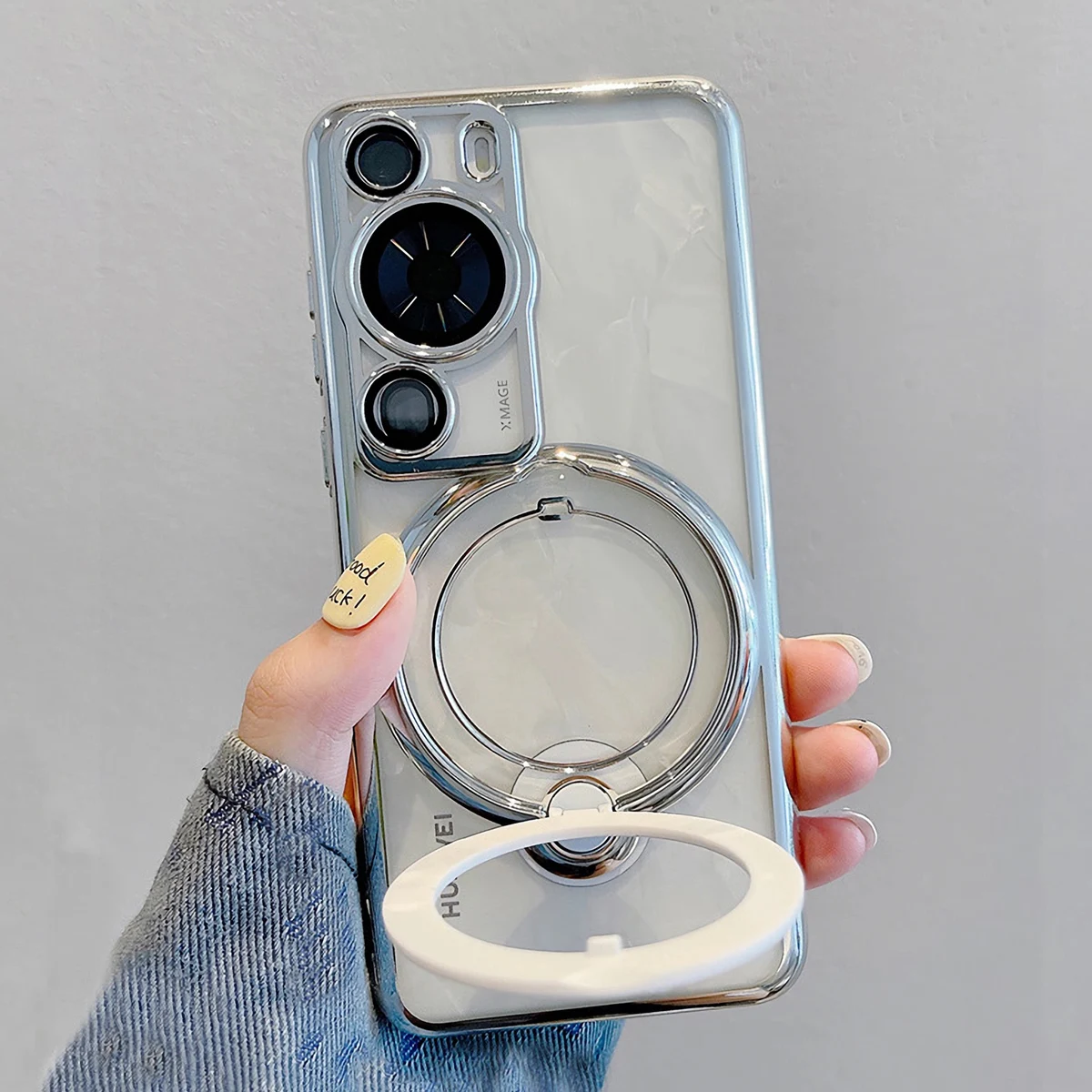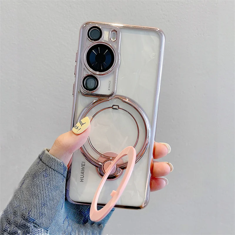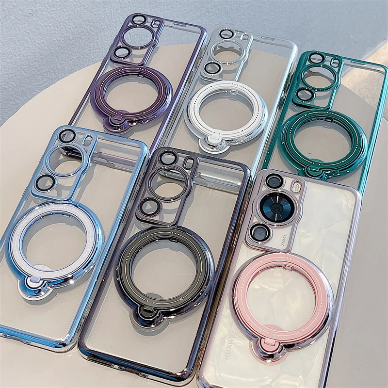 Comprar Funda con soporte magnético Rotable para Huawei P30, P40, P50, P60 Pro, Mate 60 Pro, 50, 40, 30, Protector de cámara transparente de lujo, cubierta suave