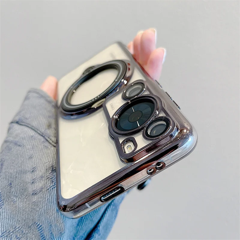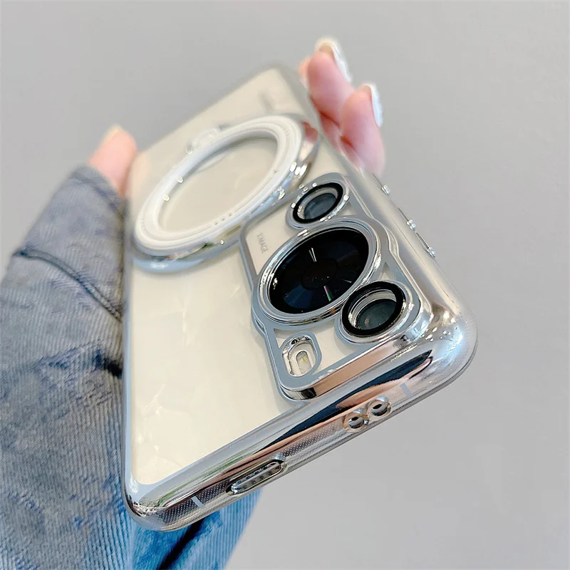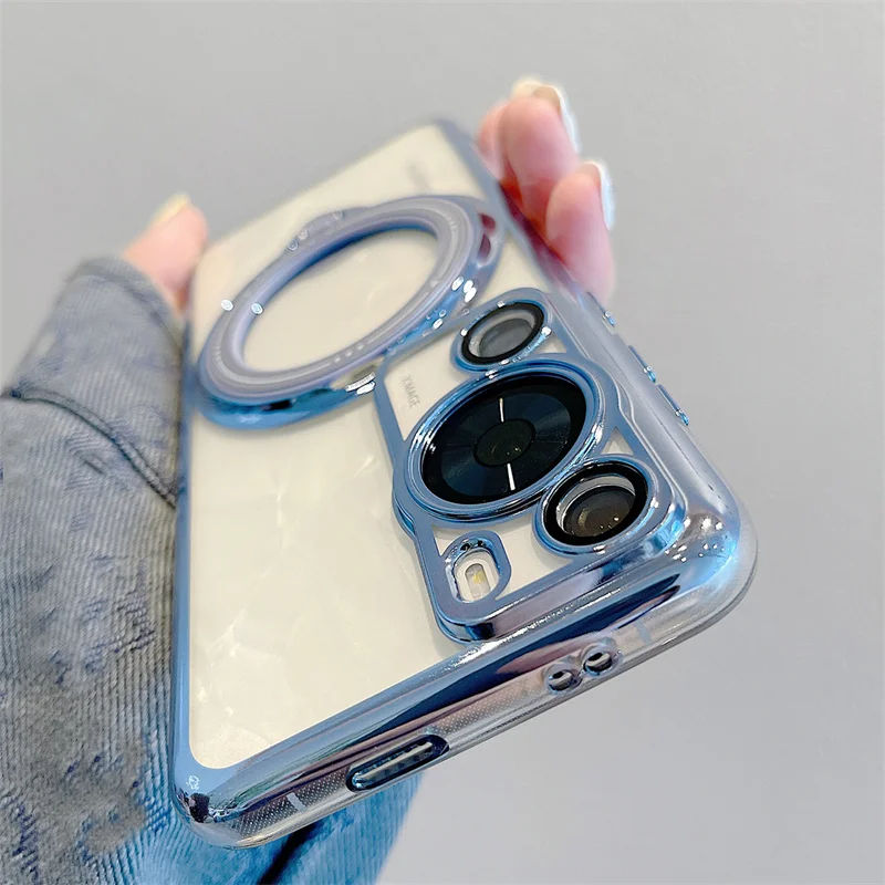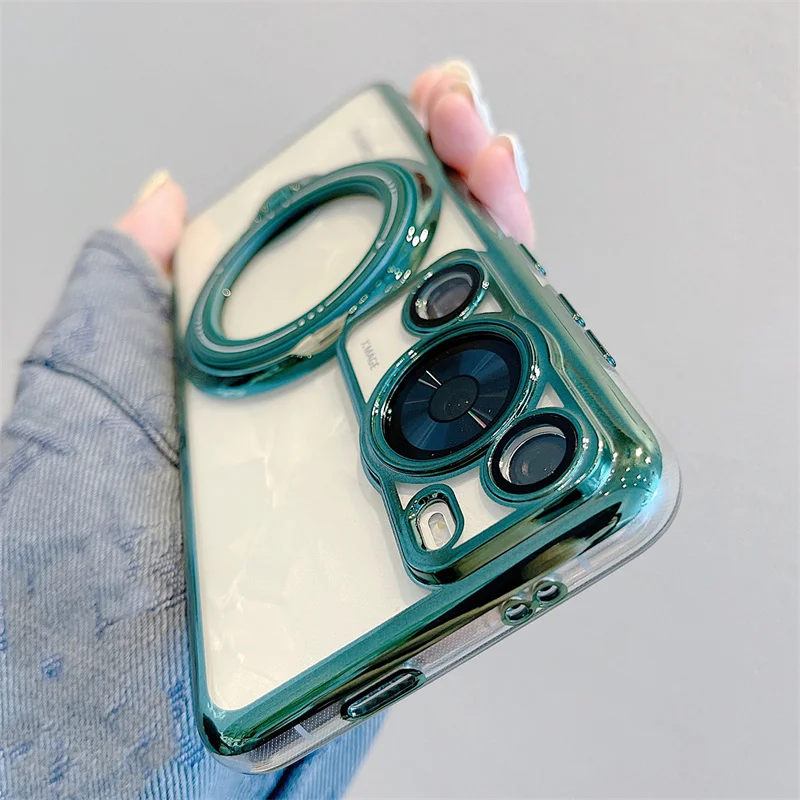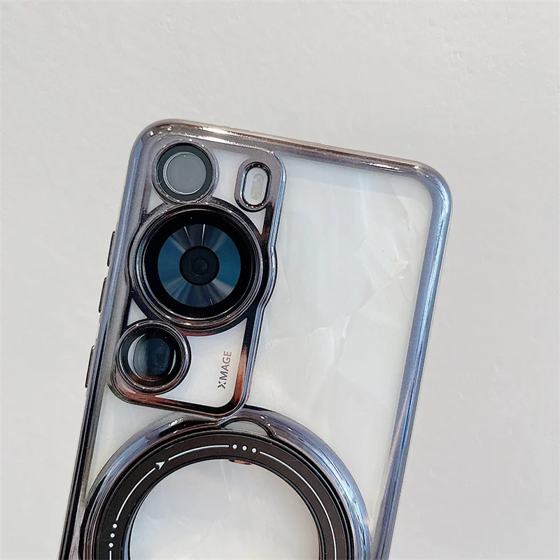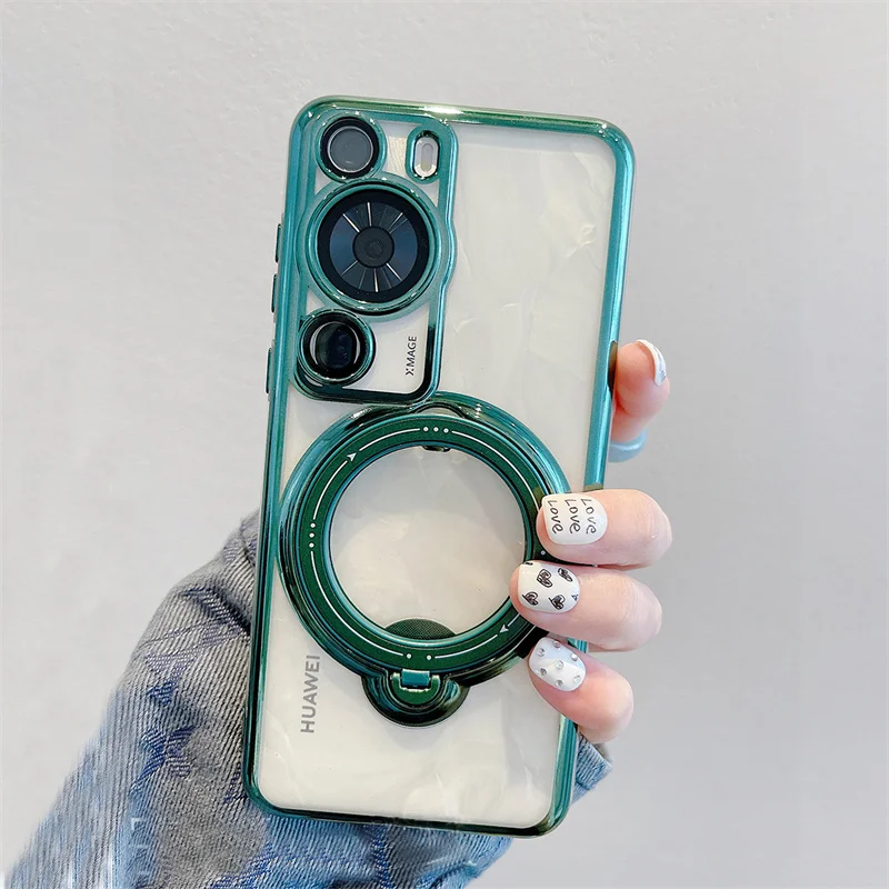 Comprar Funda con soporte magnético Rotable para Huawei P30, P40, P50, P60 Pro, Mate 60 Pro, 50, 40, 30, Protector de cámara transparente de lujo, cubierta suave