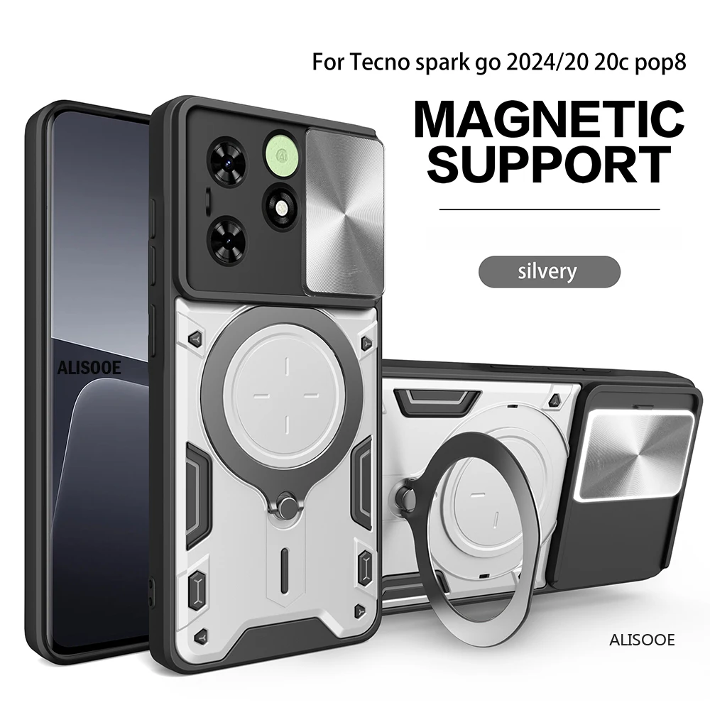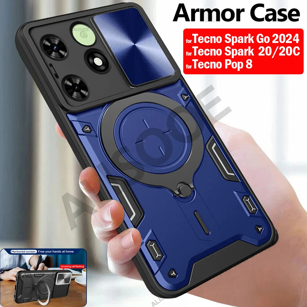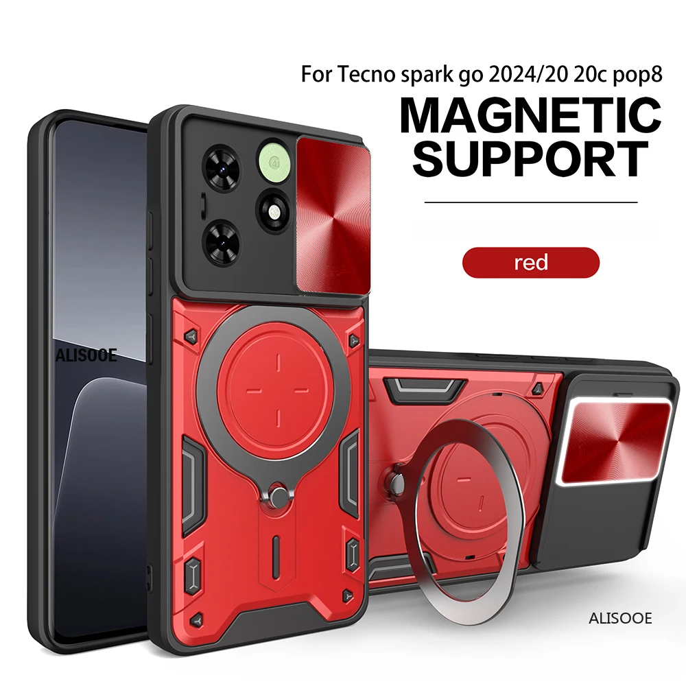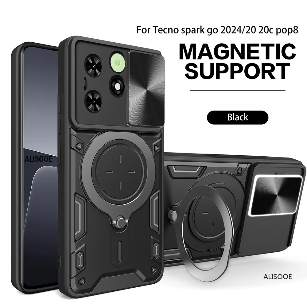 Comprar Funda con soporte magnético para Tecno Spark GO 2024, 20, 20C, Pop 8, protección de lente de cámara deslizante