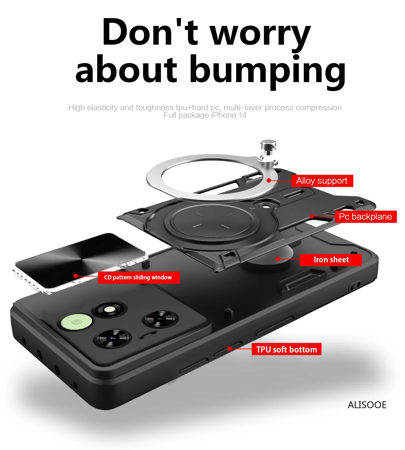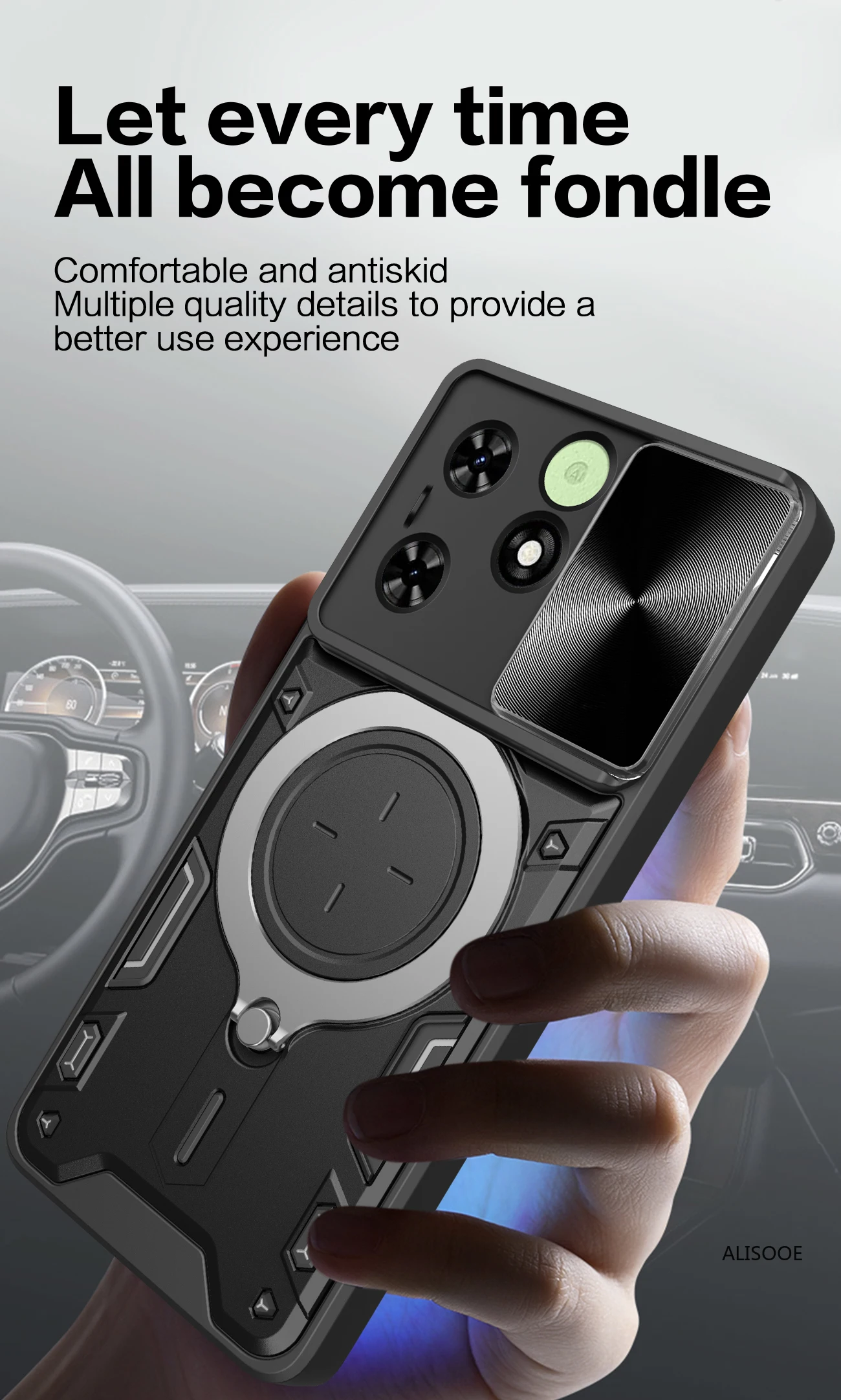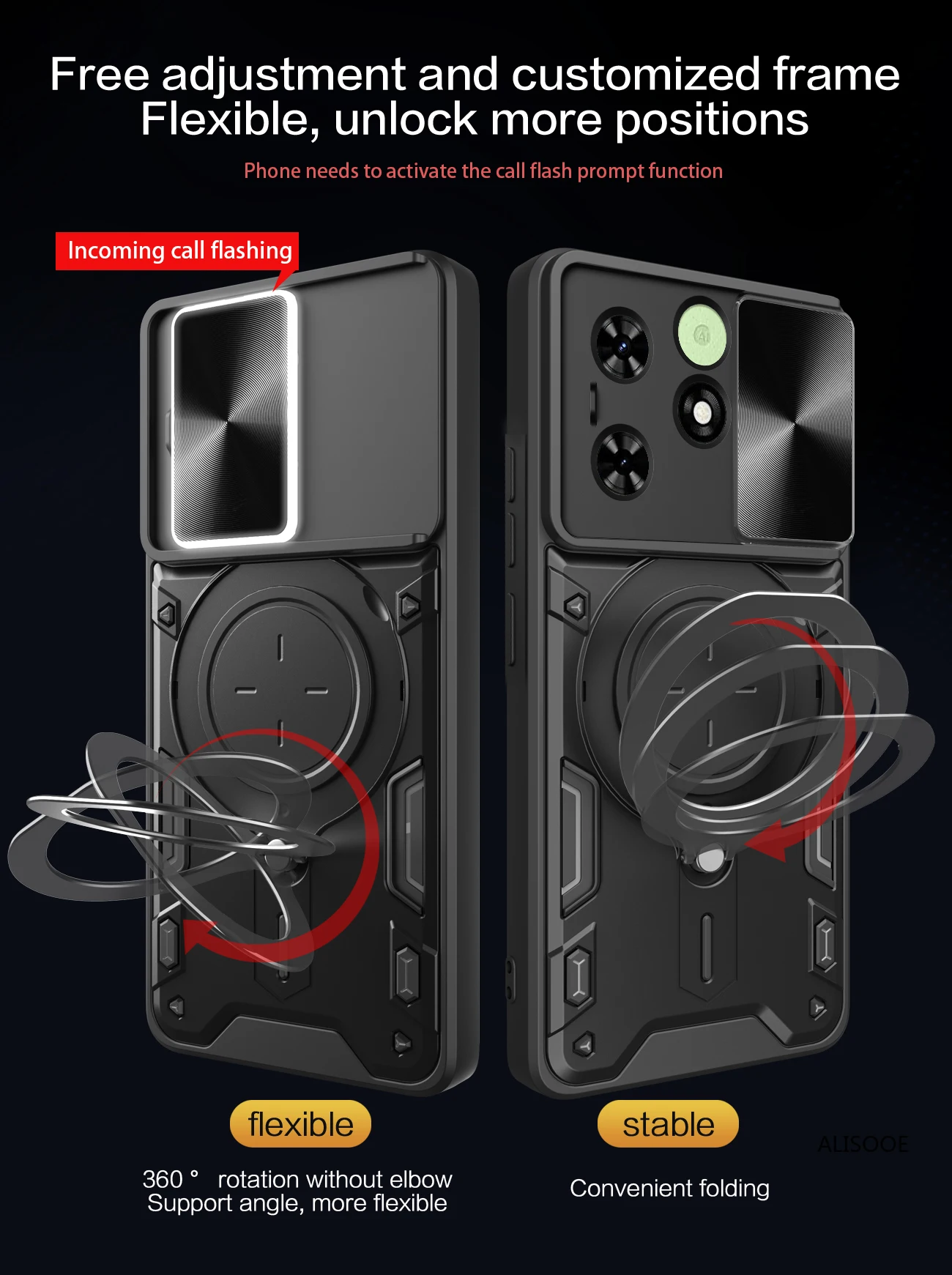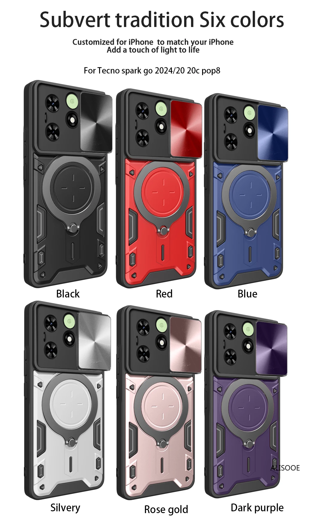 Comprar Funda con soporte magnético para Tecno Spark GO 2024, 20, 20C, Pop 8, protección de lente de cámara deslizante