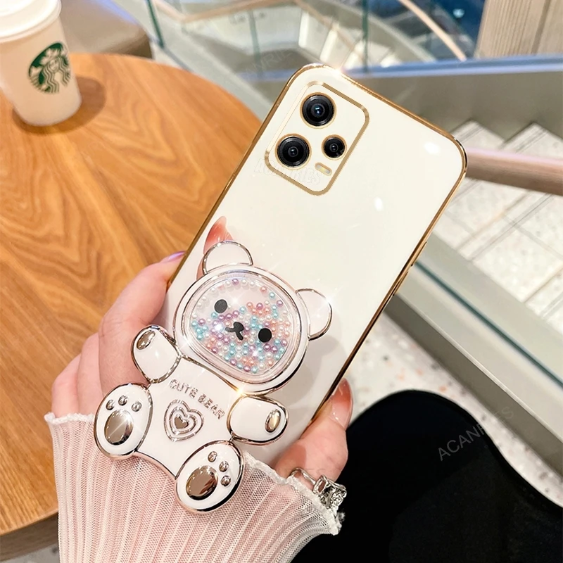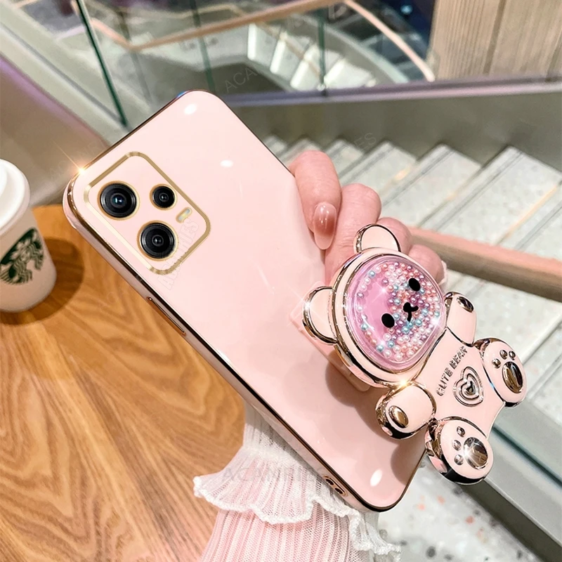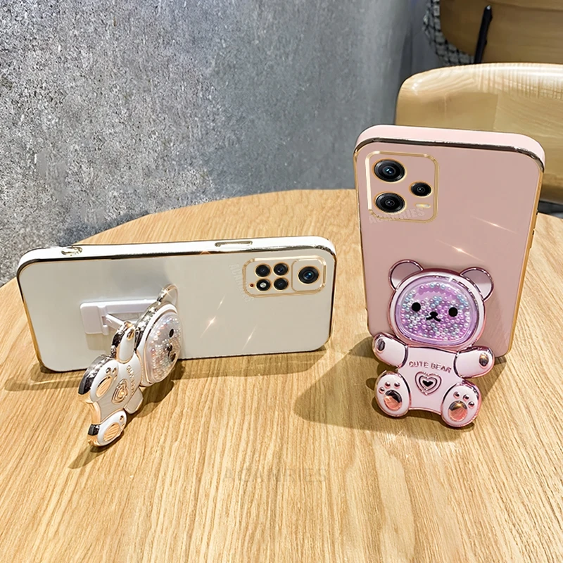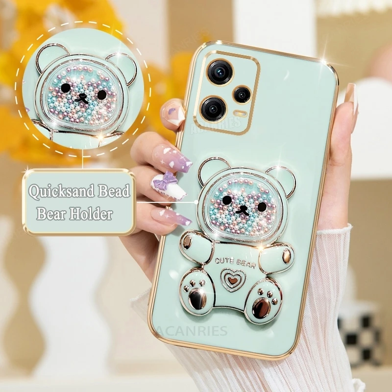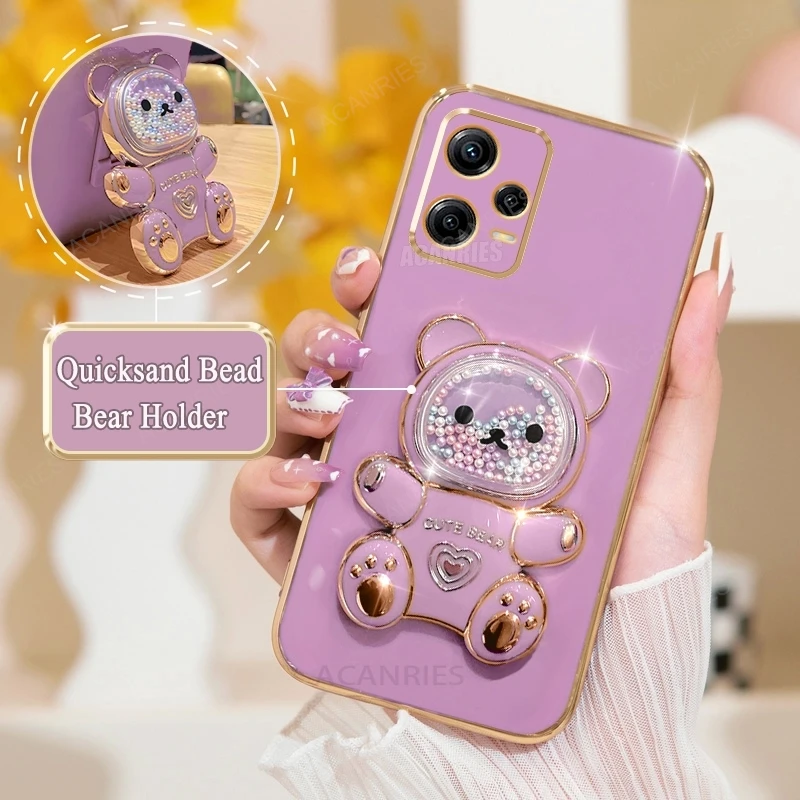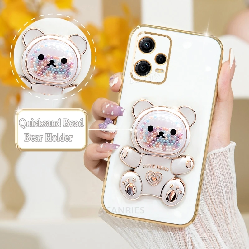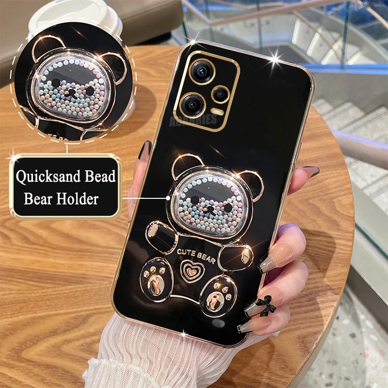 Note12 Quicksand Bear Holder Plating Case On para Xiaomi Redmi Note 12 Pro Plus 4G 5g 12pro 12S 11 11s Funda de silicona con soporte 12c