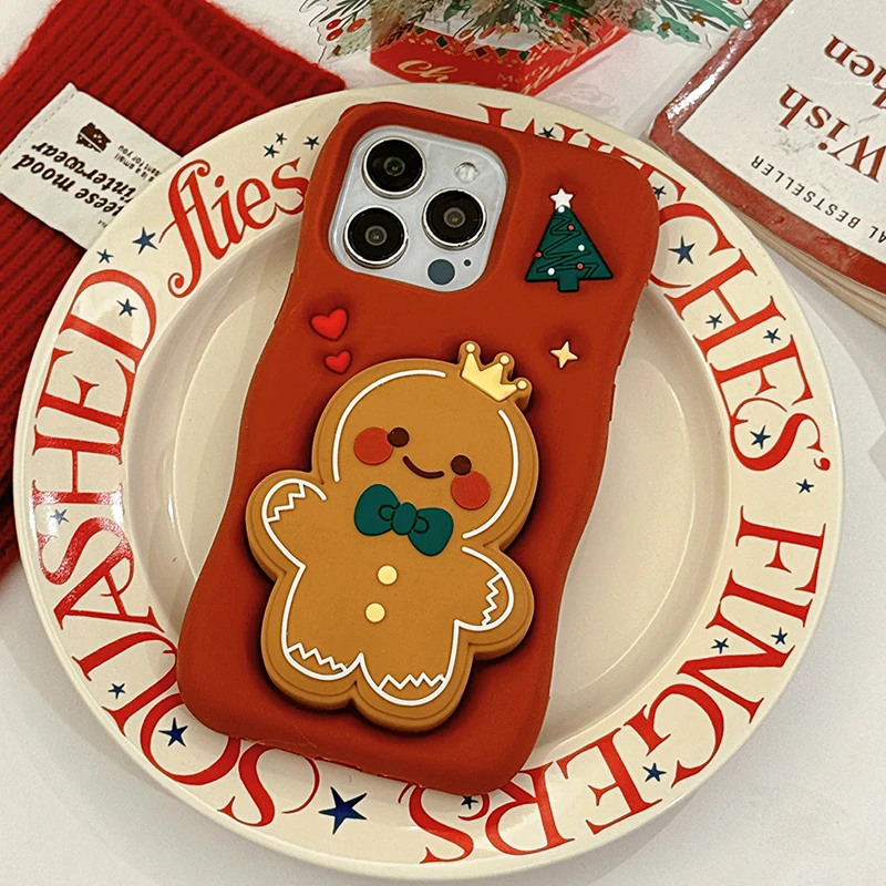 Funda con soporte plegable para hombre de jengibre de Navidad roja para iPhone 11 12 13 15 16 17 Pro Max, funda trasera con soporte 3D de silicona suave