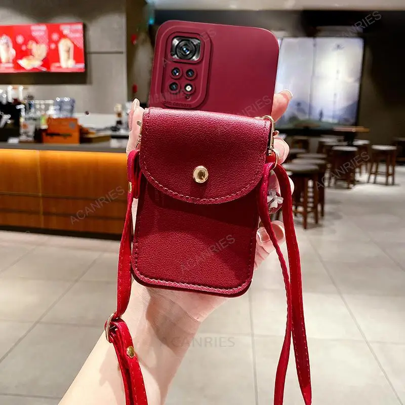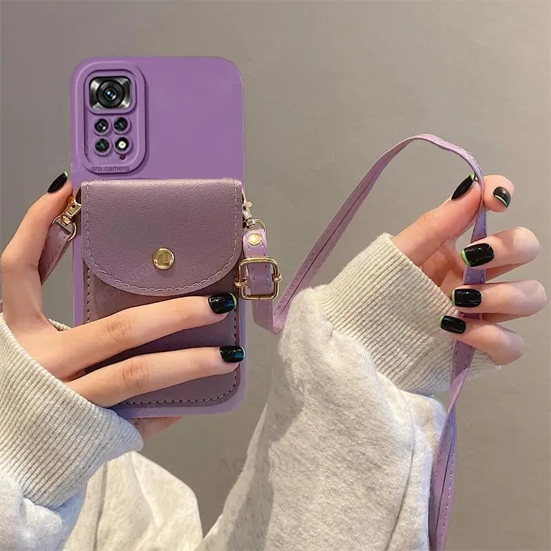 Funda con soporte para tarjetas para Xiaomi Redmi Note 11 Pro 4g 5g 11s 11pro Plus 10 10pro funda de silicona con cordón cruzado Note11s
