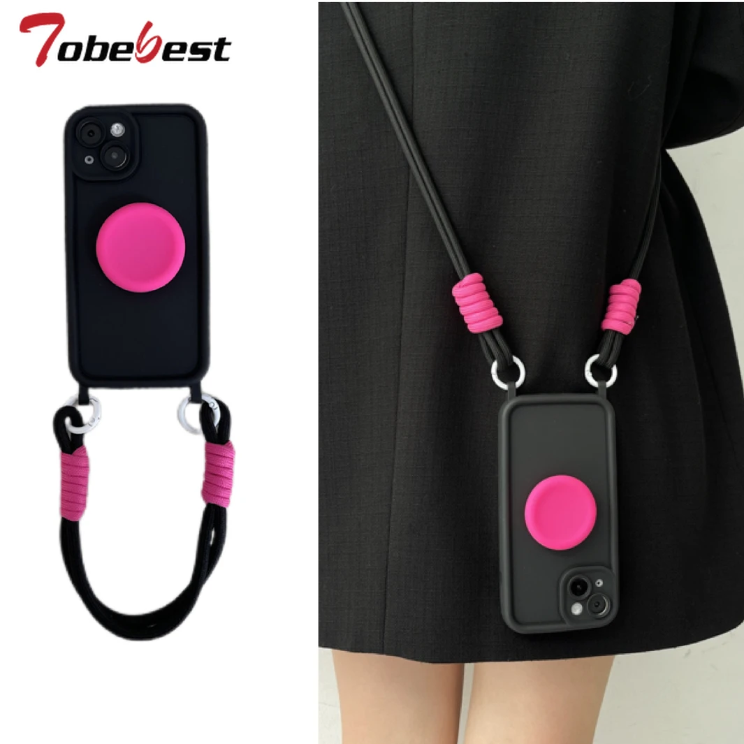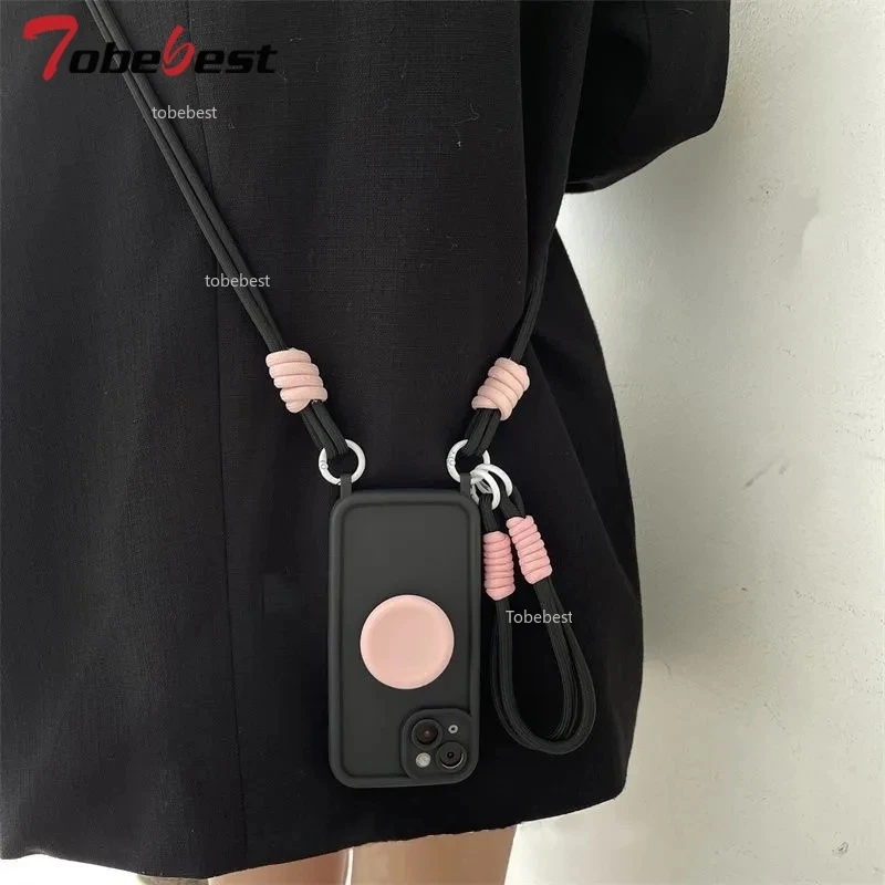 Comprar Funda con soporte de teléfono de Color caramelo para Samsung Galaxy M55 M54 M51 M35 M34 M31 M23 5G, cordón cruzado, collar, funda con correa para la muñeca