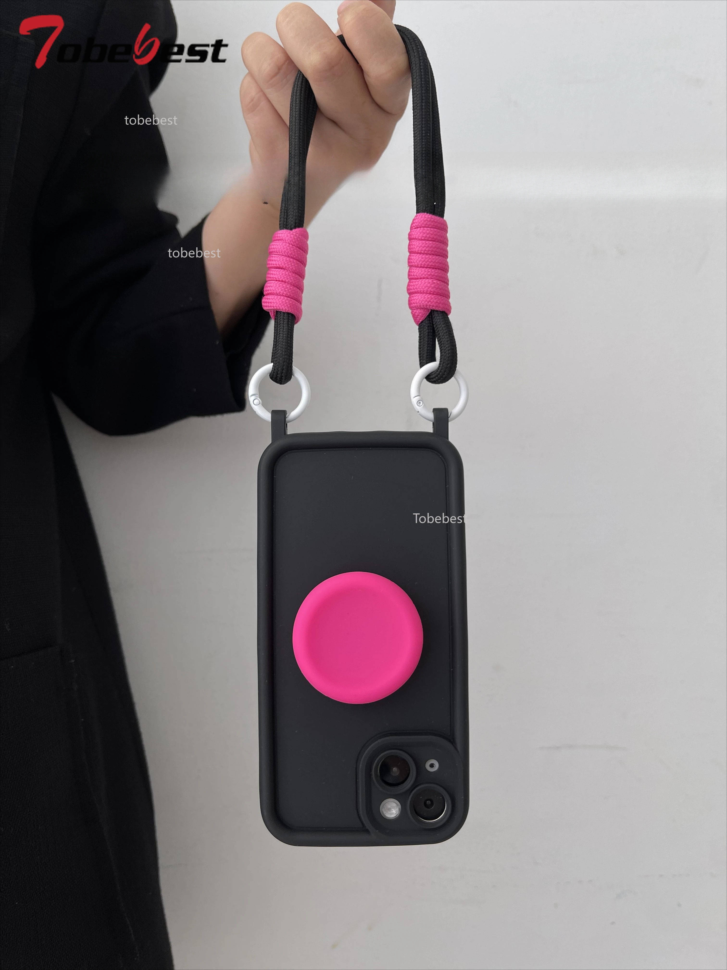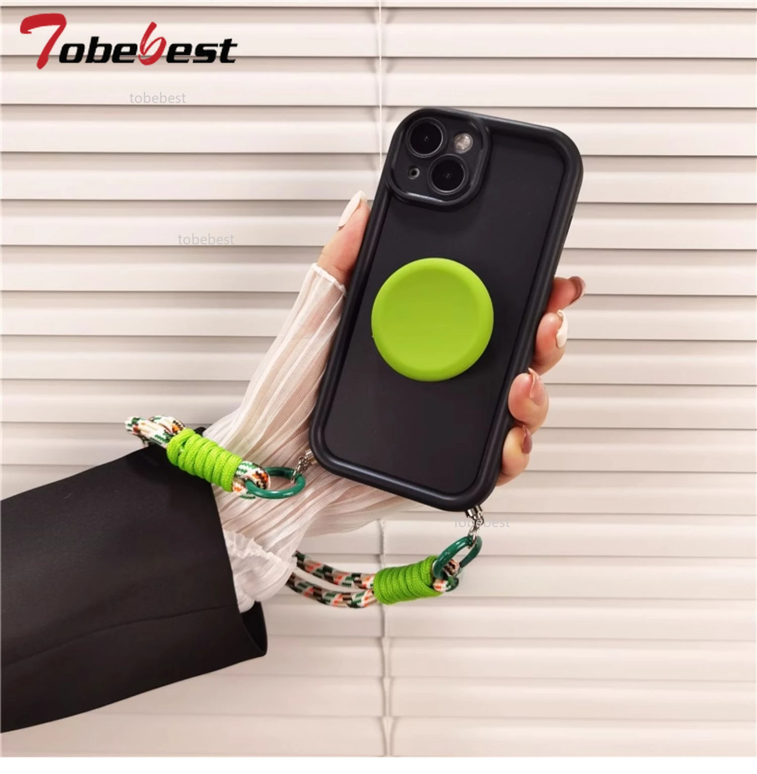 Comprar Funda con soporte de teléfono de Color caramelo para Samsung Galaxy M55 M54 M51 M35 M34 M31 M23 5G, cordón cruzado, collar, funda con correa para la muñeca