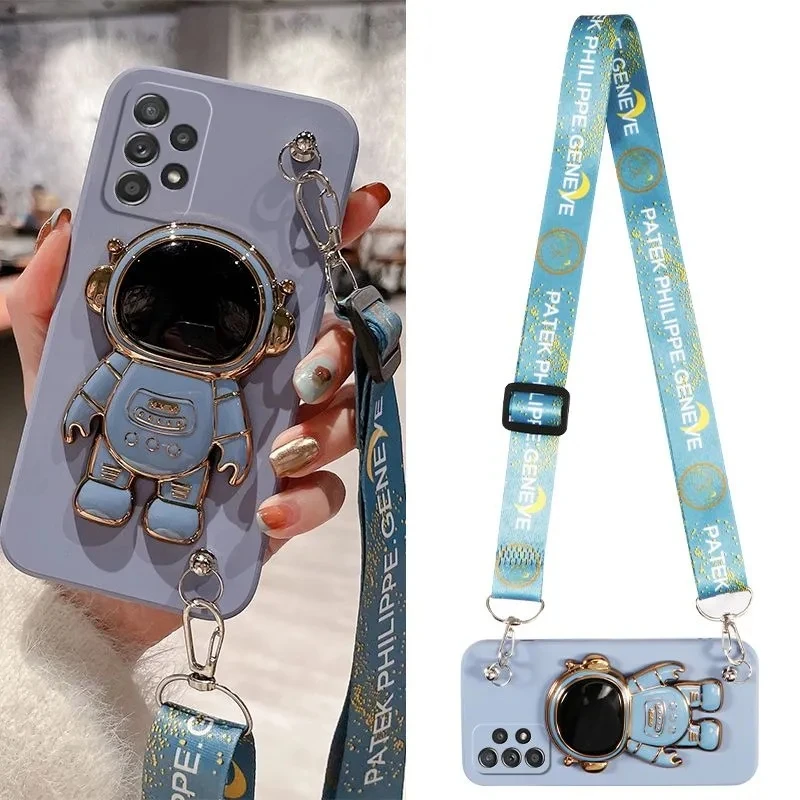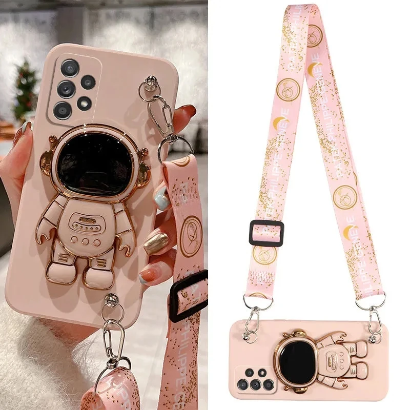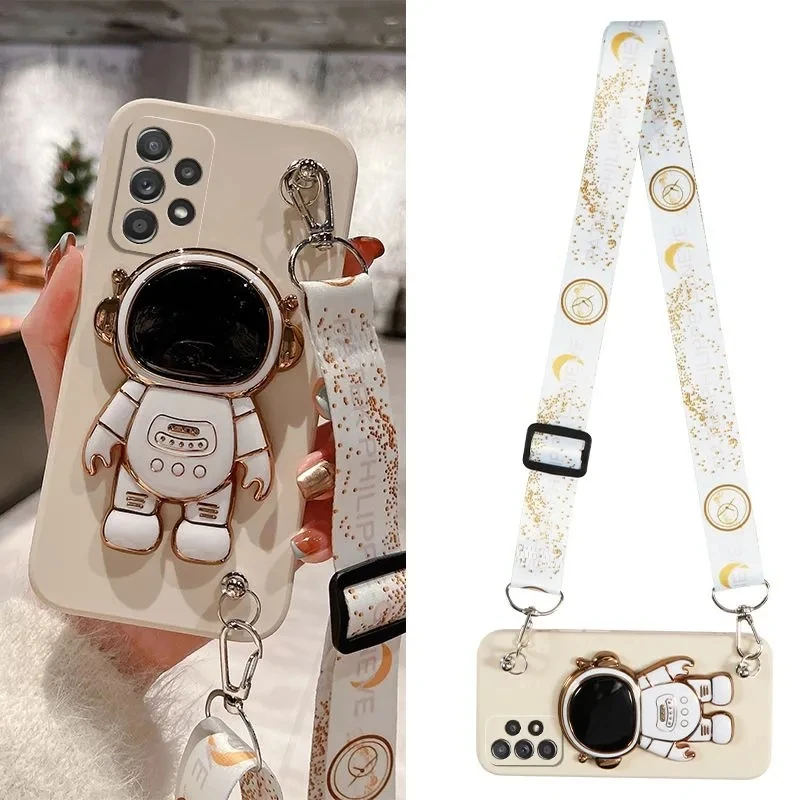 Crossbody Lanyard Astronaut Bracket Phone Holder Case For Samsung Galaxy A13 A23 A33 A53 A73 A12 A22 A32 A42 A52 A72 A82 4G 5G