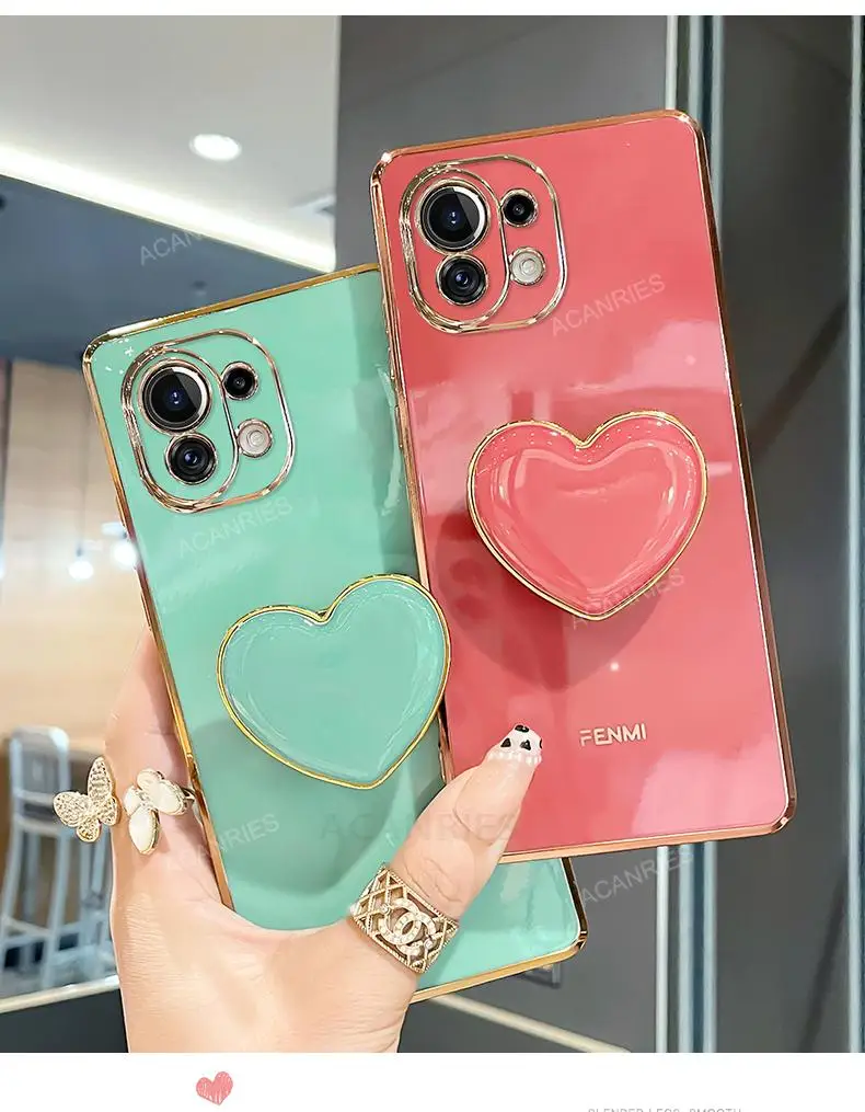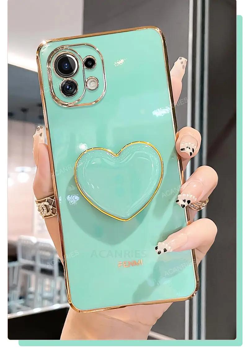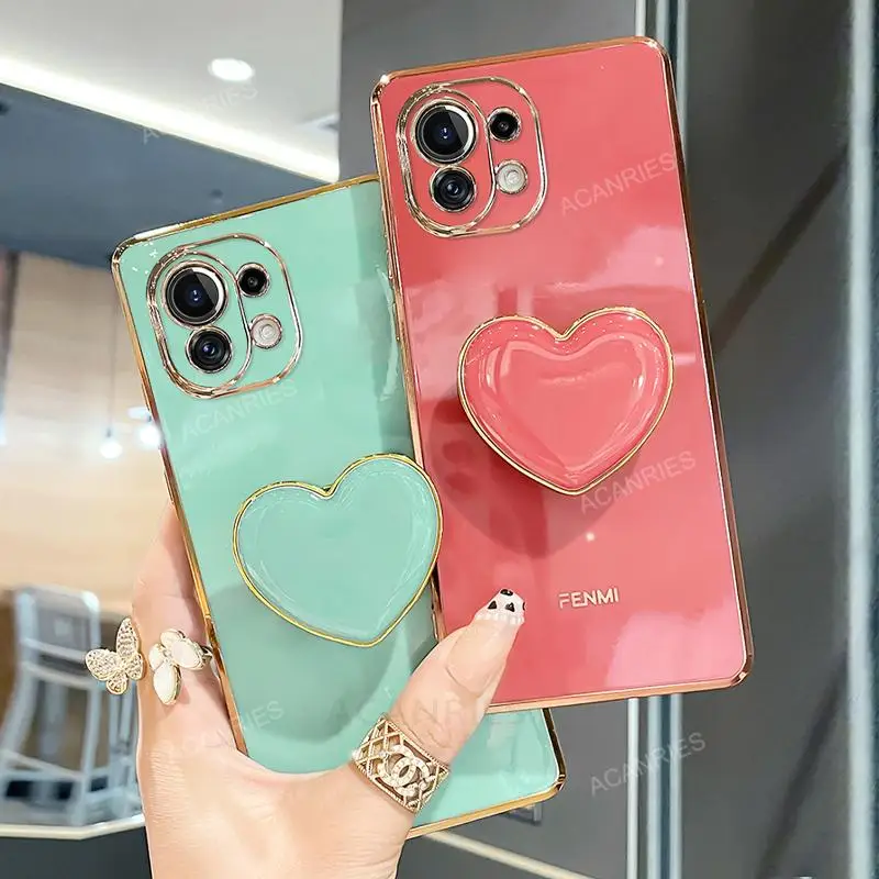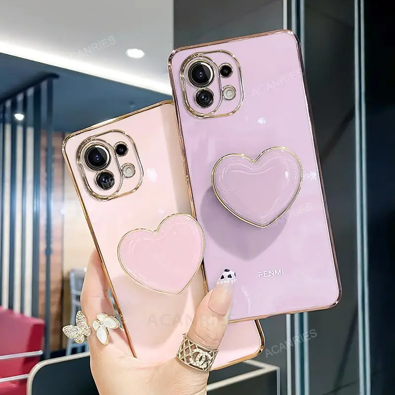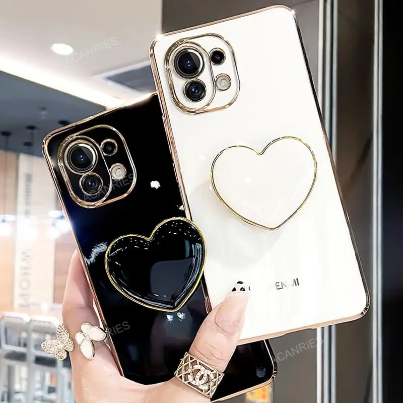 Funda con soporte para teléfono con corazón de amor chapado para Xiaomi Mi 11 Lite 5g Ne Mi11 i 11i 11lite Pro Ultra Girl, funda de silicona con soporte de lujo