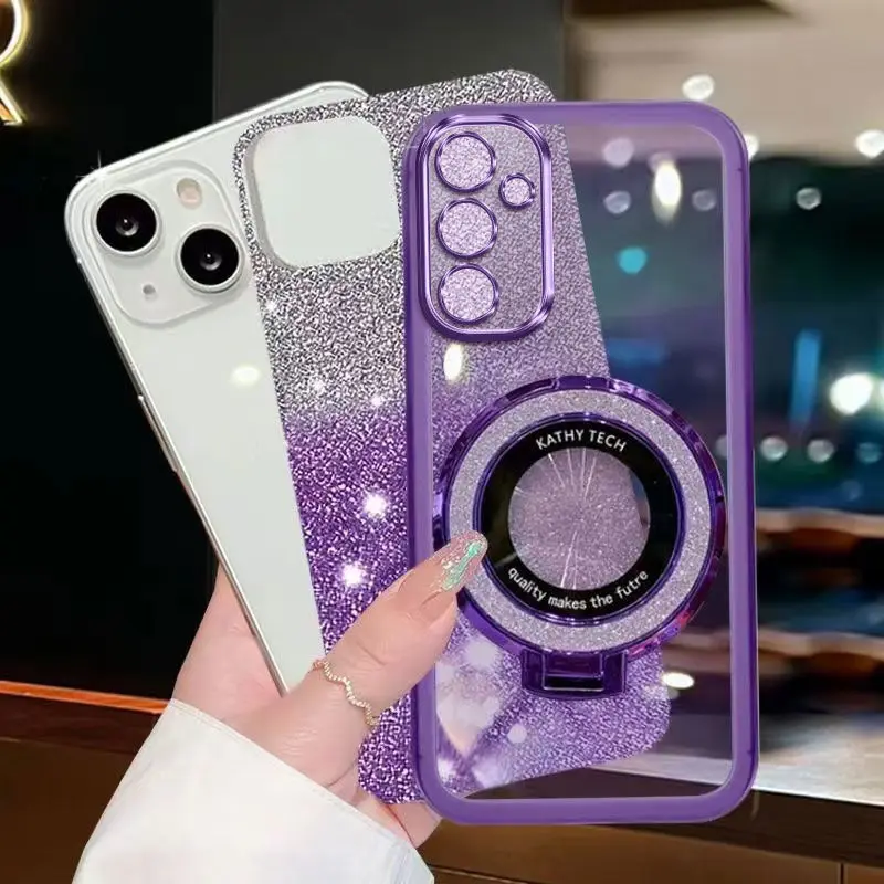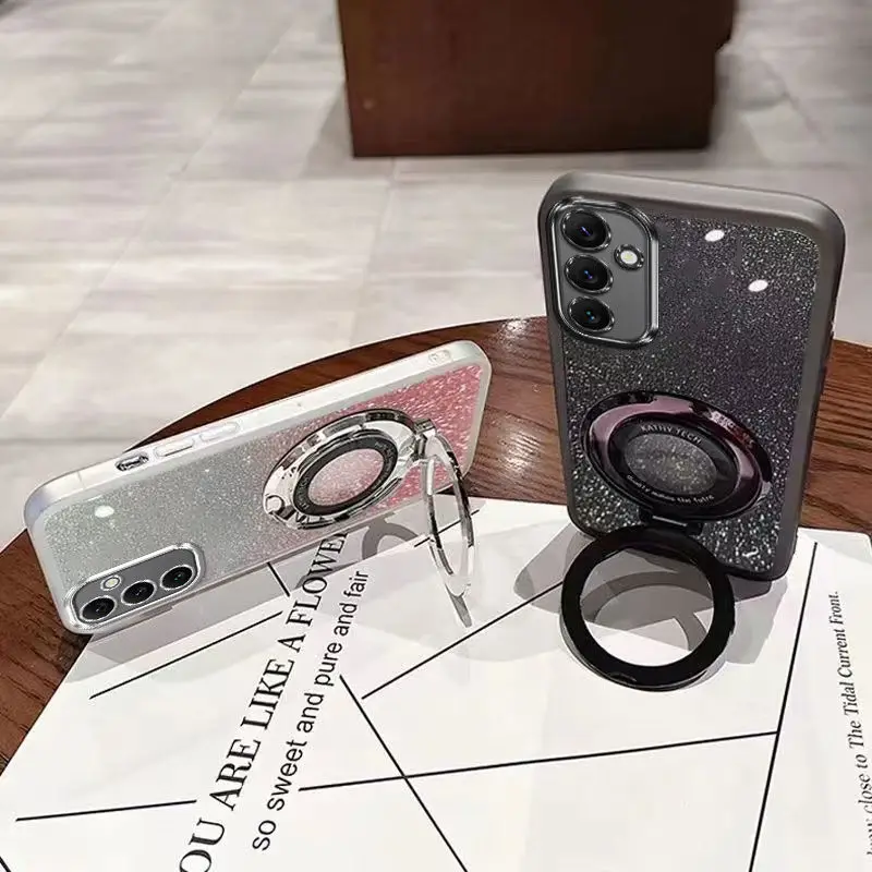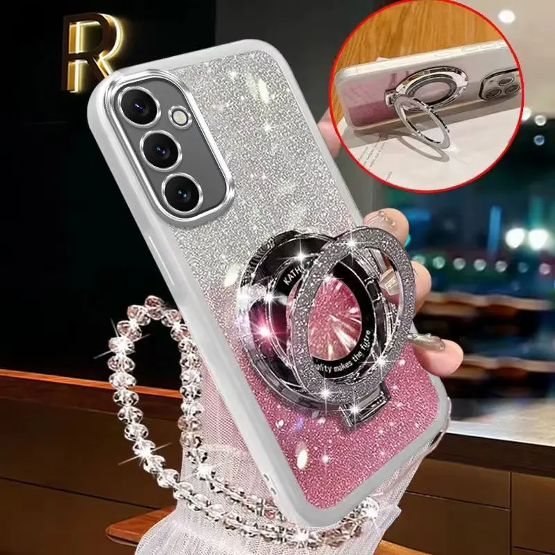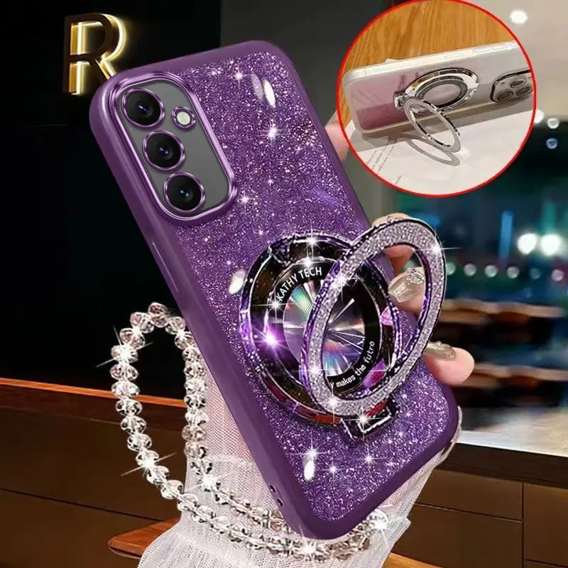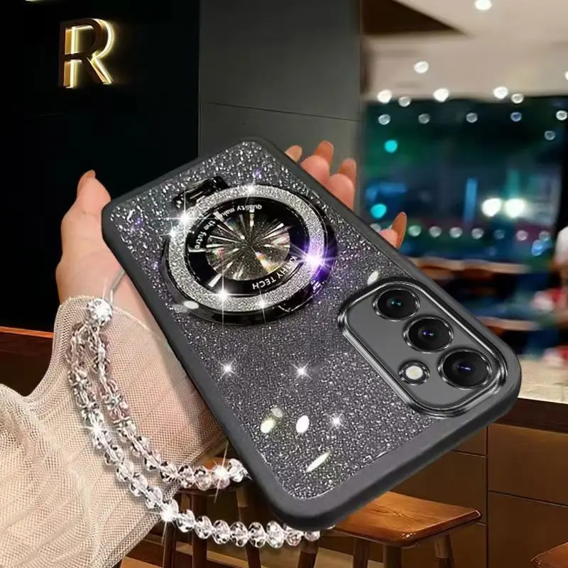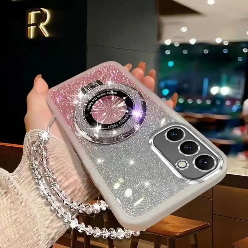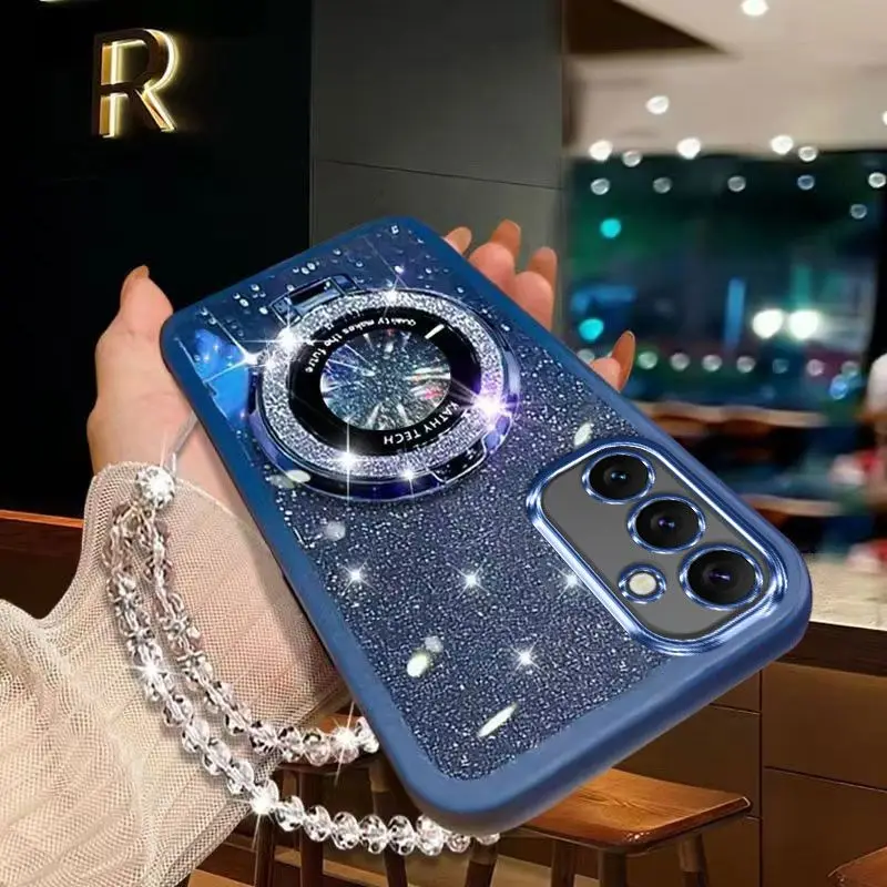 Comprar Funda con soporte para teléfono Magsafe con pulsera de cristal brillante para Samsung Galaxy A17 A07 5G, funda de silicona suave
