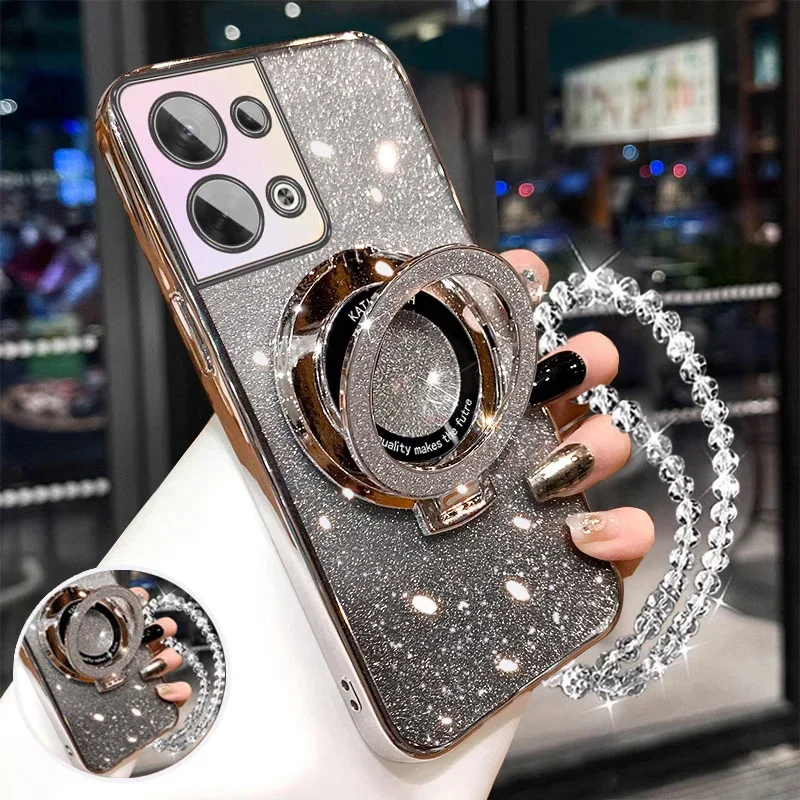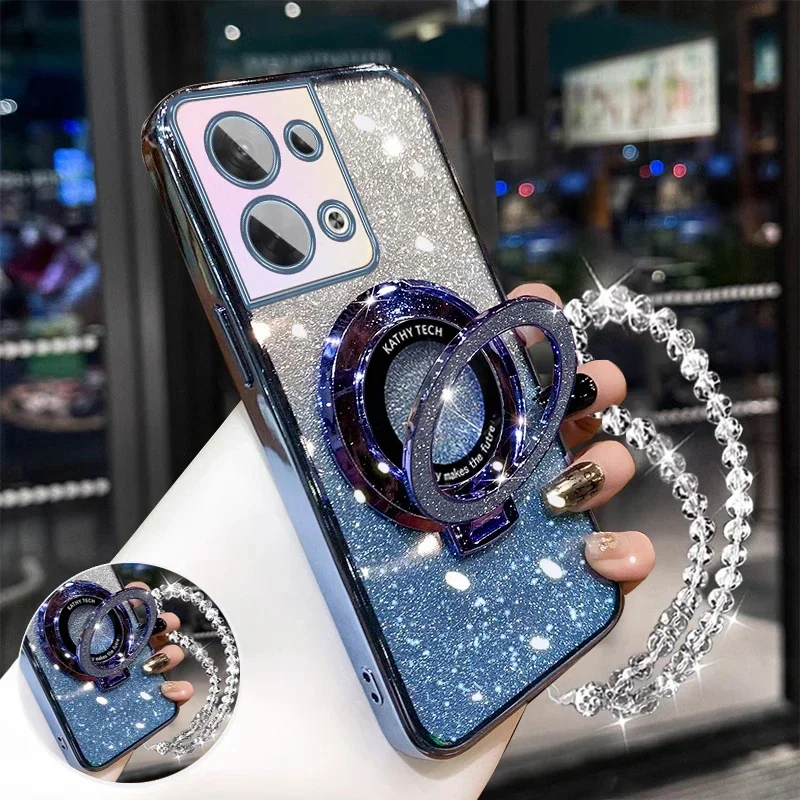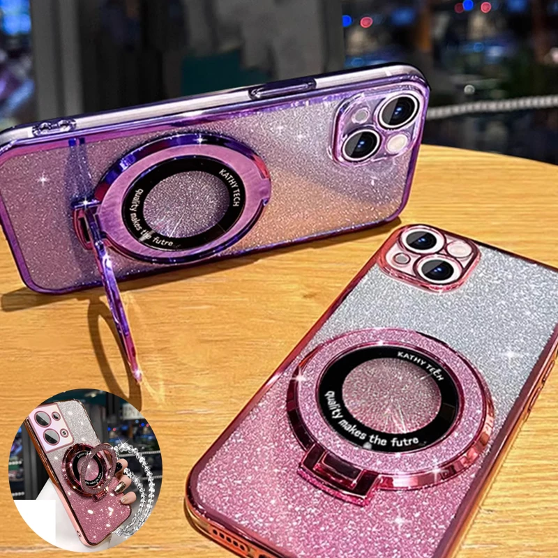 Para magsafeSoporte + pulsera de cristal +Caja chapada con purpurina