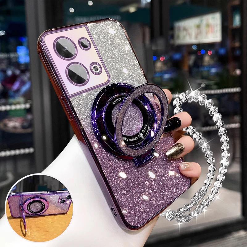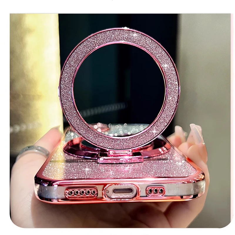Para magsafeSoporte + pulsera de cristal +Caja chapada con purpurina