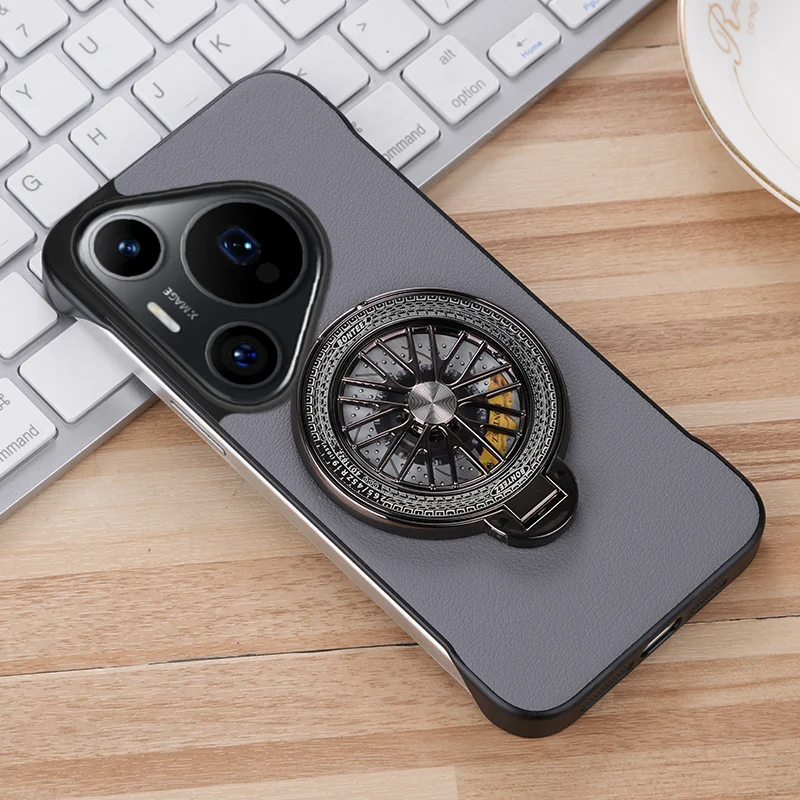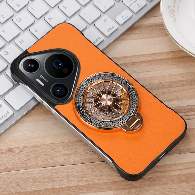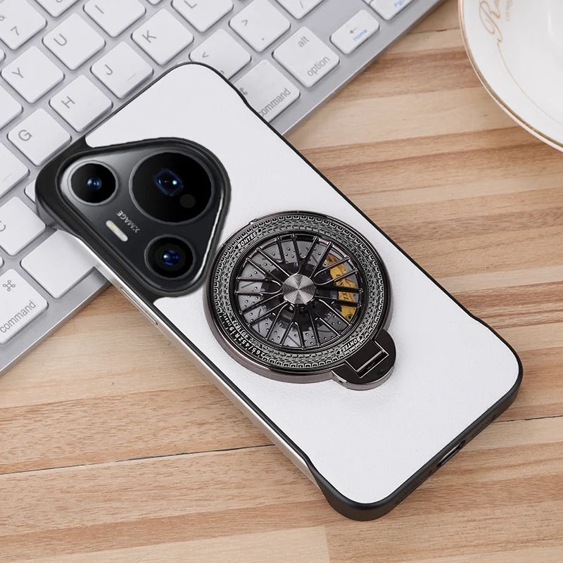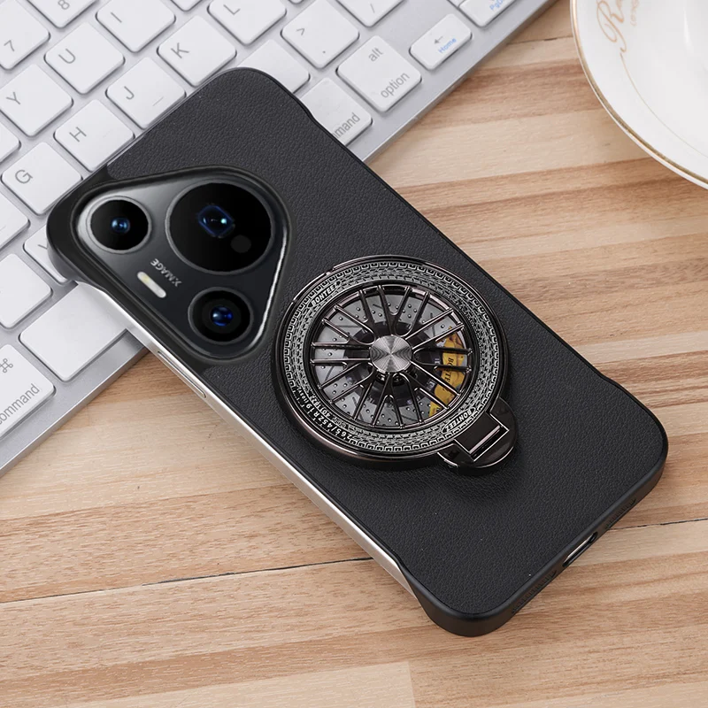 Funda con soporte para tope para aliviar el estrés, funda sin marco con patrón de cuero para Huawei Puro 70 P60 P50 P40 Nova 13 Pro