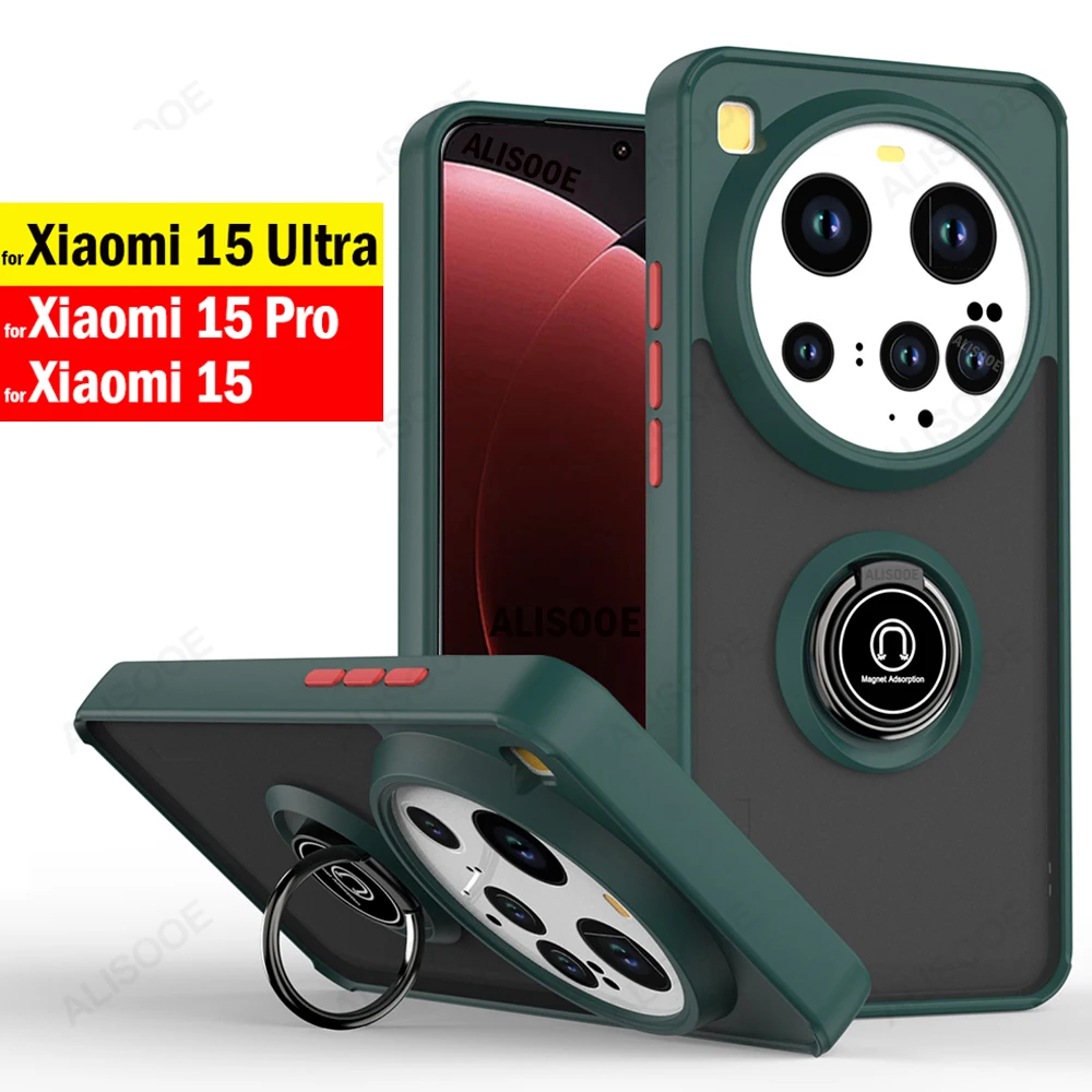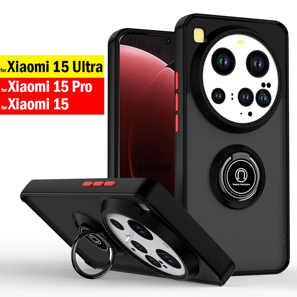 Comprar Funda con soporte para Xiaomi 15 Ultra 15 Pro, Funda protectora completa con soporte de anillo blindado, Funda translúcida para PC para Xiaomi 15