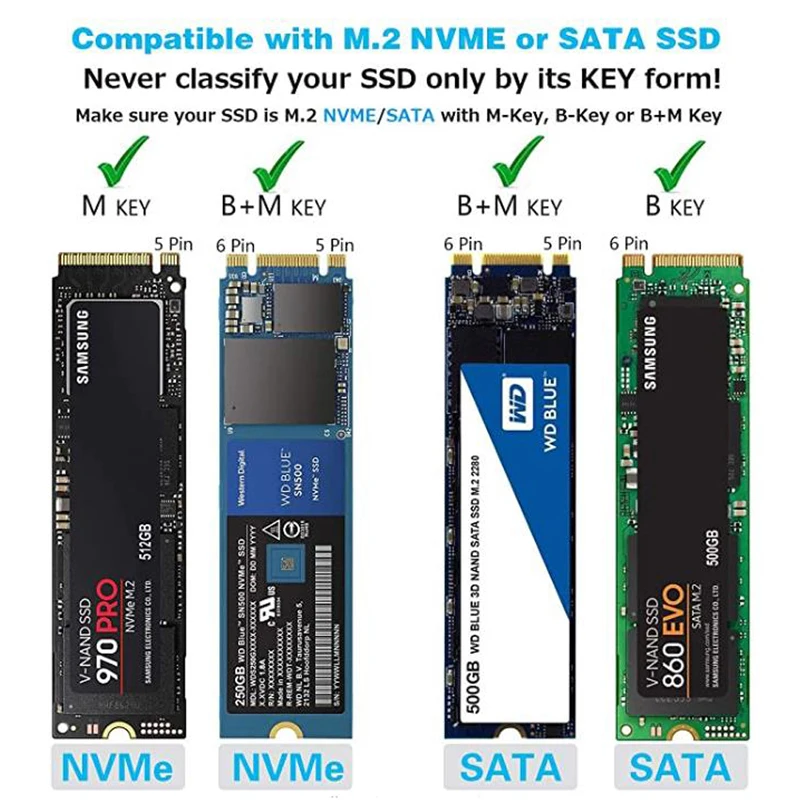 Comprar Funda de SSD M2, carcasa NVME, adaptador de SSD M.2 a USB tipo C 3,1 para protocolo Dual NVME, PCIE, NGFF, SATA, clave M/B, caja de disco SSD