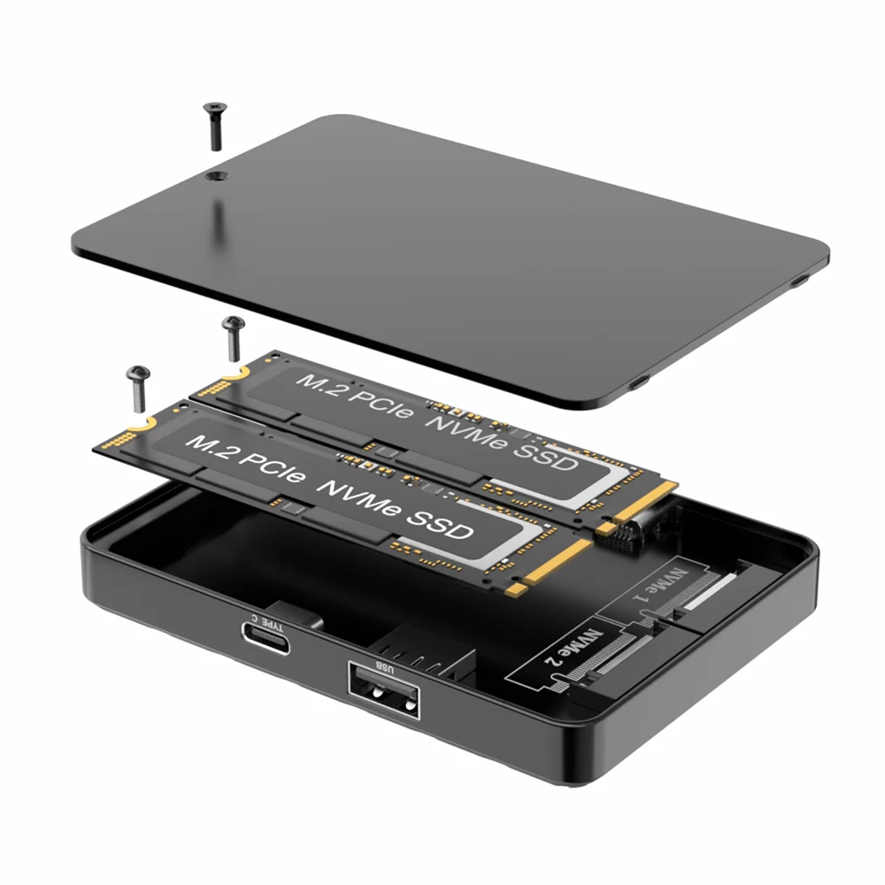 Funda SSD NVME M2 de doble bahía, 10G Uds., estación de acoplamiento NVMe, USB tipo C M.2, 22x30/42/60/80, caja SSD, adaptador de unidad de estado sólido